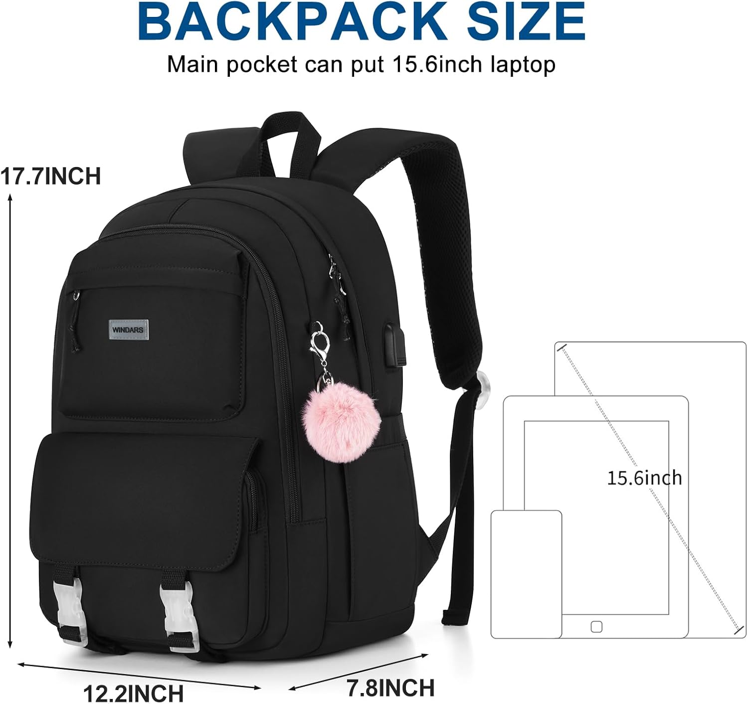 WINDARS Backpacks for Girls, 15.6 Inch School Bag Cute Waterproof laptop Bookbag Large College Backpack for Teen Women Students Anti Theft Travel Daypack BlackPL17-B0CWCYFTCS