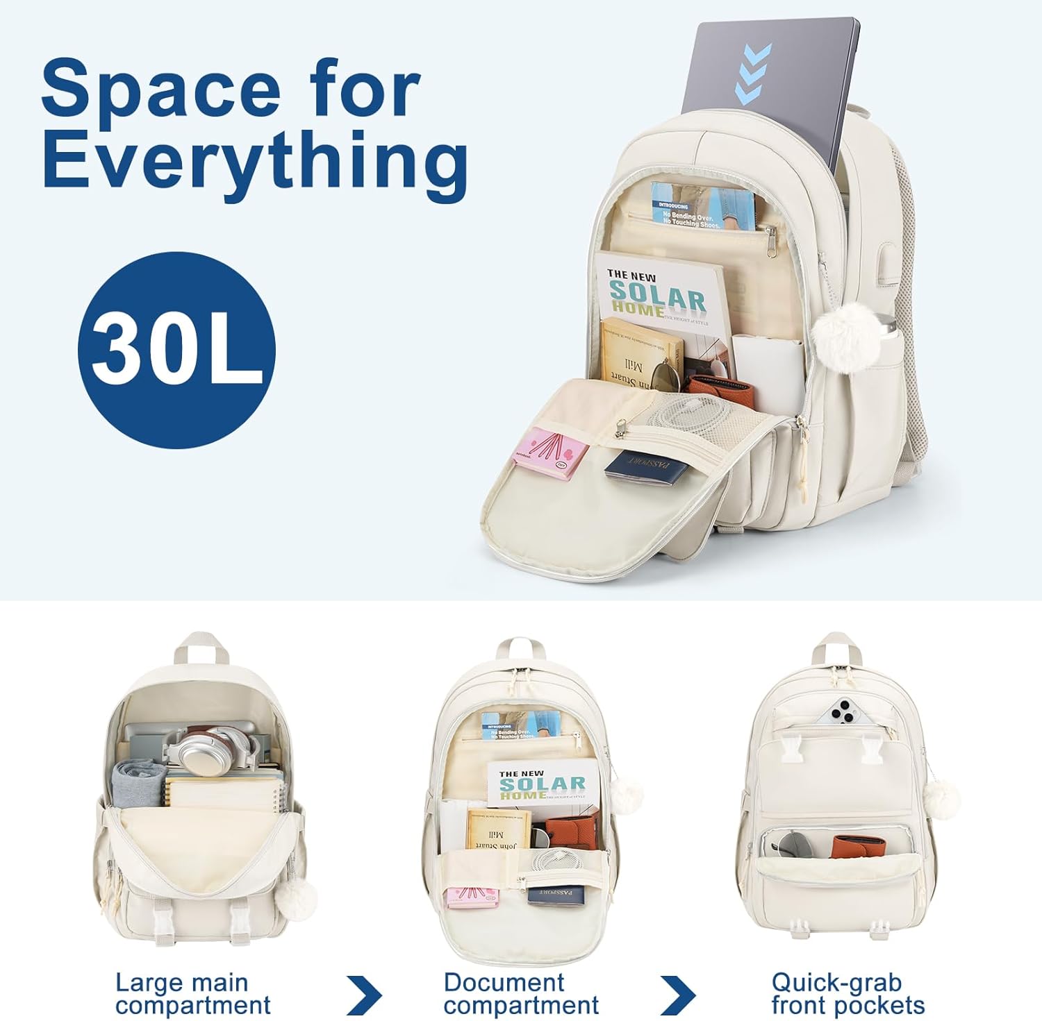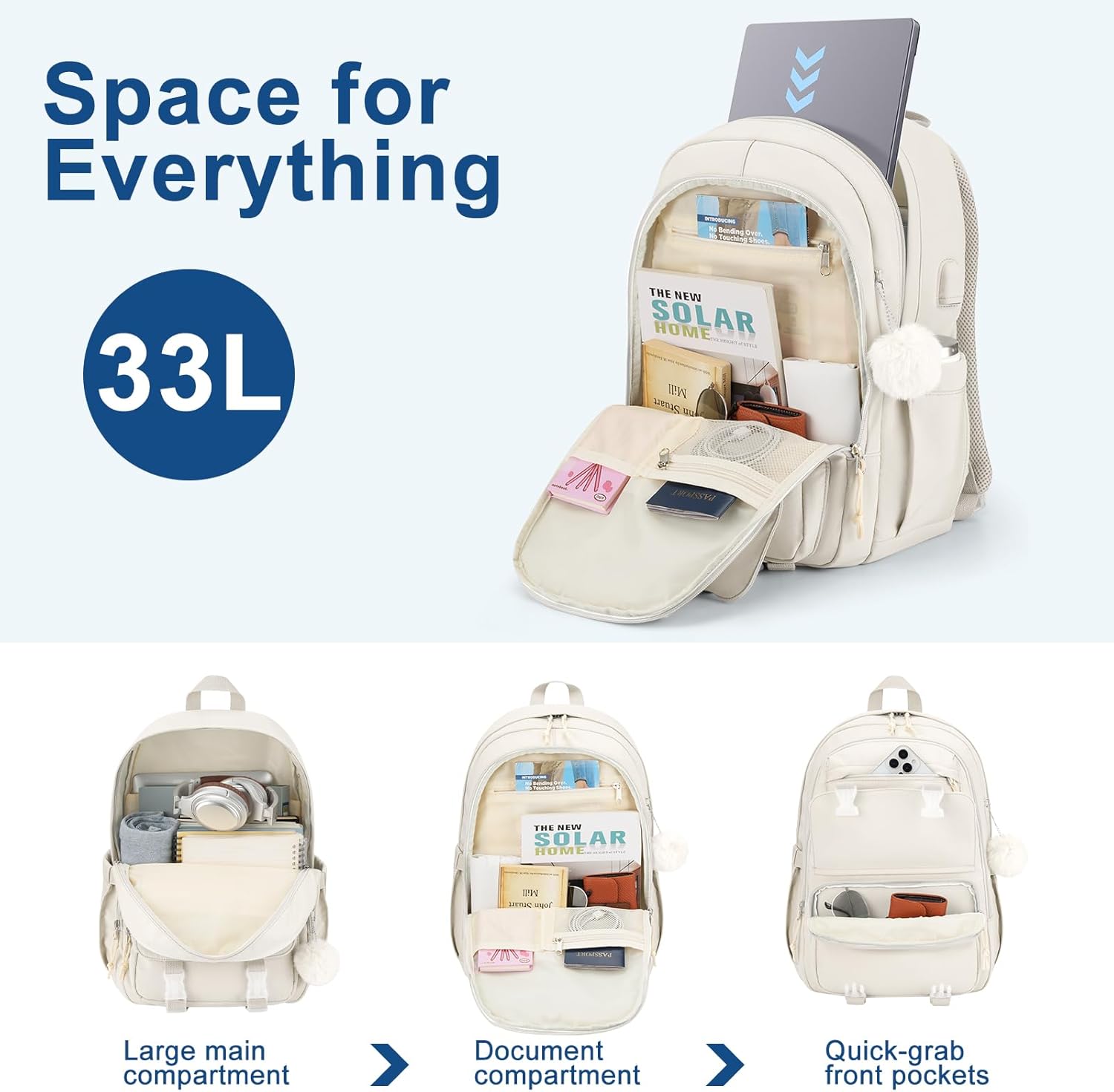 •  【Large Size & Gift】Backpack for school measures 12.2"*7.8"*17.7" and weighs 0.73kg/1.61LB, which can accommodate a 13.3, 15.6, 16.1 inch laptop and 12.9 inch iPad. This school backpack also comes with a pink plush ball key pendant as a gift, making the overall girls backpack more stylish and unique. It is the perfect choice for birthday or Christmas gifts.