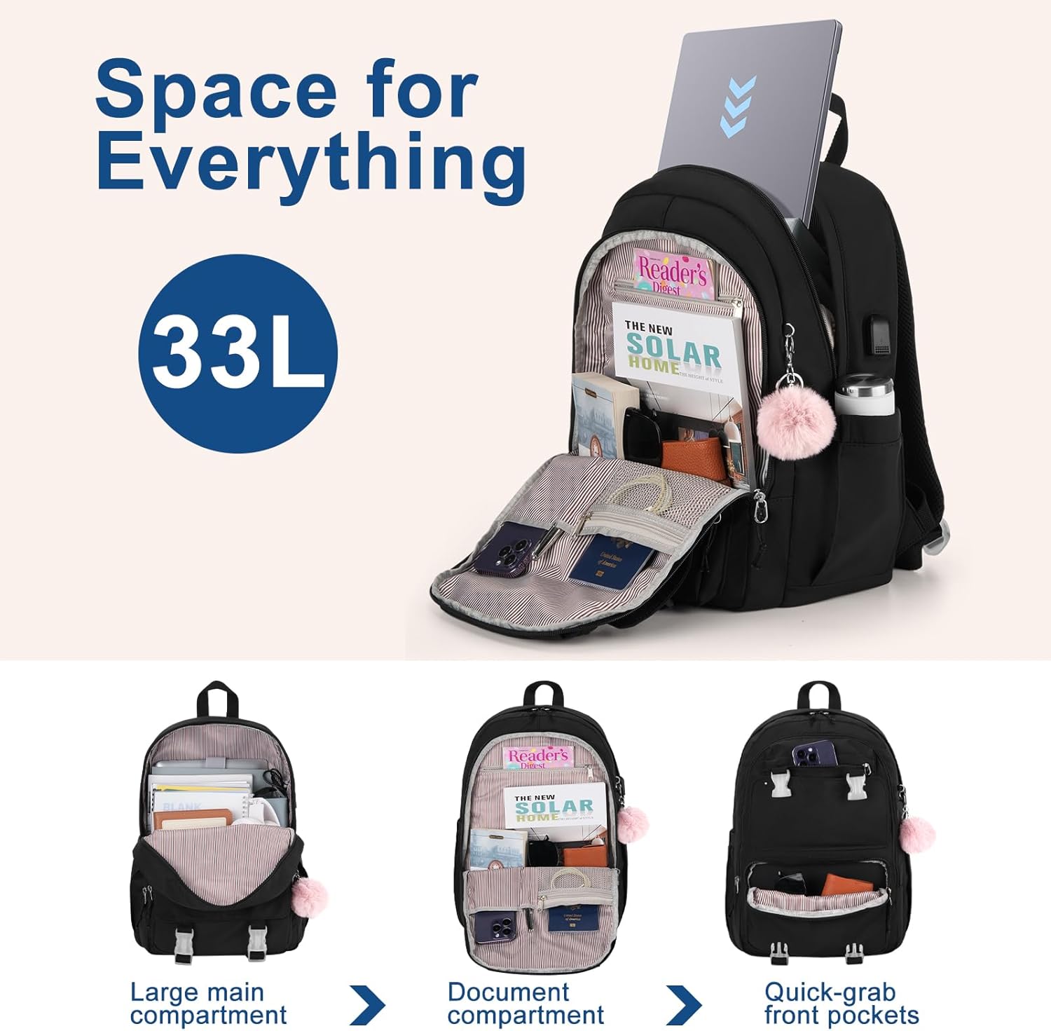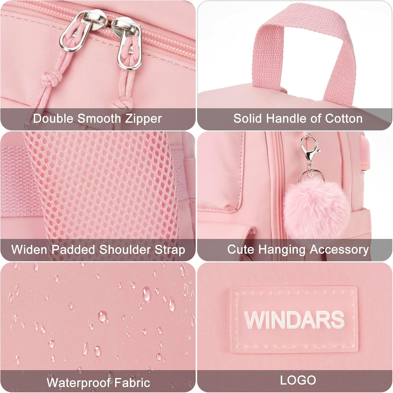 • WINDARS Backpacks for Girls, 15.6 Inch School Bag Cute Waterproof laptop Bookbag Large College Backpack for Teen Women Students Anti Theft Travel Daypack Black