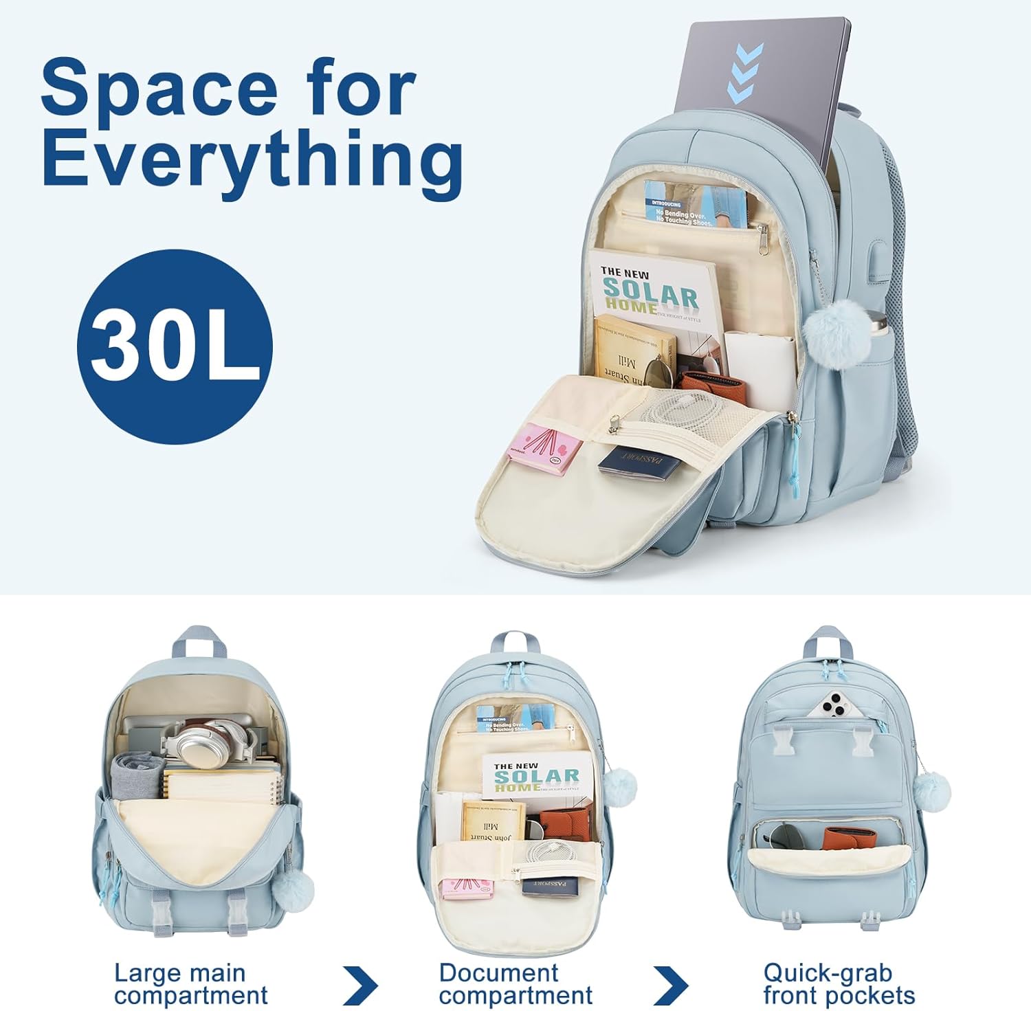 • 【Waterproof Material & USB Charging Port】Backpacks for school is made of high-density fabric, waterproof, lightweight, wear-resistant, healthy and safe, and it uses high-quality metal zippers to ensure lasting use. This cute school backpack for girls comes with a built-in charging cable and an external upgraded USB3.0 charging port, giving you an easier and lighter way to charge.