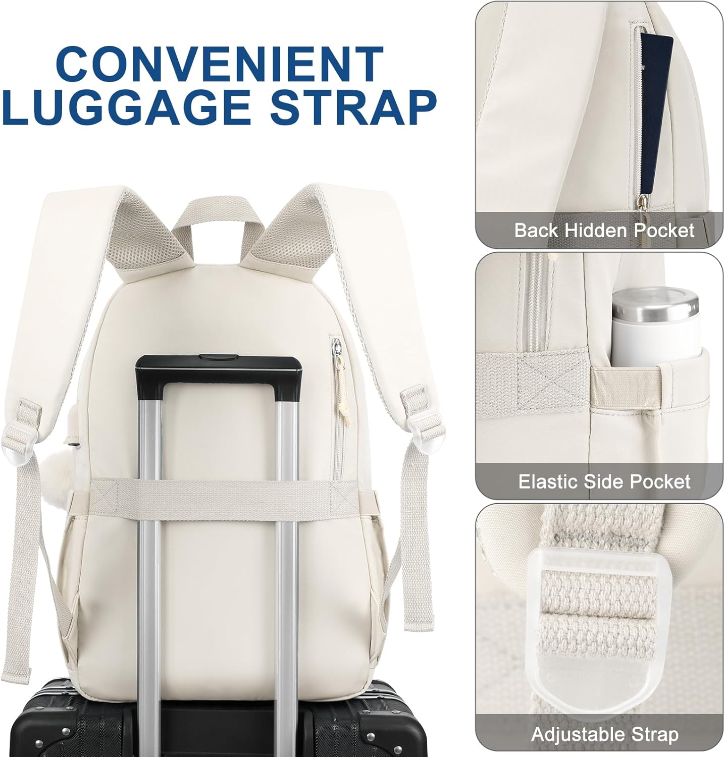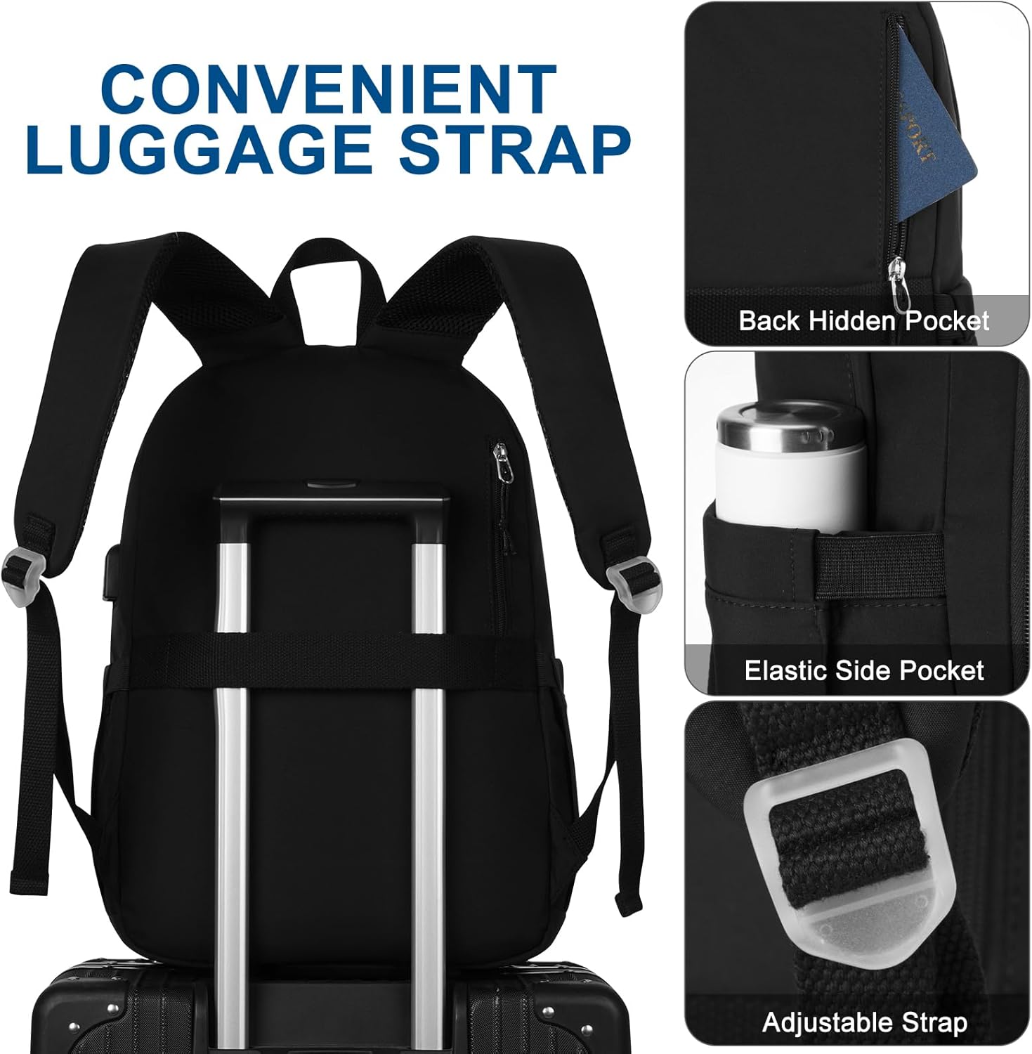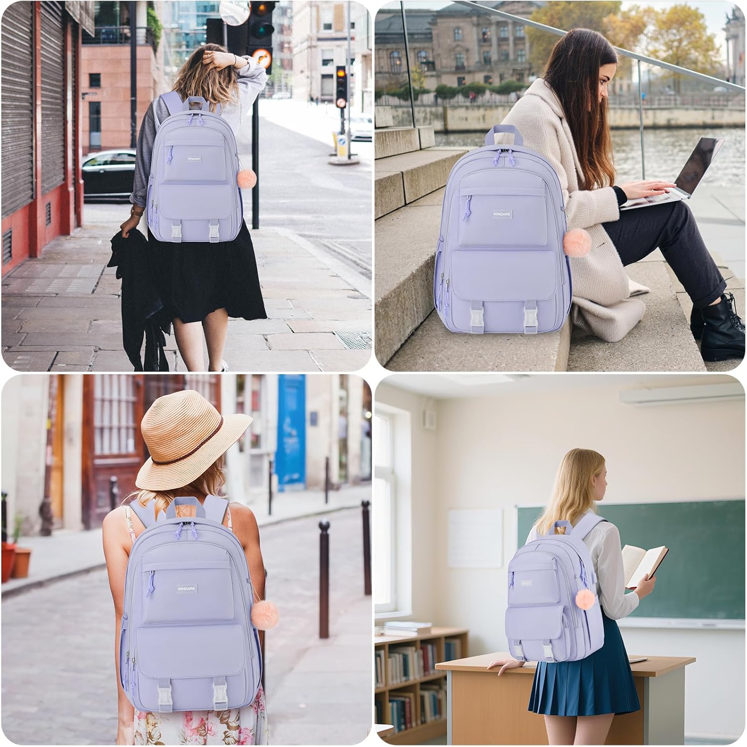 • 【Multiple-compartments with Large Capacity】Backpack for girls has 4 separate pockets of different sizes, 2 side pockets, and 1 back hiding pocket, while the front 2 pockets can accommodate phones, wallets and other small items for your daily storage needs.The main compartment contains 1 separate laptop pocket and 1 iPad pocket, the secondary compartment also includes multiple pockets. It provides a place for your laptop, file folders, clothes, pens, etc. to facilitate your daily arrangement.