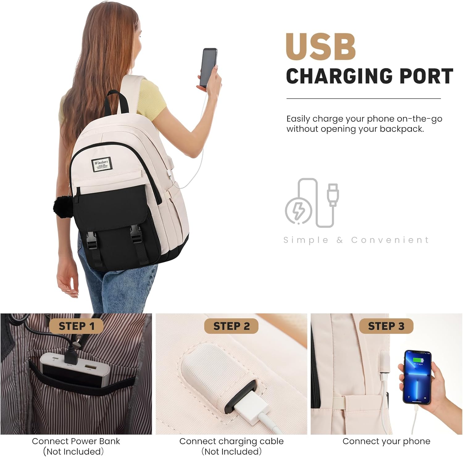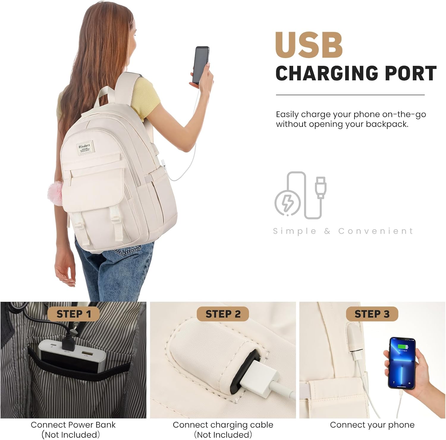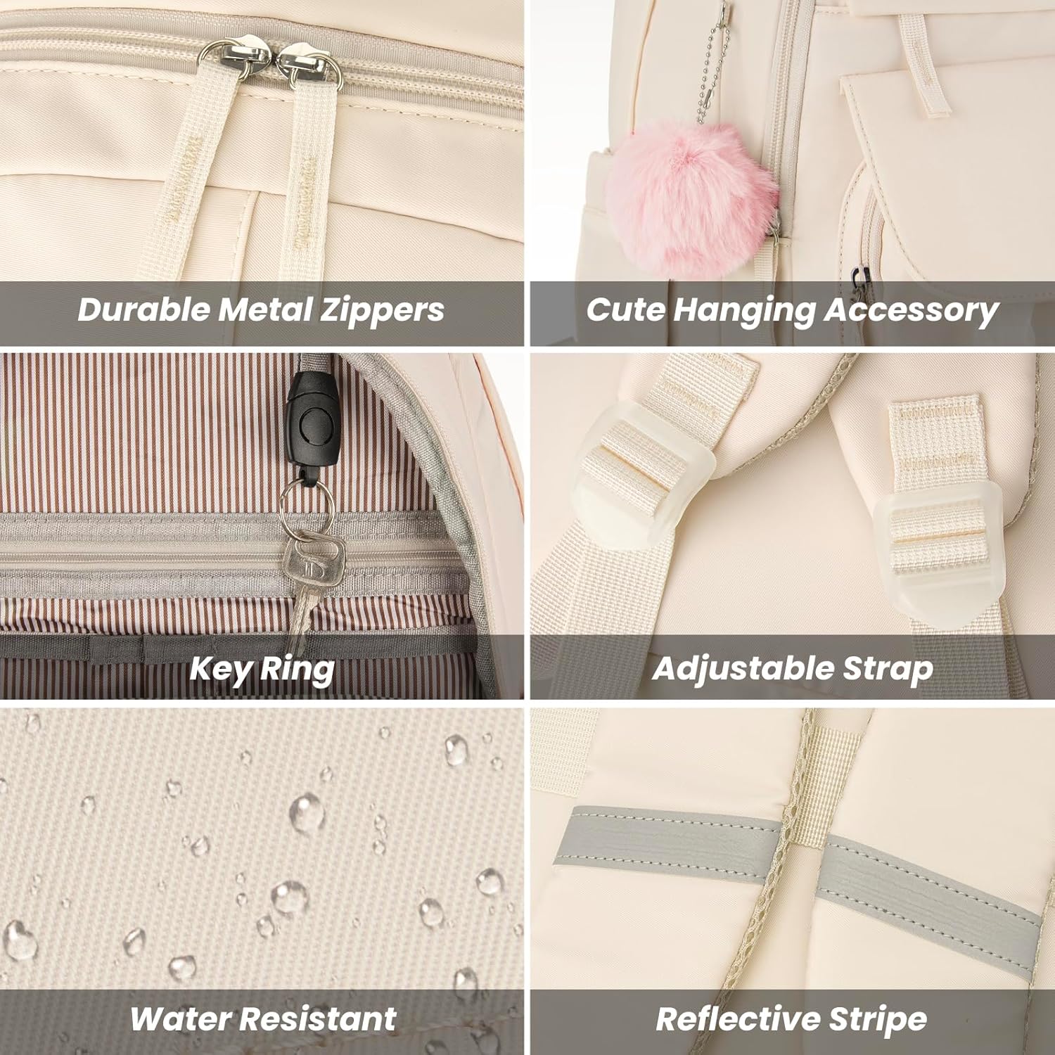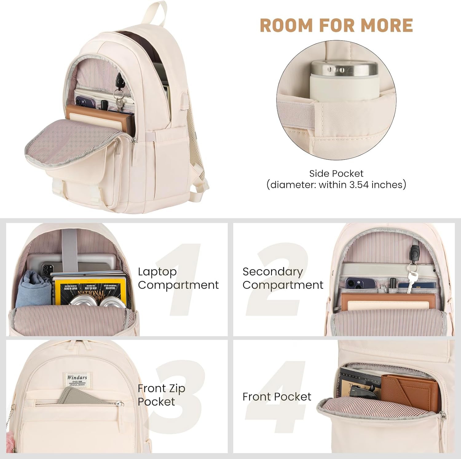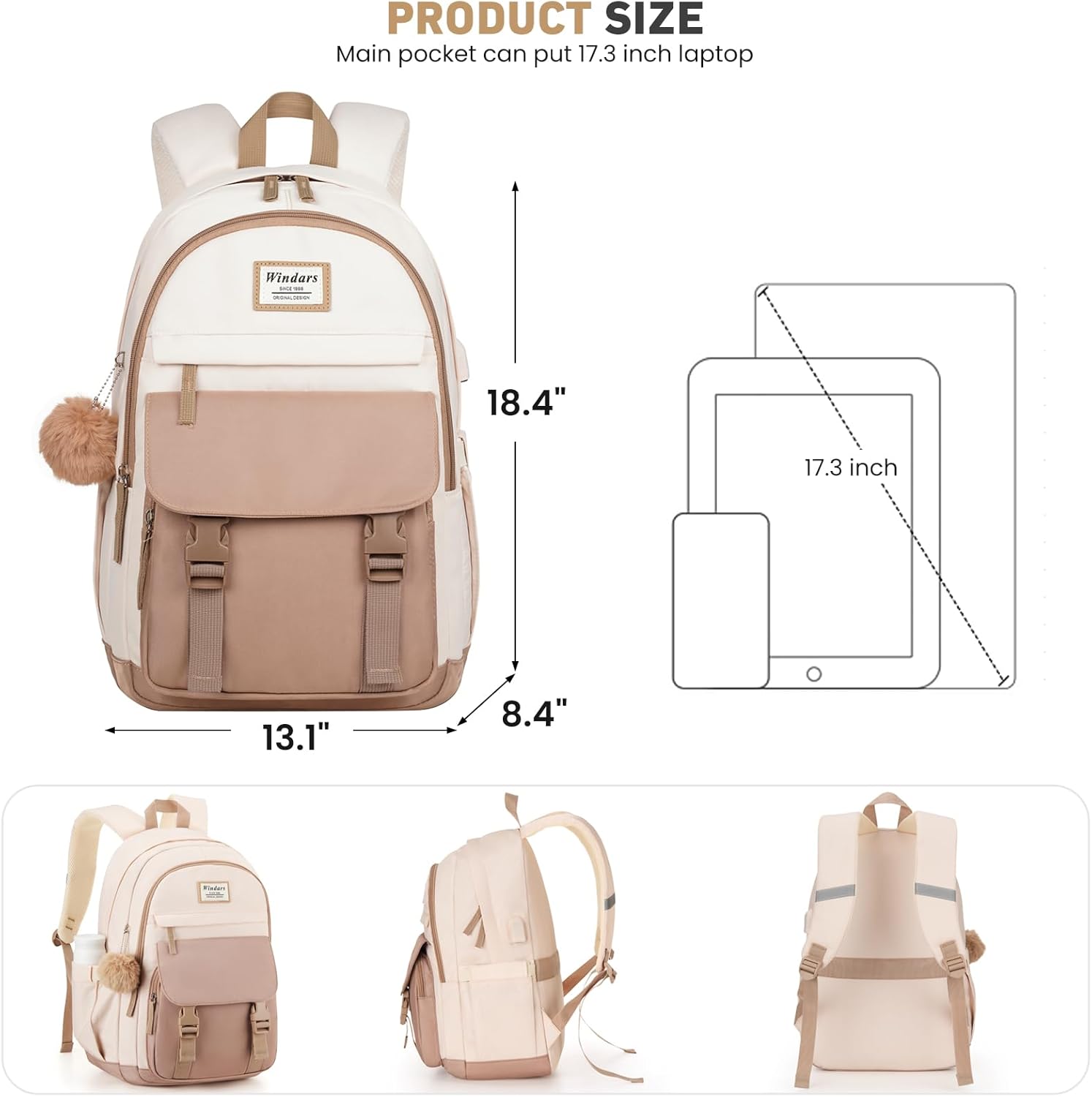 WINDARS School Backpack for Teen Girls, Cute College Backpacks for Women Students Aesthetic Bookbag Large 15.6 Inch Laptop Bag Middle School Travel Back Pack (Khaki Beige)PL17-B0D1YB84JX