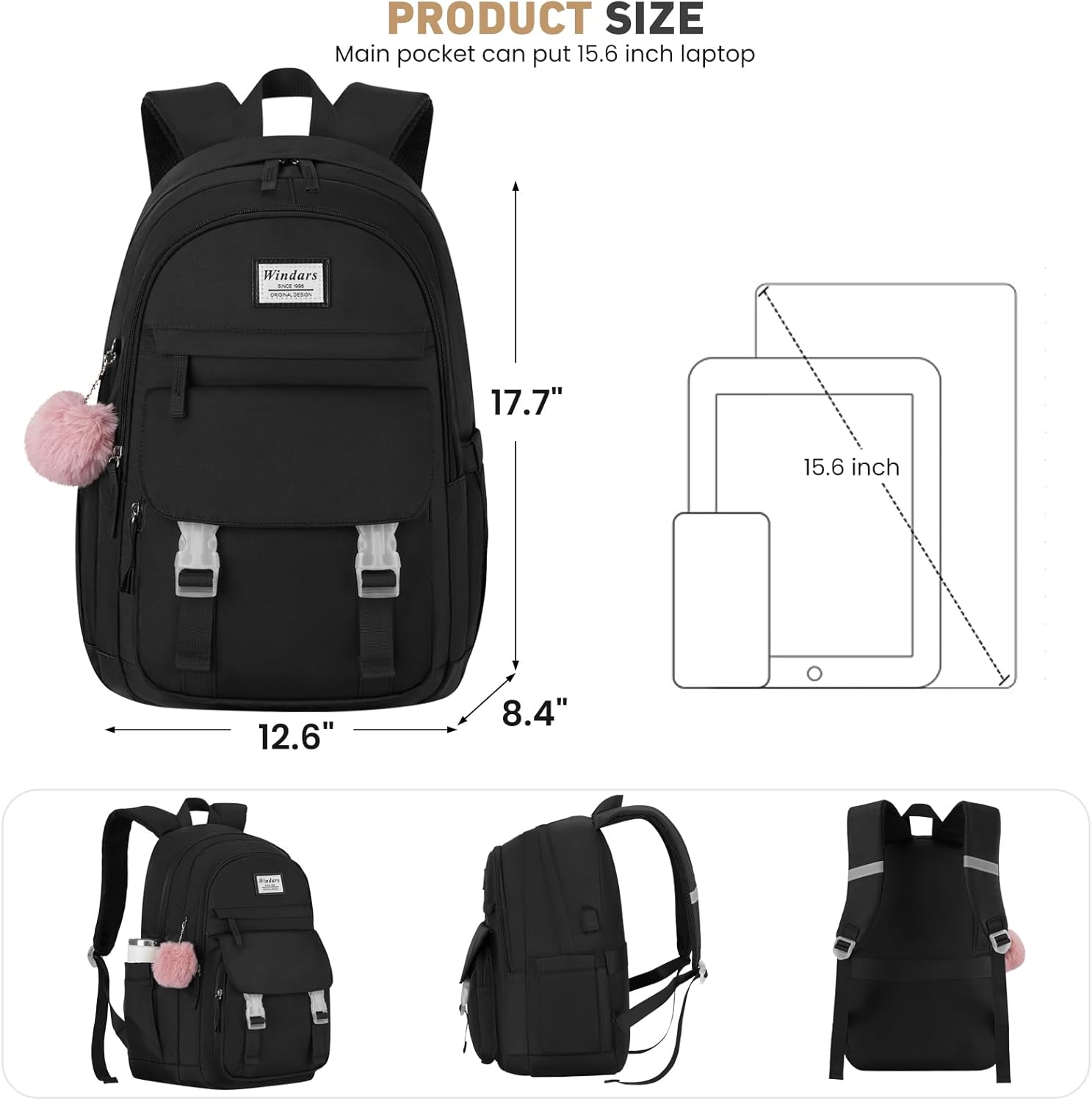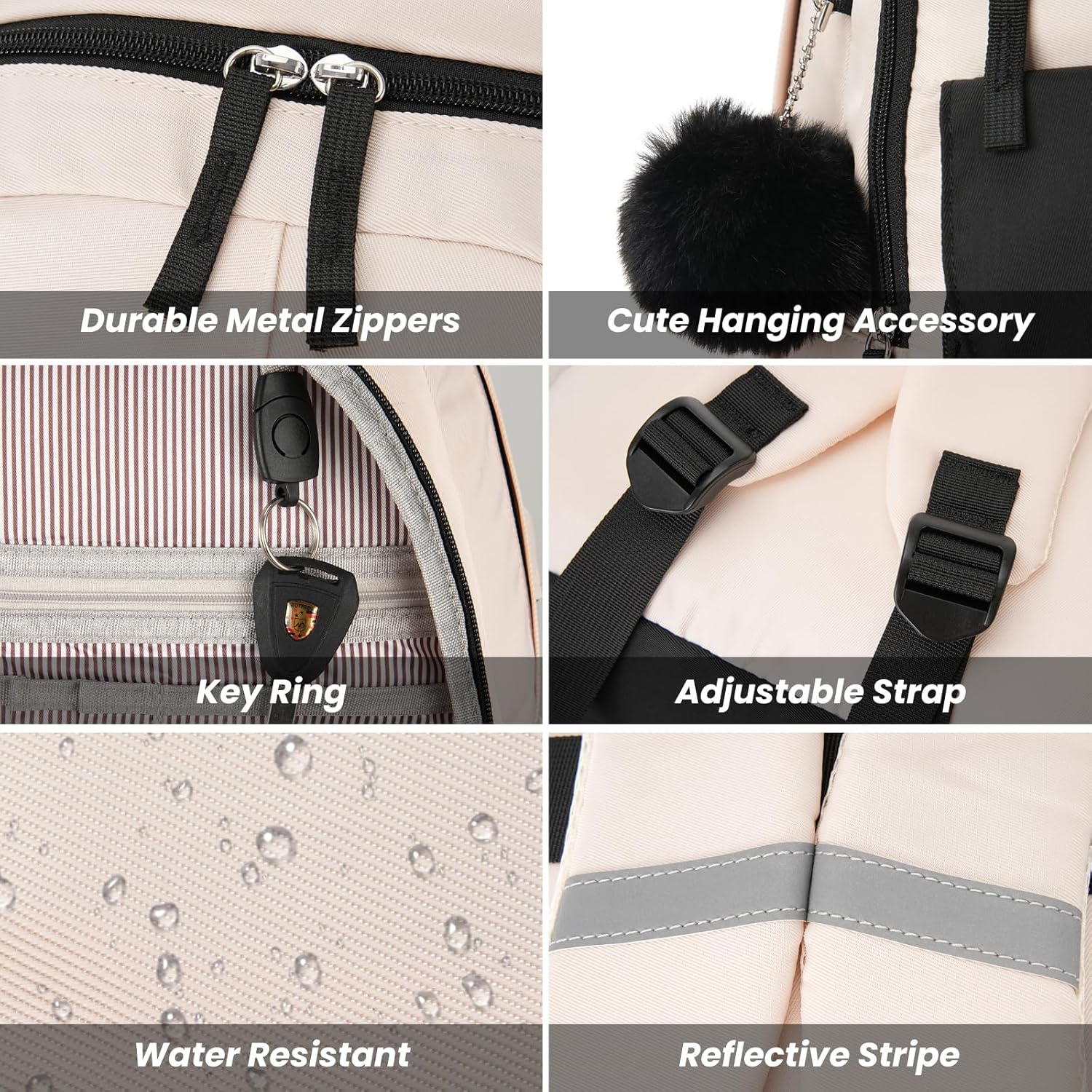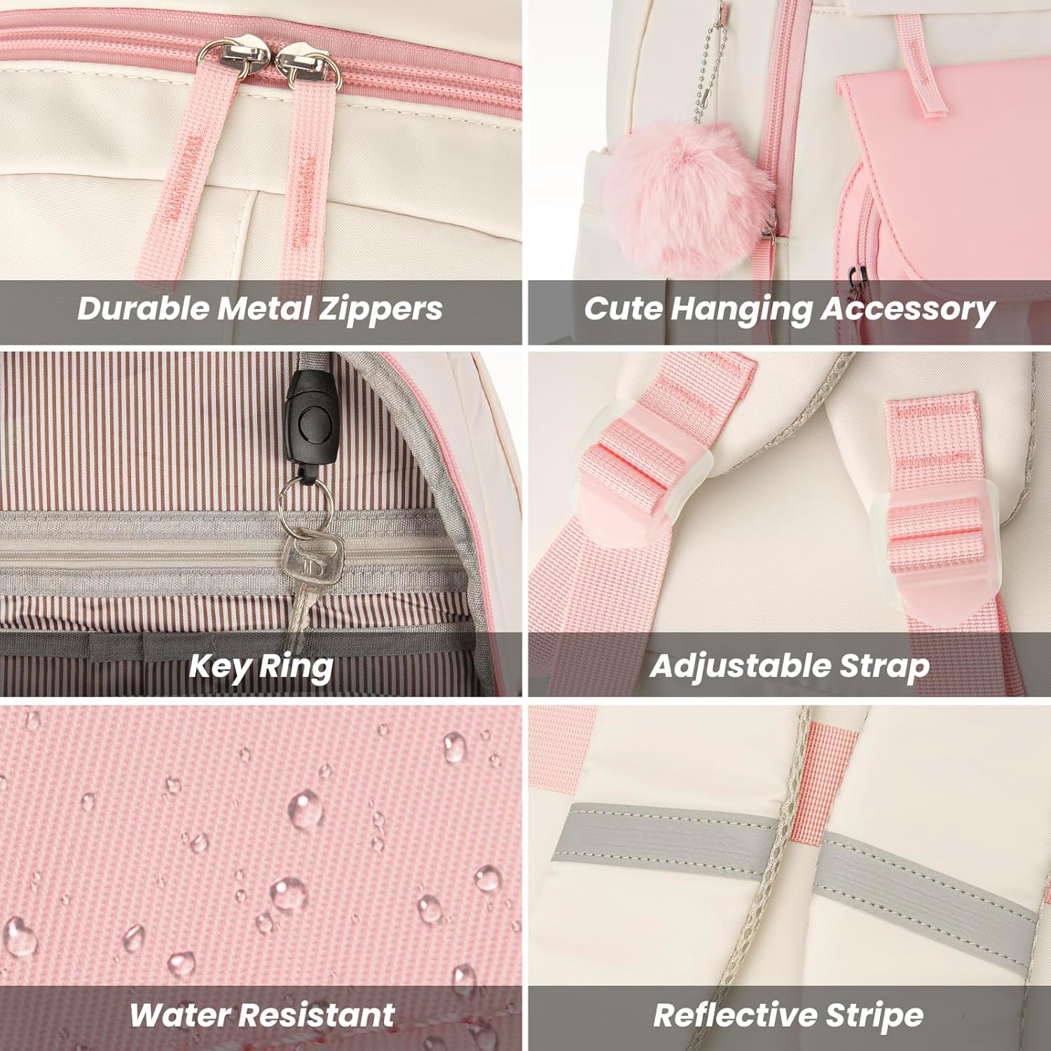 • 【Large Size & Trendy Style】: The size of the backpack aesthetic is 12.6"x8.4"x17.7"(L*W*H), Capacity: 25 liters; Weight: 0.79 kg / 1.74 lbs. The dedicated laptop compartment adding a tablet slot fits for 13.3, 15.6, 16.1 inch laptop and 12.9 inch iPad. This cute backpack for middle school girls is crafted with a unique double buckle and also comes along with a fluffy ball key pendant as a gift, adding a fashionable edge to its practicality.
