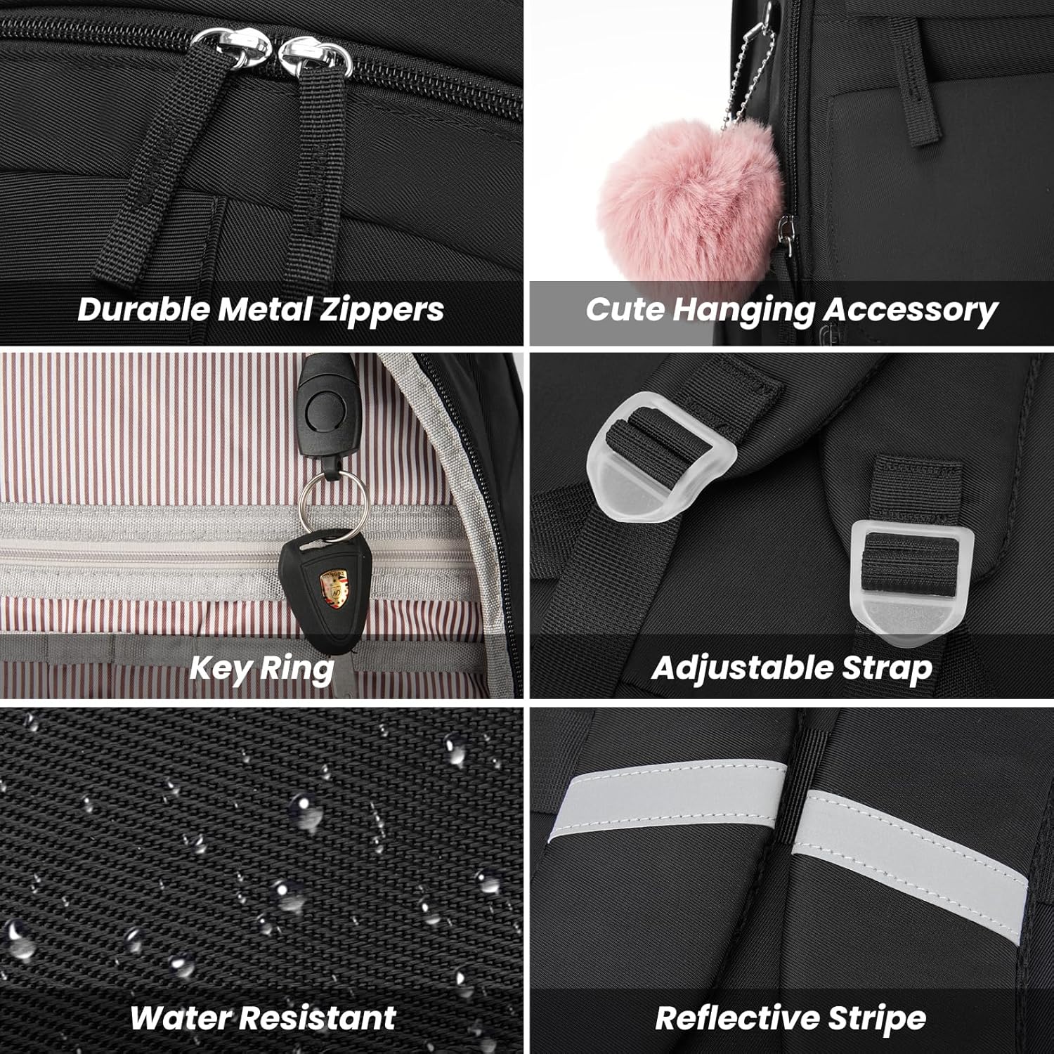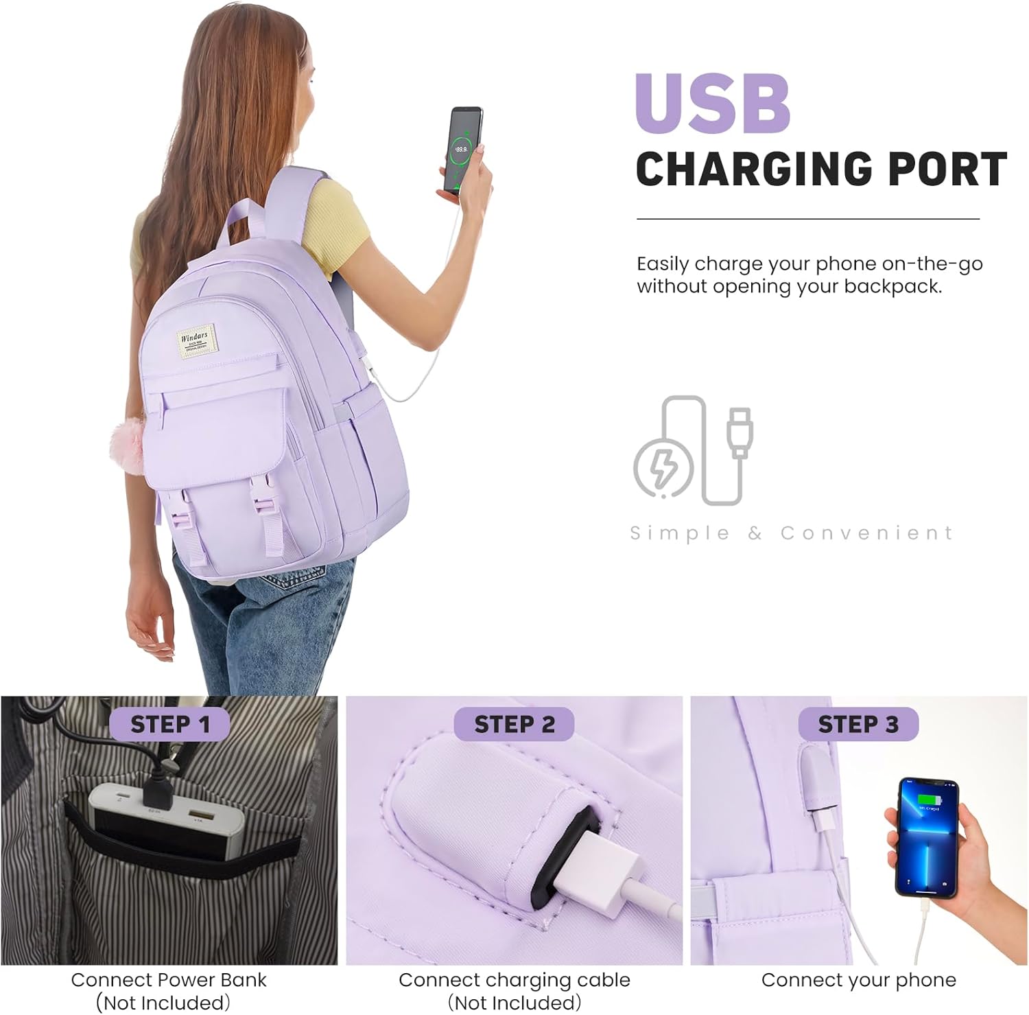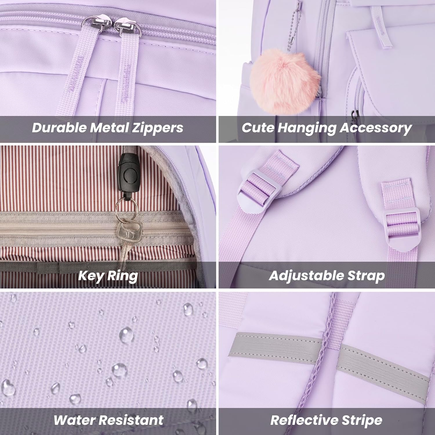 • 【Waterproof Material & USB Charging Port】: Crafted from waterproof, ultra-lightweight, high density premium polyester fabric, light to carry. The zippers closure are used by the premium quality zippers to ensure the long-lasting usage. With built-in charging cable and outside upgraded USB 3.0 charging port, the girls backpack provides a easier way to charge your devices.