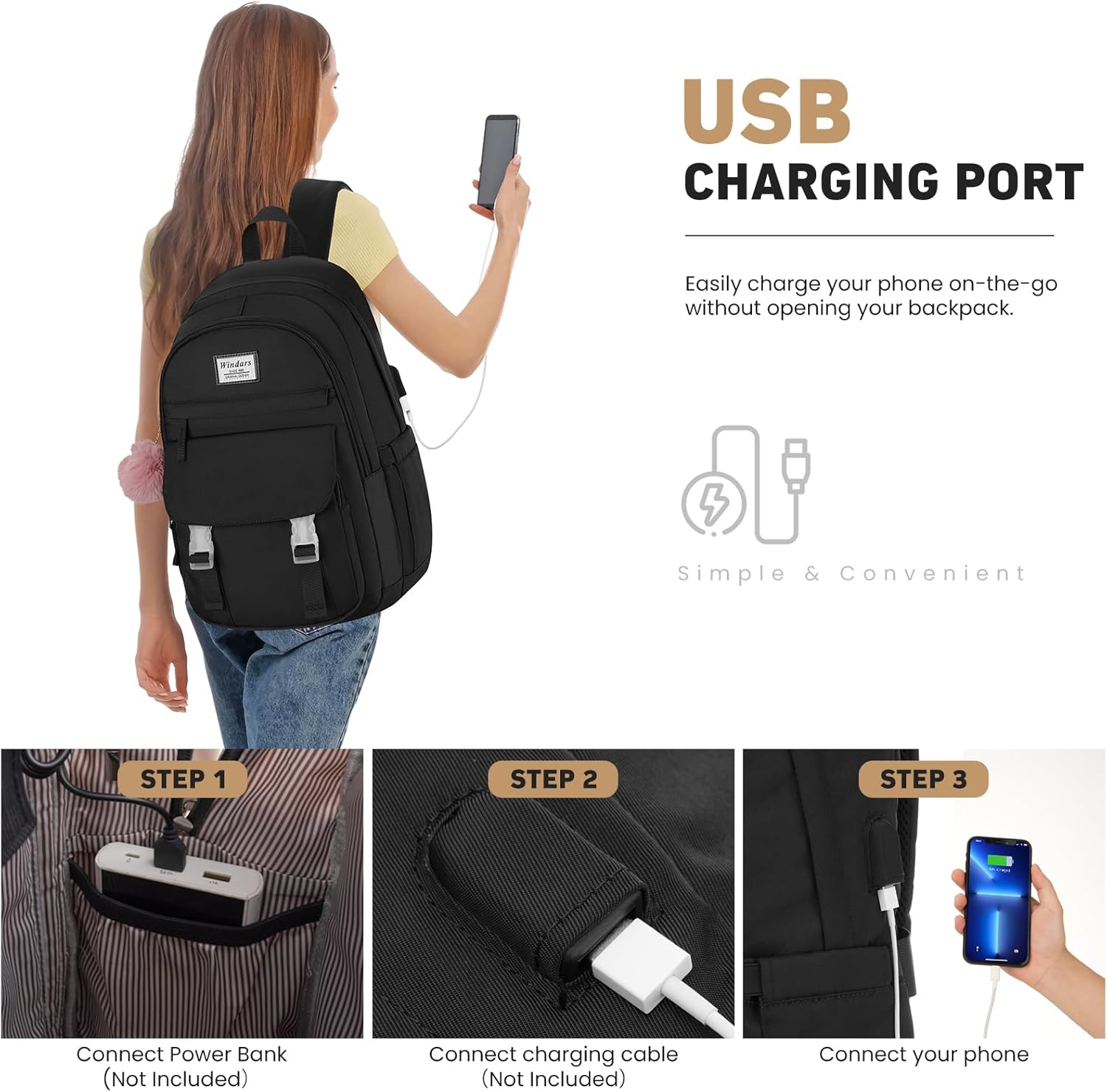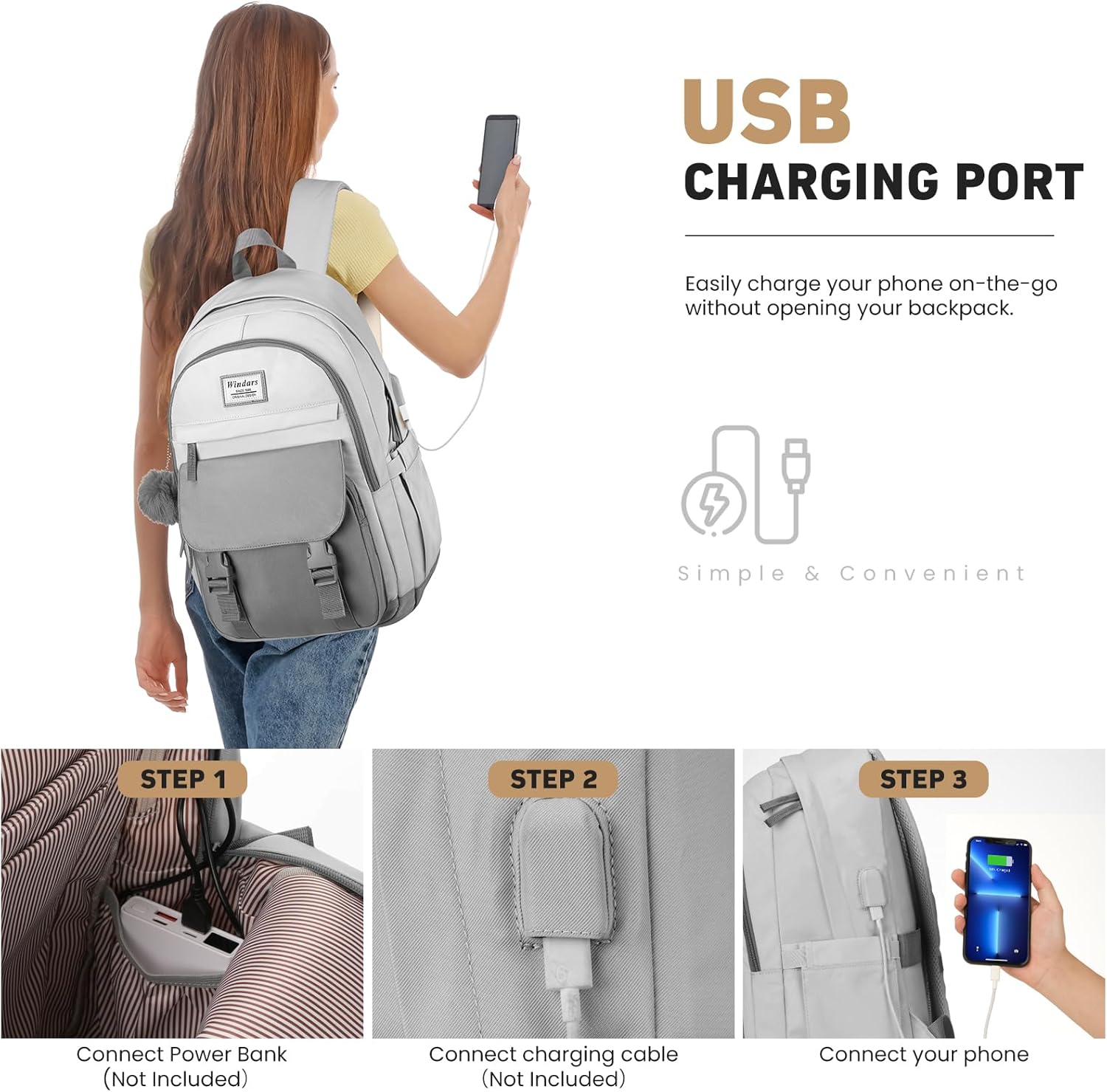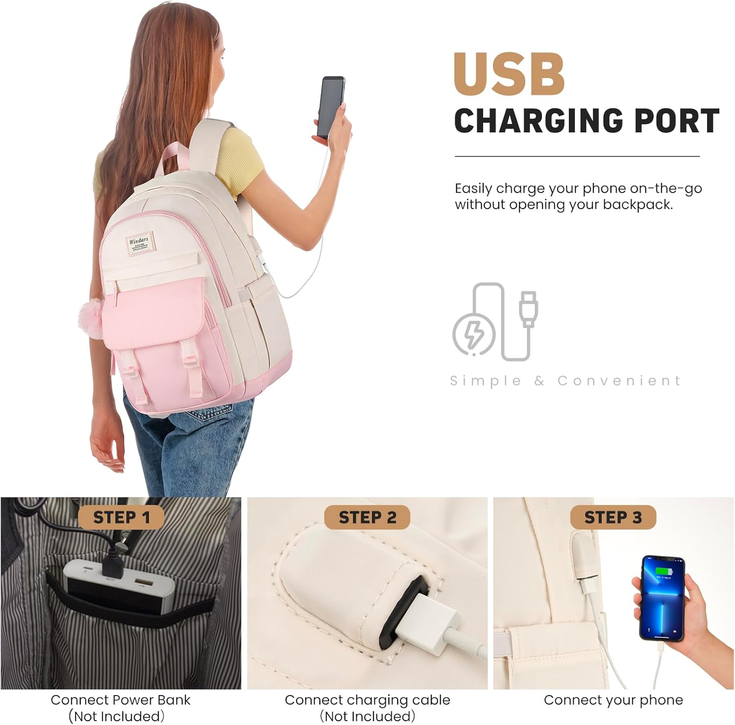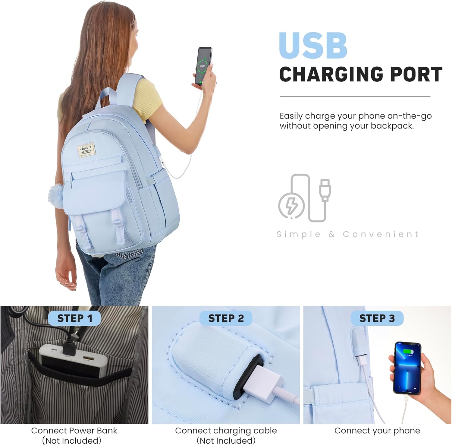 • 【Waterproof Material & USB Charging Port】: Crafted from waterproof, ultra-lightweight, high density premium polyester fabric, light to carry. The zippers closure are used by the premium quality zippers to ensure the long-lasting usage. With built-in charging cable and outside upgraded USB 3.0 charging port, the girls backpack provides a easier way to charge your devices.