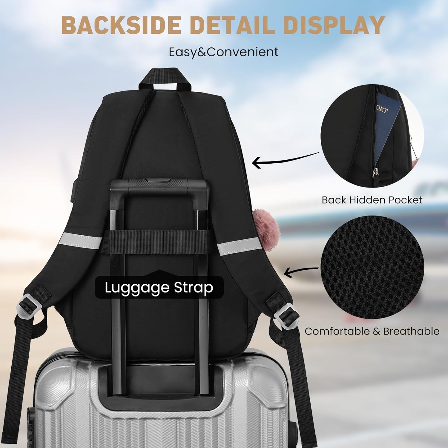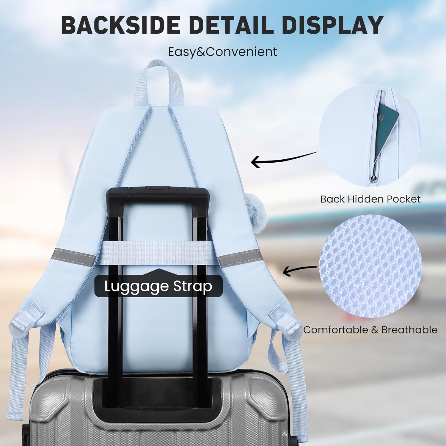 • 【Comfort & Convenience】: The Widen and thicken durable S-shape straps with good breathability and good heat dissipation are well-padded, adjustable and comfortable to carry. The luggage strap allows this cute backpack to attach to luggage/suitcases, making your journey more convenient. Back hidden anti-theft zippered pocket sits up against the wearer’s body for valuables.