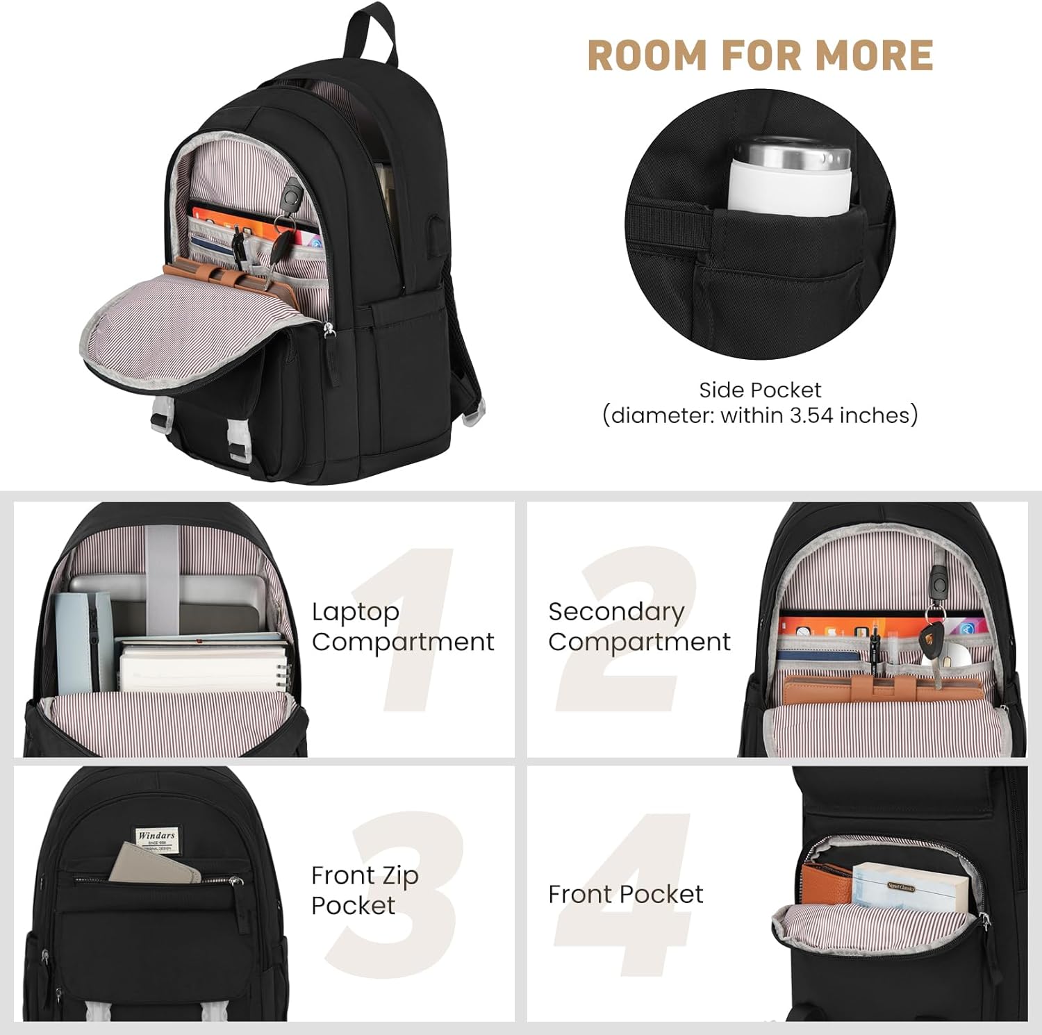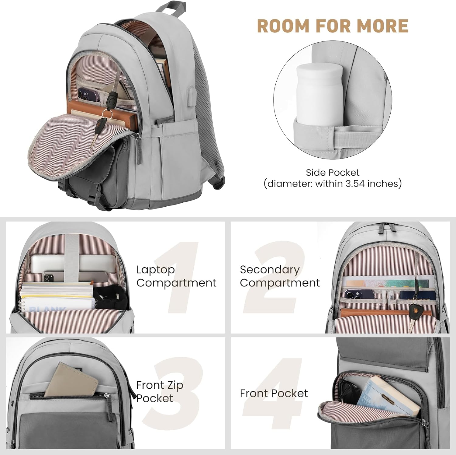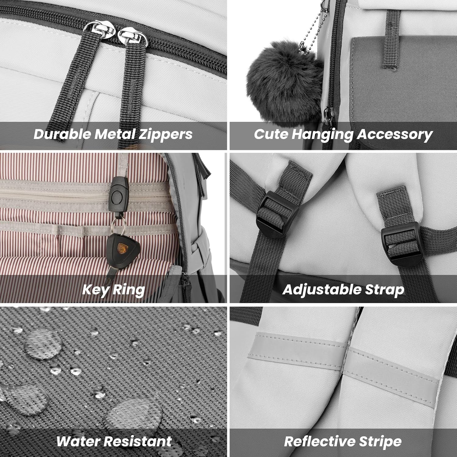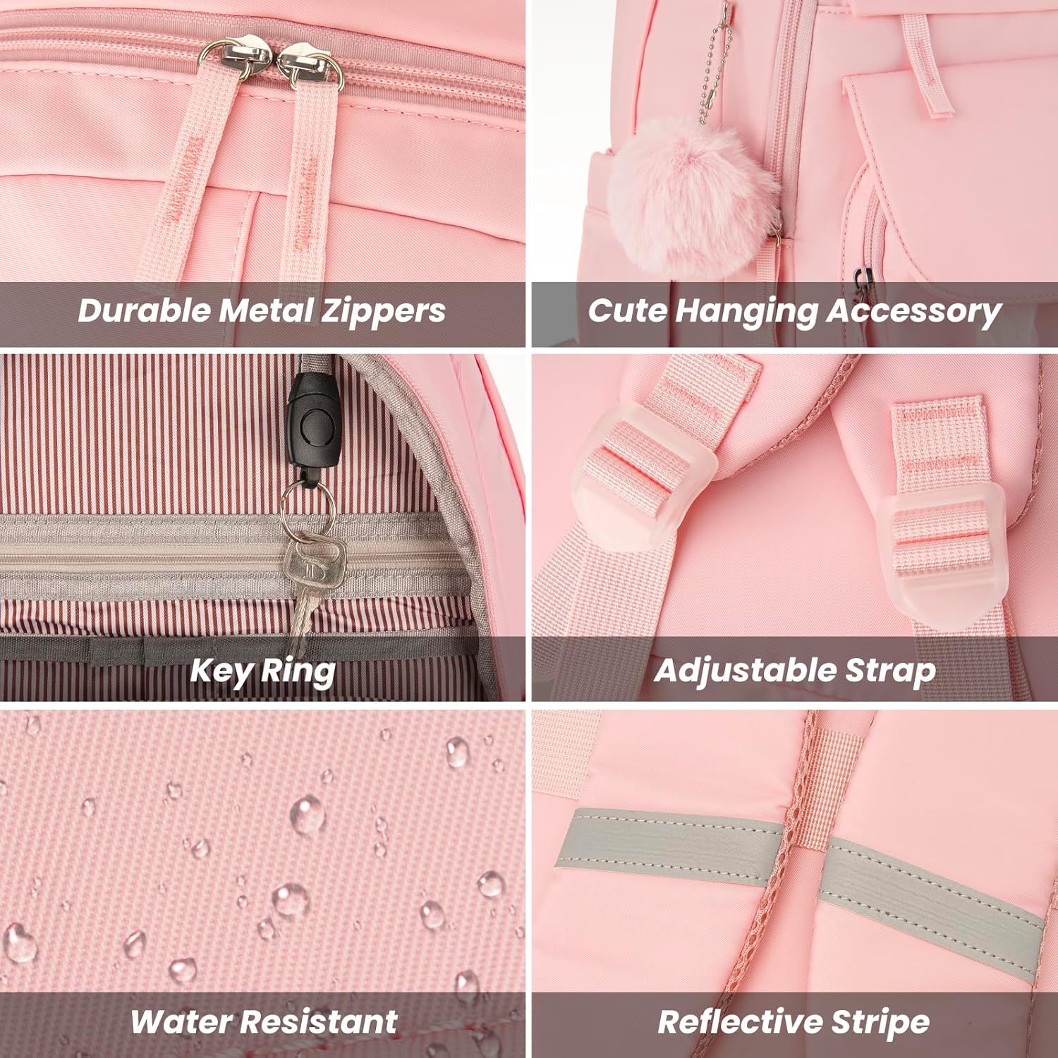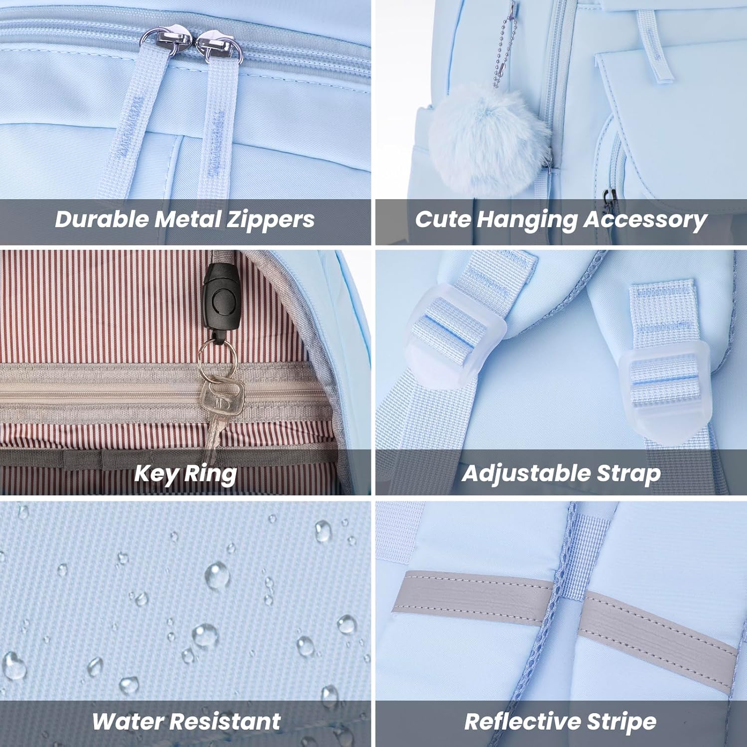 •  【Large Capacity & 20 Organized Pockets】: This backpack for school has 4 separate different compartments and two side pockets to meet your daily storage. 1 separate laptop compartment includes laptop padded sleeve with elastic belt. The front tool compartment also comes with multiple pockets to provide roomy space for necessities. The front two pockets can hold charge device and other small items, convenient for your daily organization.