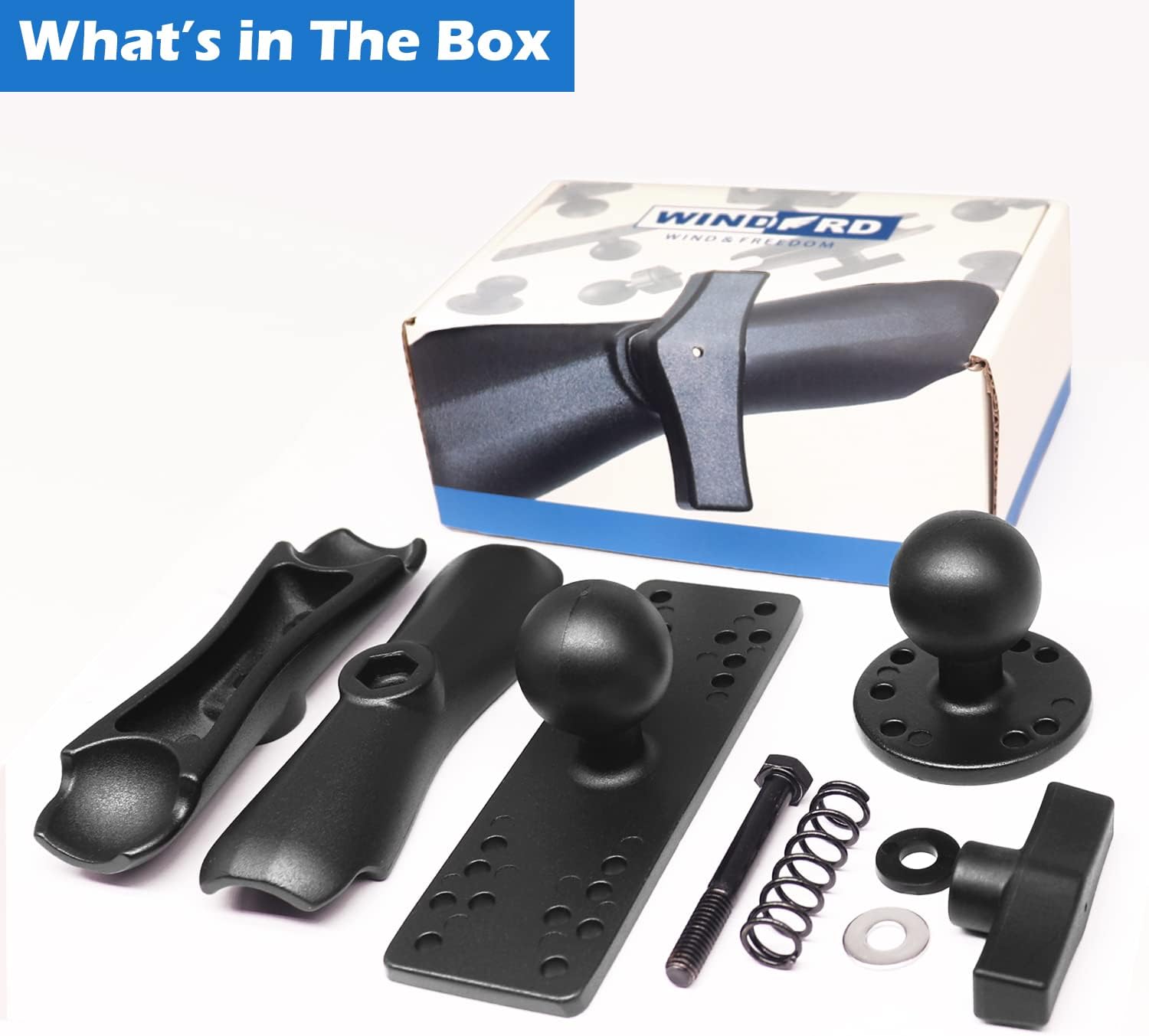 WINDFRD 1.5" Ball Medium Arm Marine Electronic Mount, Fish Finder Mount, Universal Mounting Plate with 1.5 inches / 38mm / C Size Ball Adapters, Compatible with Humminbird, Garmin, Lowrance and More