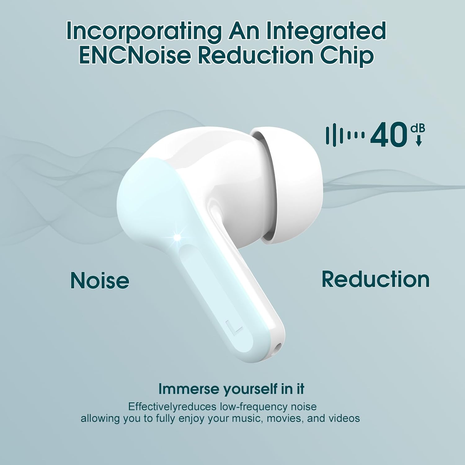 Clear call experience: This noise cancelling earbuds uses advanced ENC call noise reduction technology to effectively filter out more than 80% of external noise, ensuring that the other party's voice remains clear during busy commuting, work or exercise, providing you with a high-quality call experience. The Headphones equipped with 4 high-performance microphones, it can accurately capture your voice, so that the other party can always hear clearly throughout the call even in a noisy environment.