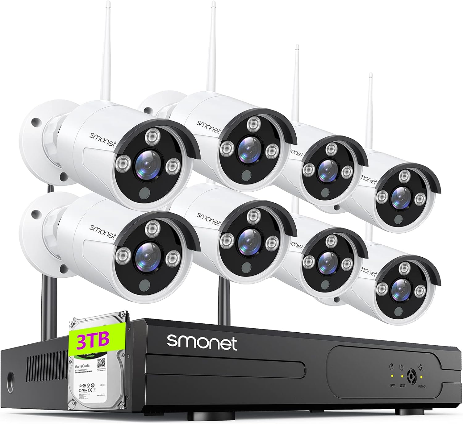 Wireless Security Camera System,SMONET 1080P 8 Channel Home Surveillance DVR Kits with 8pcs 2MP Full HD Cameras 3TB HDD Night Vision Motion Detection Free App for Indoor Outdoor 24/7 Video Recording