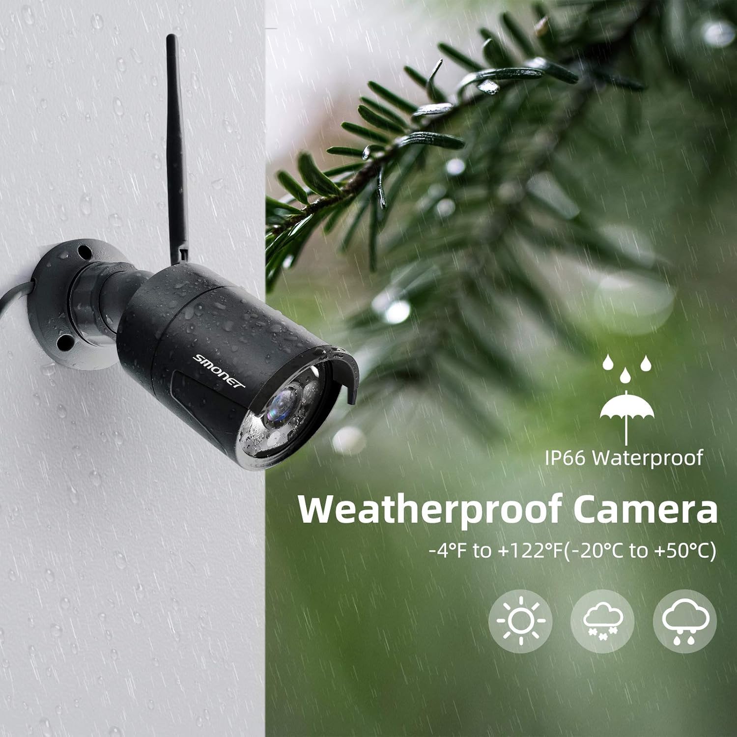 - 【8Pcs & IP66 Waterproof】The IP66 waterproof cameras are made of durable metal material, that can work 24/7 in sunny or rainy days, in low or high temperature environments (-4℉~122℉). SMONET NVR kit contains 8 cameras that can work at the same time, if you need to replace or update the camera, please feel free to contact us.