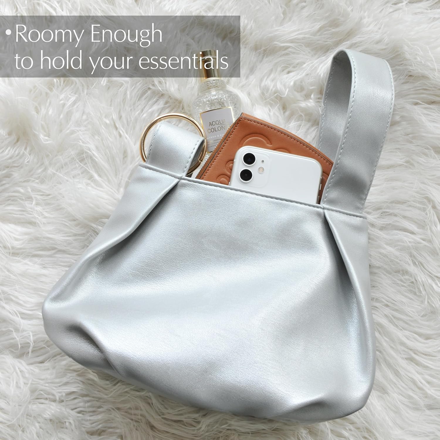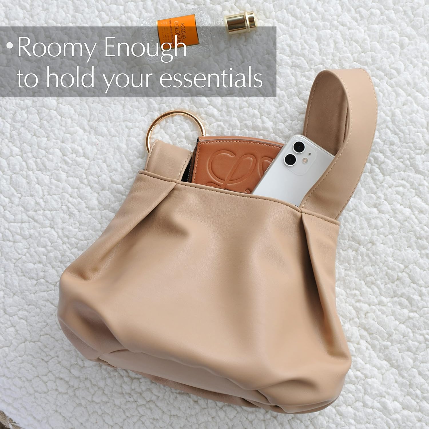 - A slouchy bucket shape hobo,embellished with a charming Loop of handle,Stylish style for carrying in-hand as a wristlet clutch.