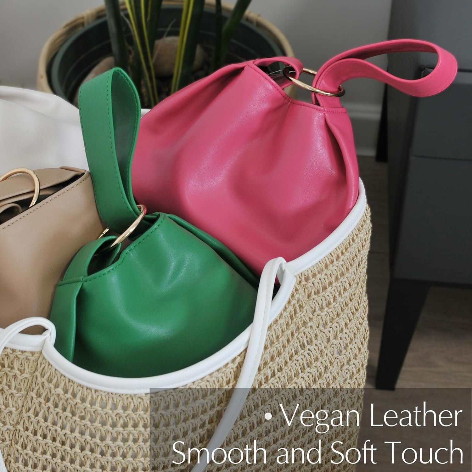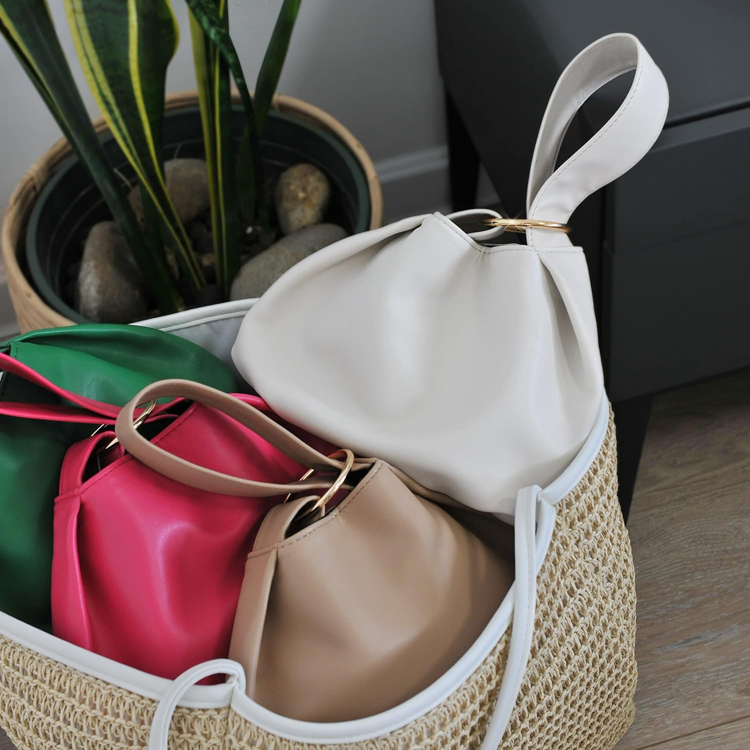 Women's Clutch Soft Vegan Leather Hobo Top Handle Bag Small Tote Purse