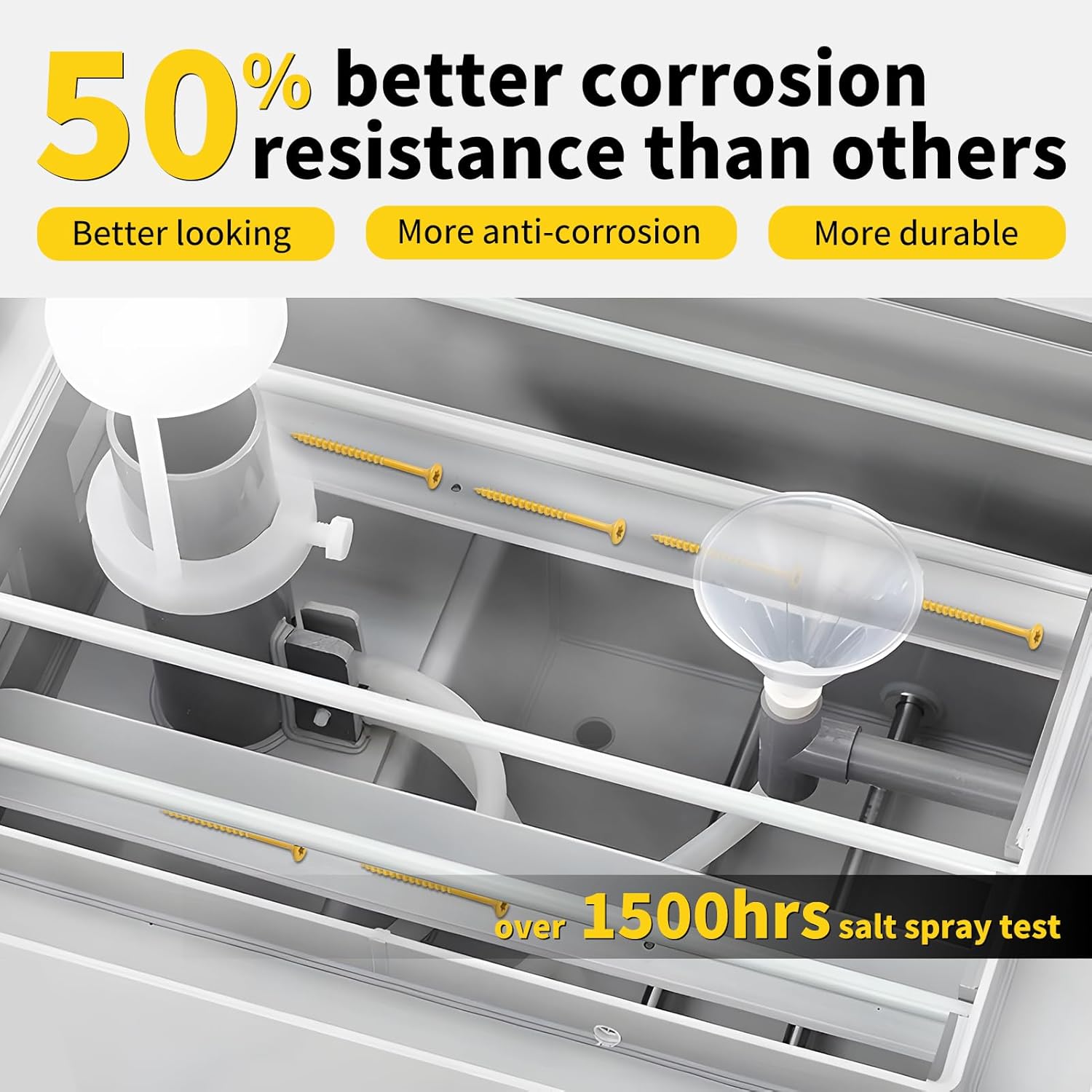 【ABOVE 1500HRS SALT SPRAY TEST】FIXLINK wood screws have passed about 1500 hours salt spray test provide exceptional protection against rust and corrosion, specifically designed to work best with either pressure-treated lumber or composite decking. These deck screws for exterior can be exposed to the sun, humidity, rain, and snow conditions for a long time