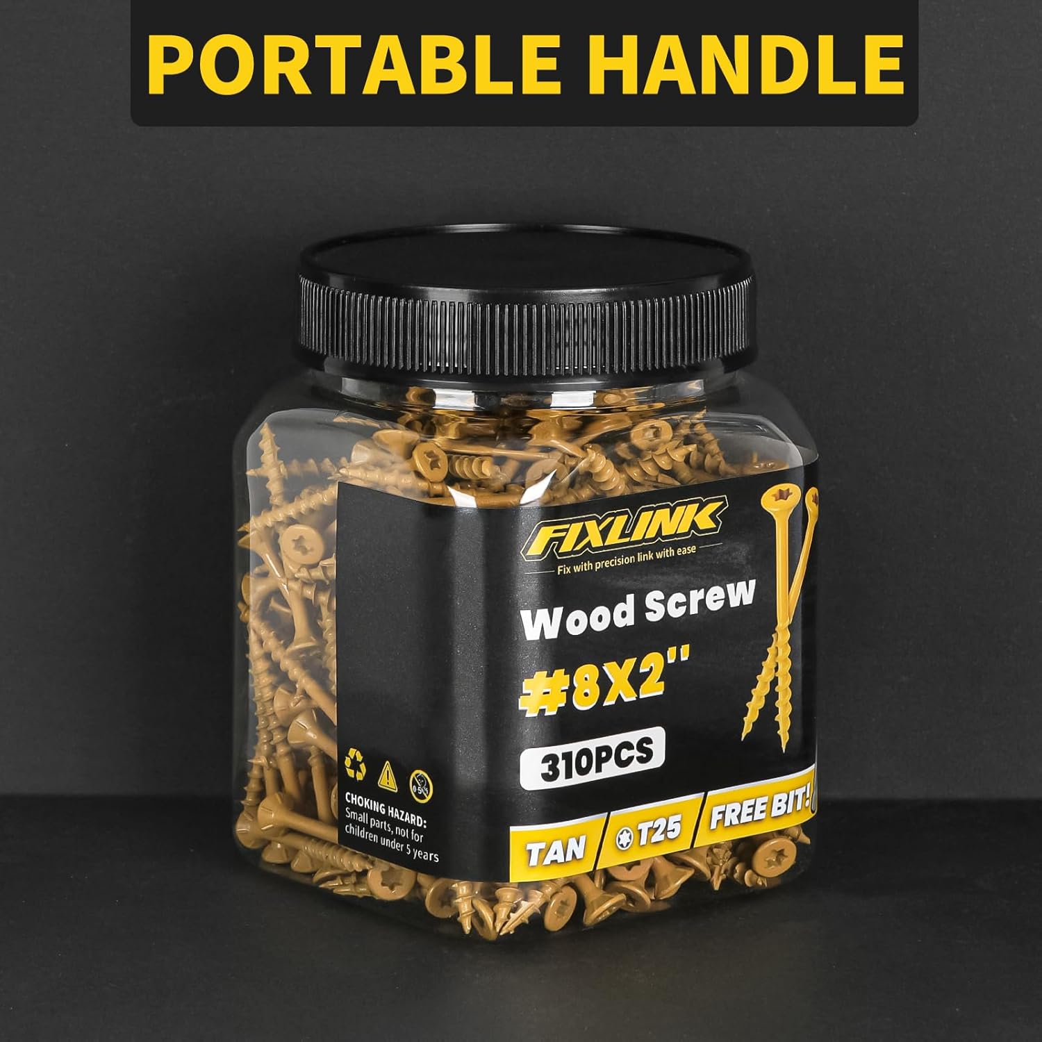 Wood Screws 3 Inch, FIXLINK Deck Screws #10 x 3, 310pcs, Epoxy Coated, T25 Star Bit Above 1500 Hour Salt Spray Coating Outdoor Decking Screws Excellent Rust Resistant for Outdoor Wood Fence