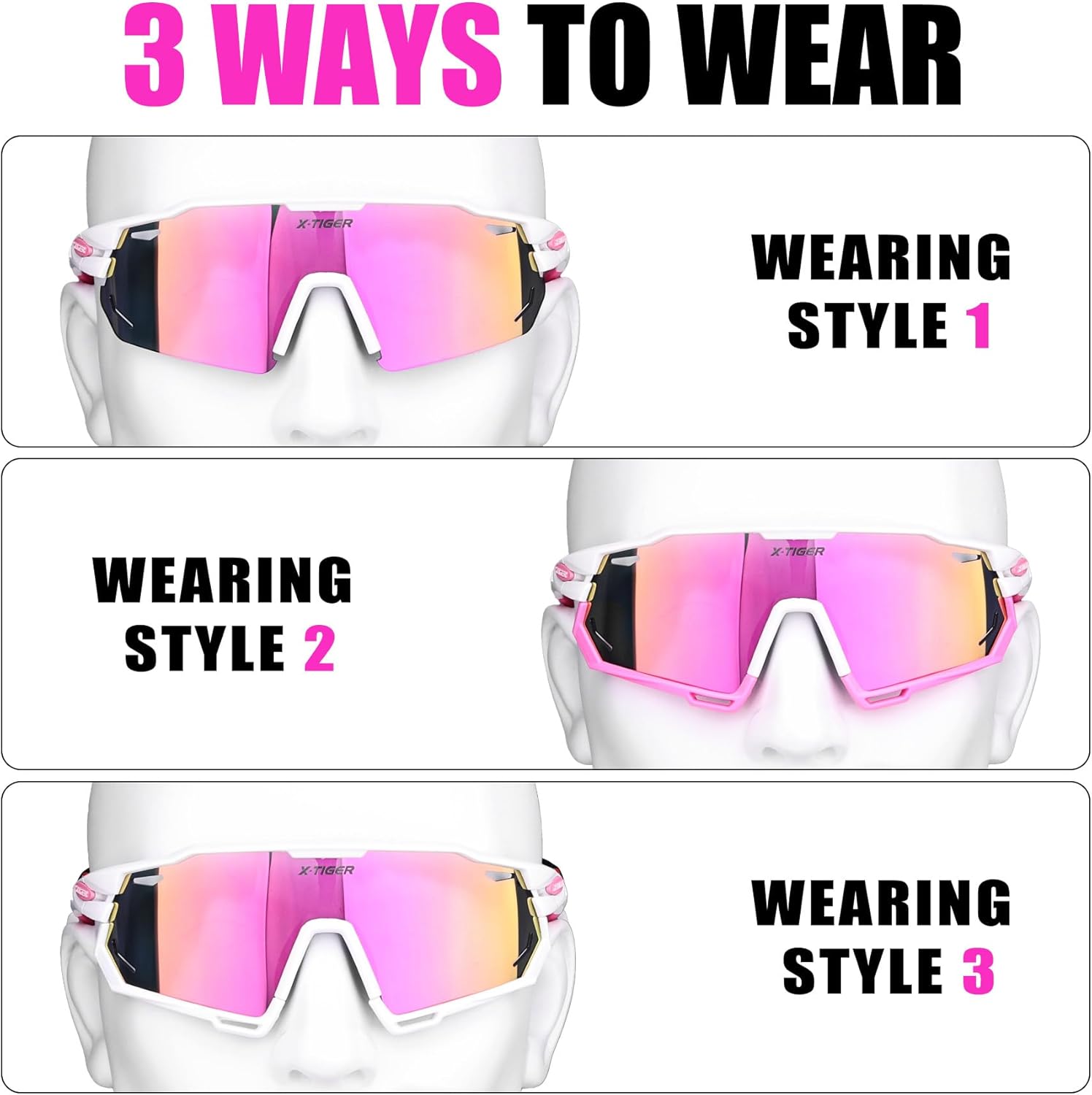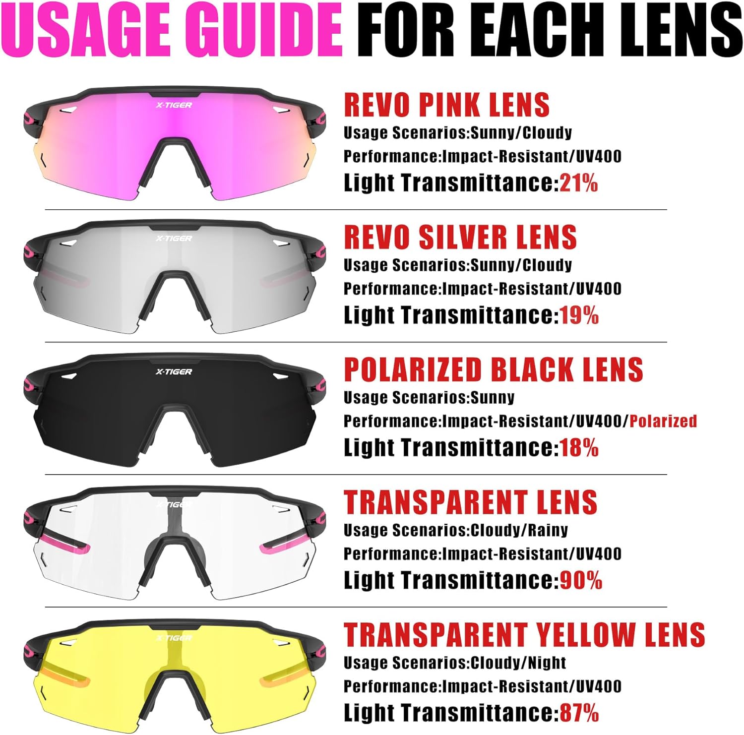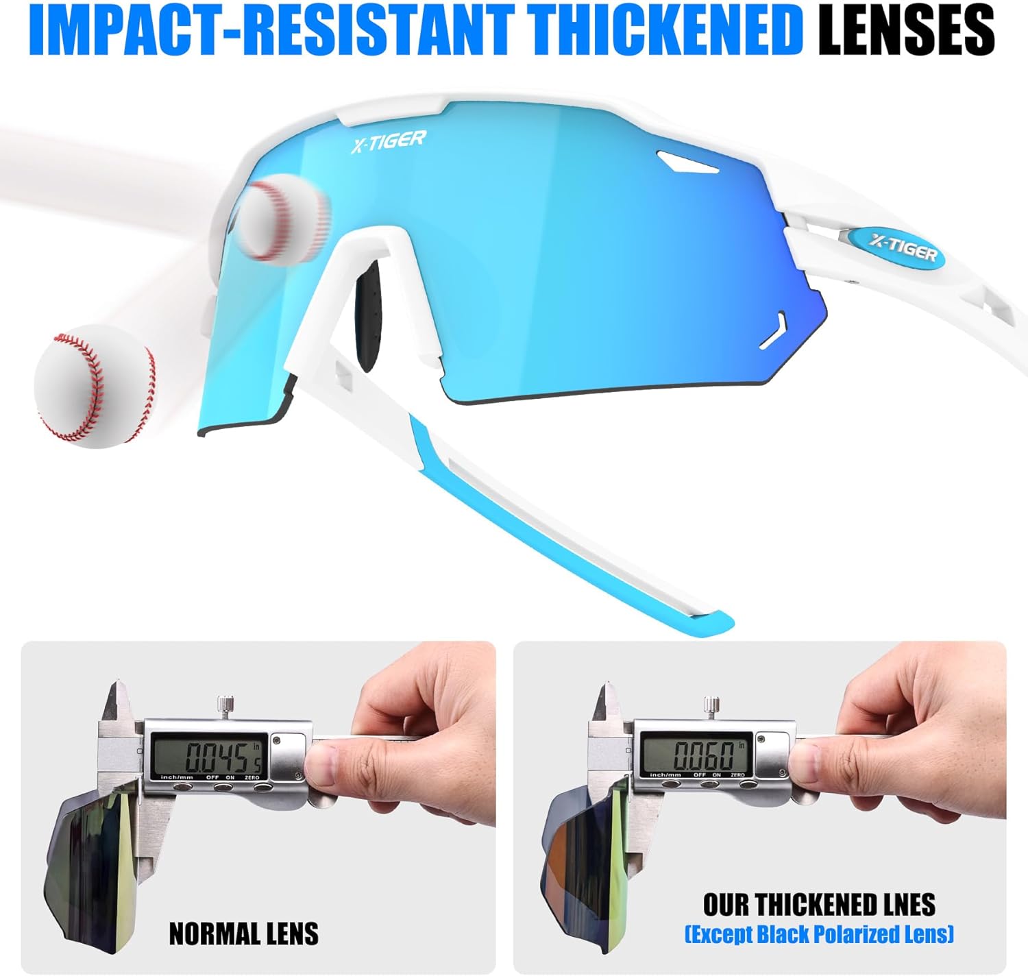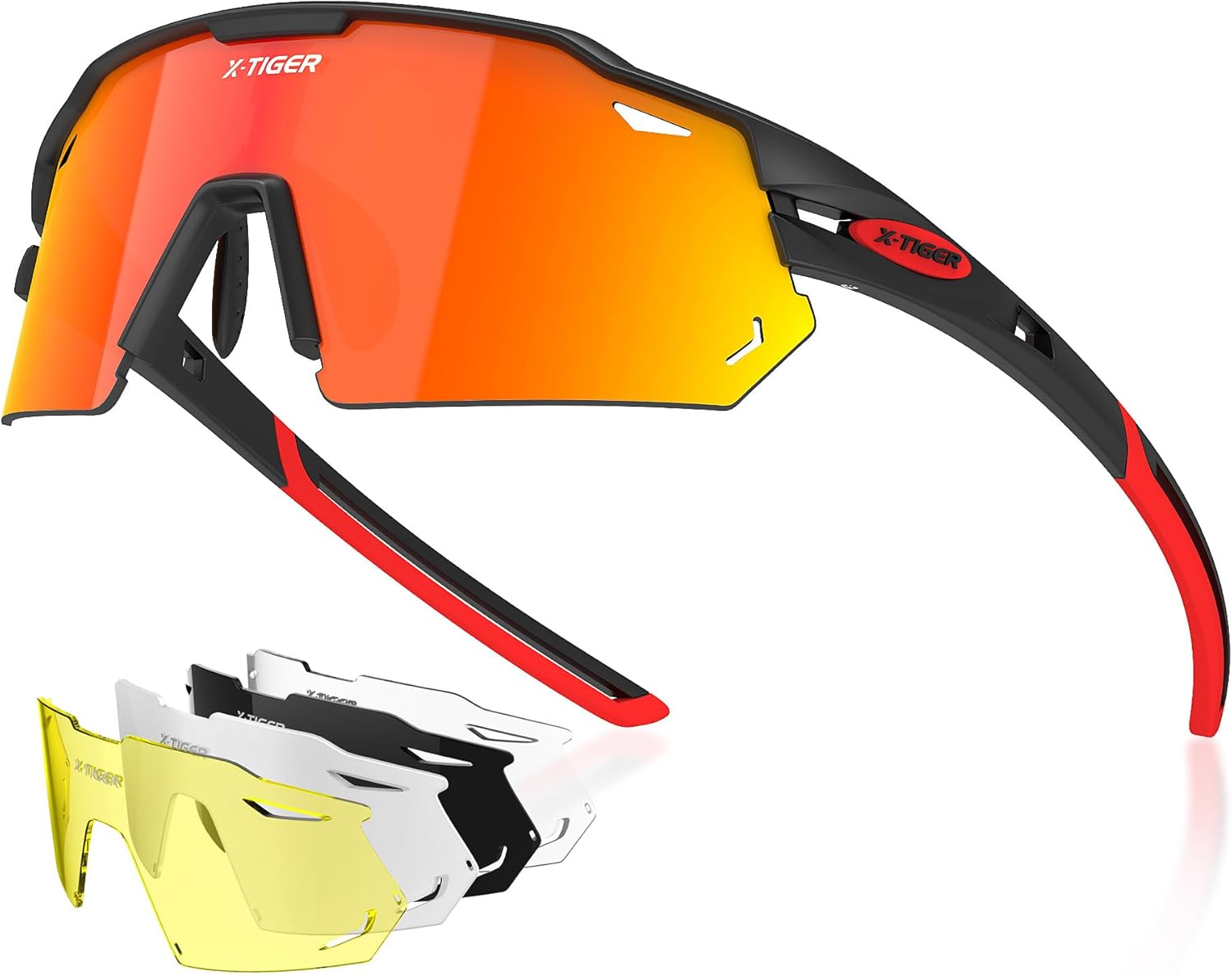 X-TIGER Polarized Cycling Glasses with 5 Interchangeable Lenses,MTB Biking Baseball Running Sports Sunglasses for Men Women