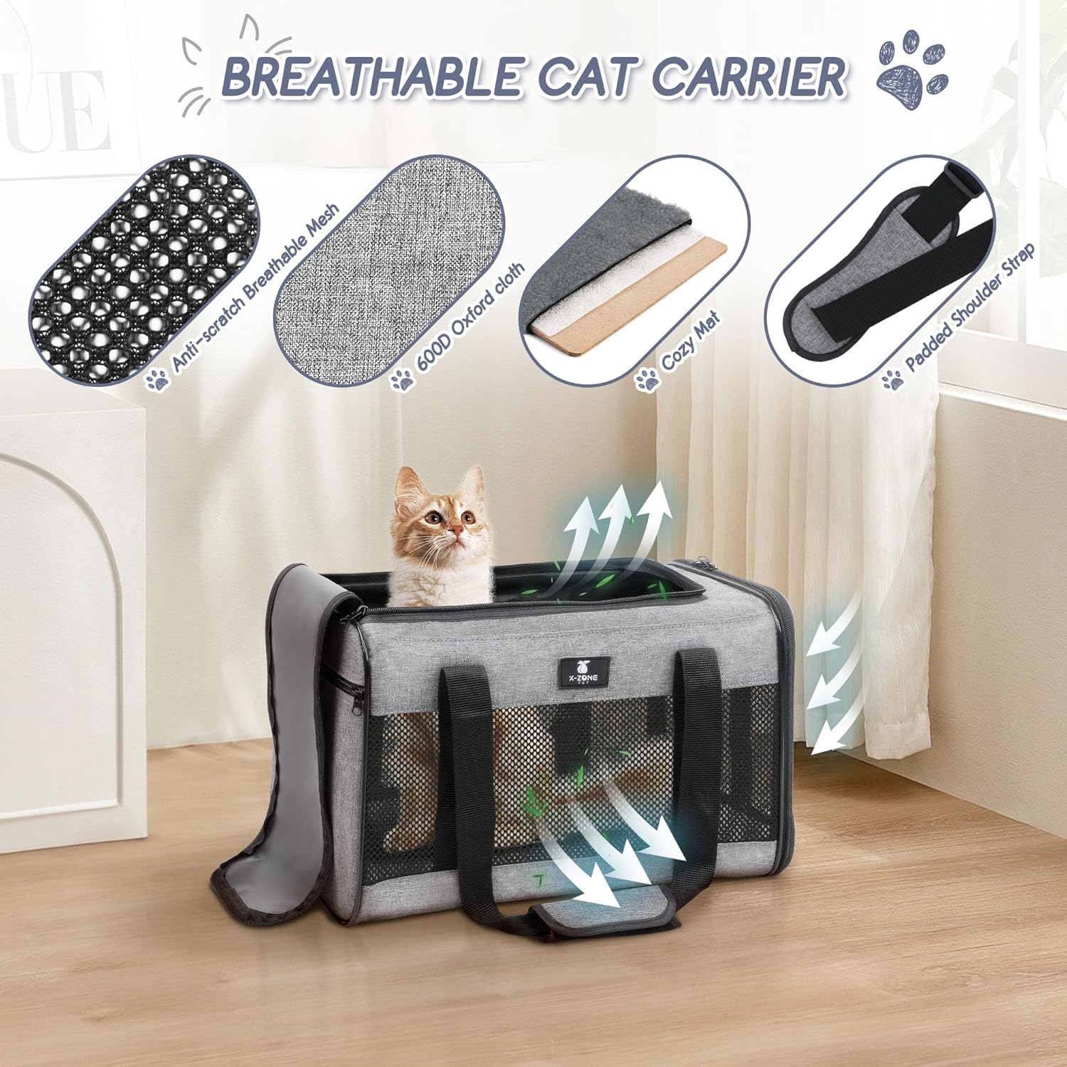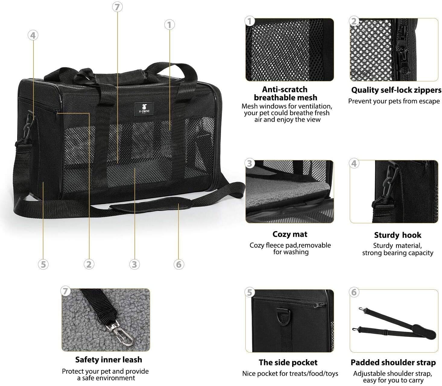 X-ZONE PET Cat Carrier Dog Carrier Pet Carrier for Small Medium Cats Dogs Puppies of 15 Lbs,Airline Approved Soft Sided Pet Travel Carrier,Dog Carriers for Small Dogs - Black Grey Purple Blue Brown