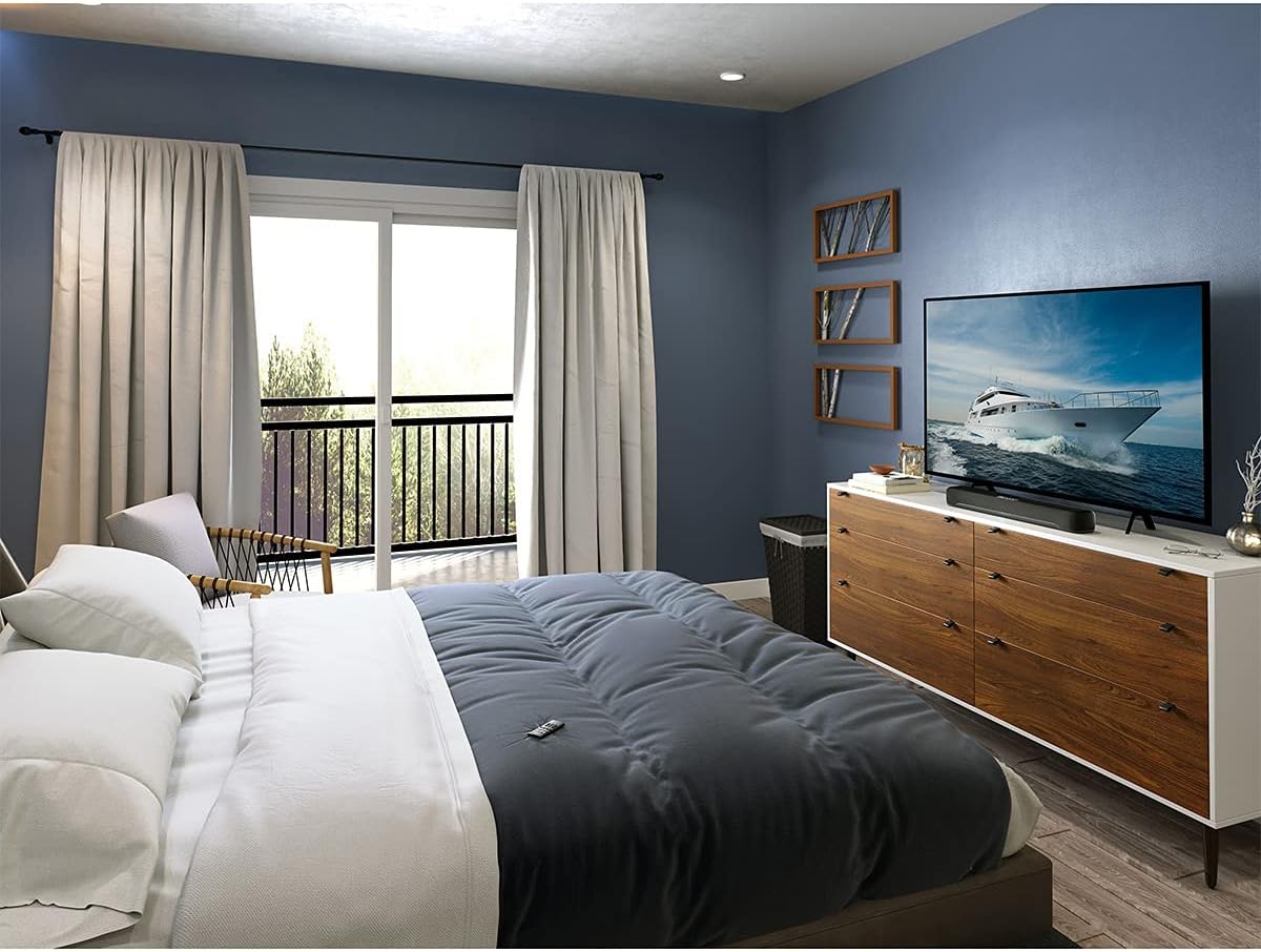 Small sound bar, big sound. A compact sound bar that doesn’t compromise on sound with a built-in subwoofer, Clear Voice technology and Bluetooth. Easy to wall mount for even more space-saving possibilities.