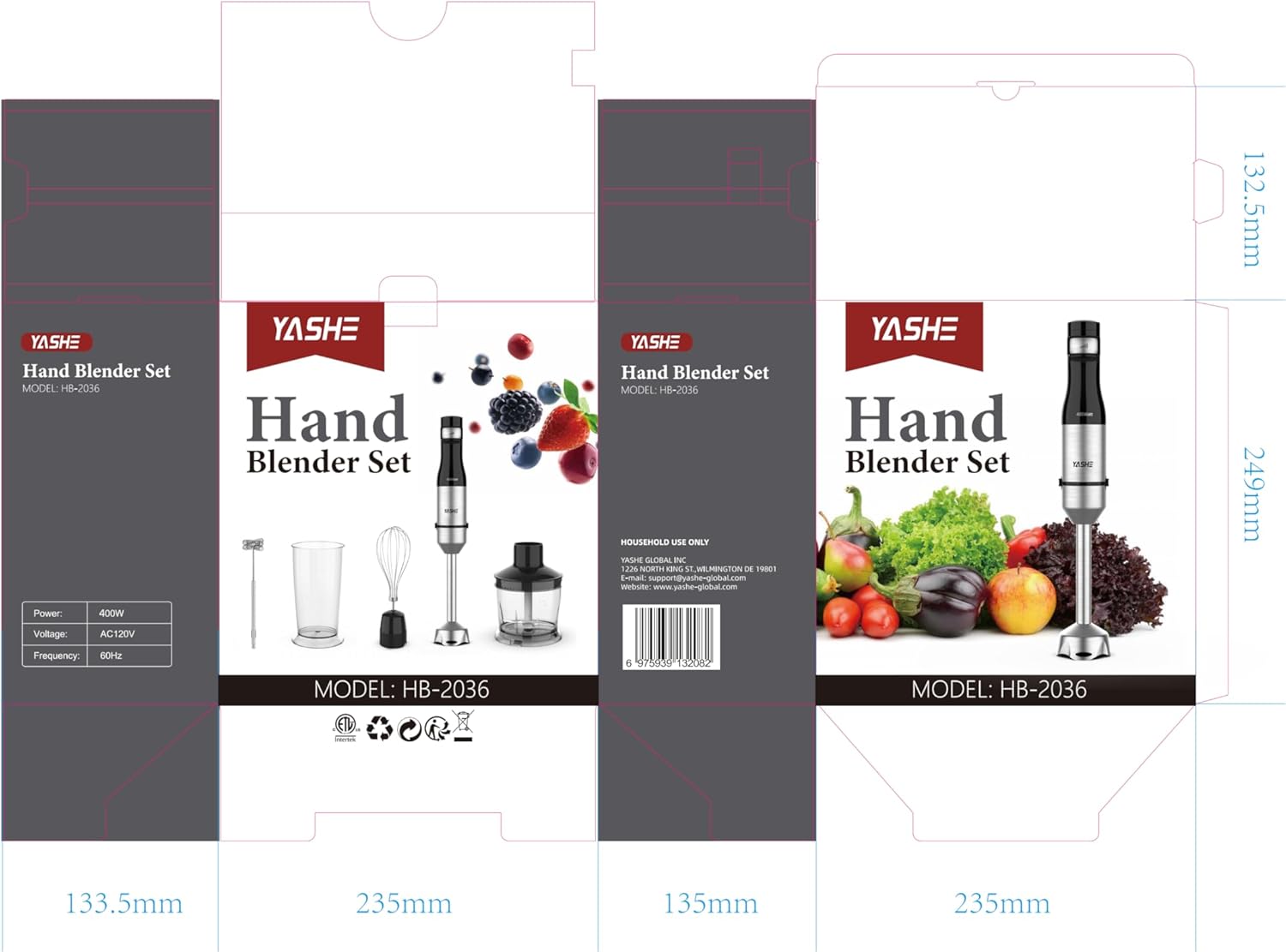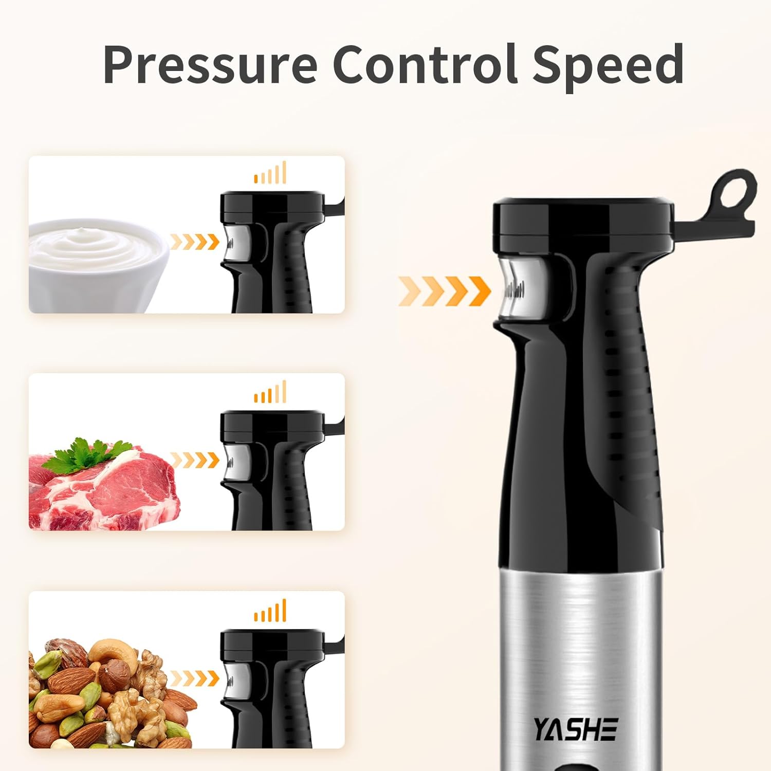 YASHE Immersion Blender, 5 in 1 Handheld Blender, Continuously Variable Speed, Stainless Steel Blender Stick, Emulsion Blender with Chopper, Whisk and Milk Frother for Meat, soups and Baby Food