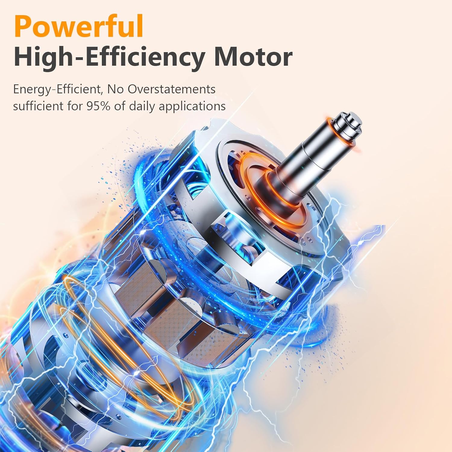 - Multi-Functional and Compact: This multi-functional handheld blender features a 400watt full copper motor, handheld immersion blender, 17oz food processor, 20oz beaker, milk frother, and electric whisk. You can use it for mixing, chopping, blending, and frothing milk, and after use, it can be easily stored, saving valuable countertop space in the kitchen