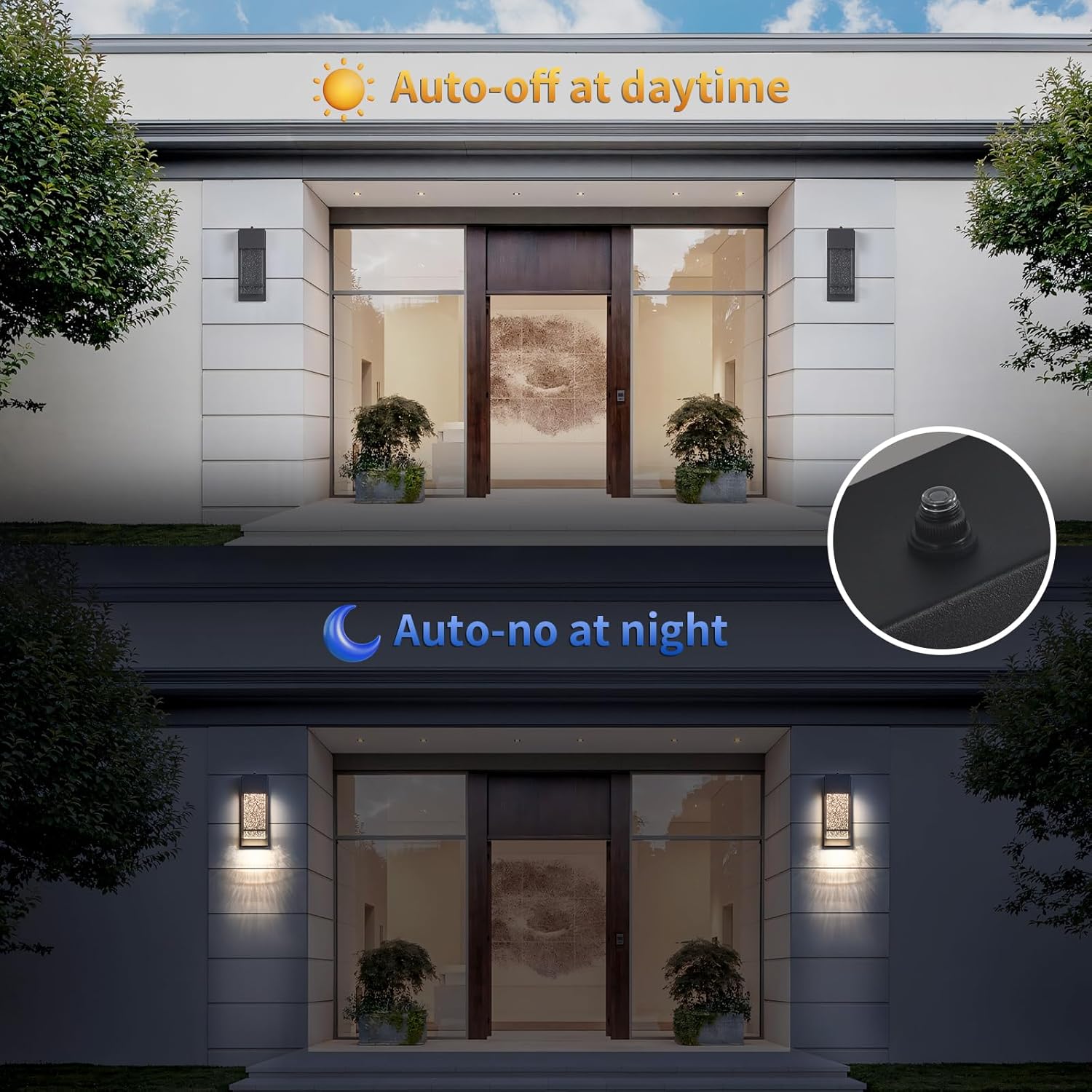 【Wide Application】This decorative wall-mounted light fixture is perfect for illuminating entryways, doorways, foyers, corridors, balconies, patios, and porches. It's also ideal for gardens, garages, yards, roadways, and commercial uses as overnight security or area lighting