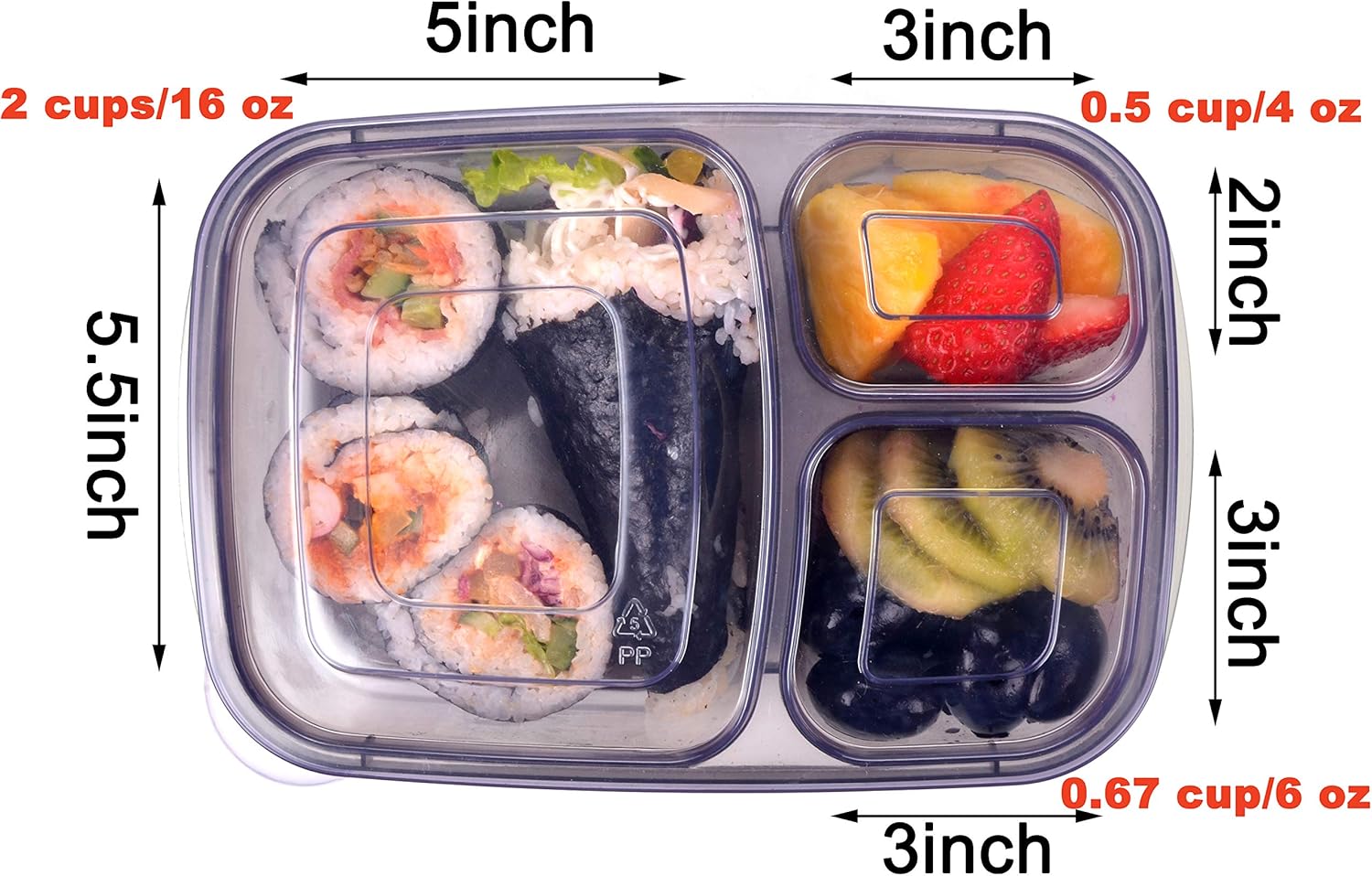 - SIZE - Each 780ml with 3 compartments. One 480ml, one 180ml and one 120ml compartment. 24 x 16 x 5.5 cm