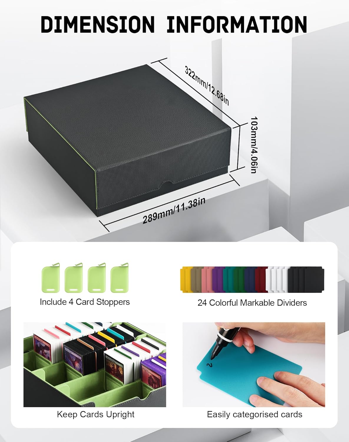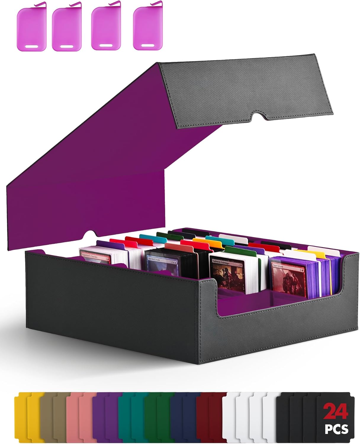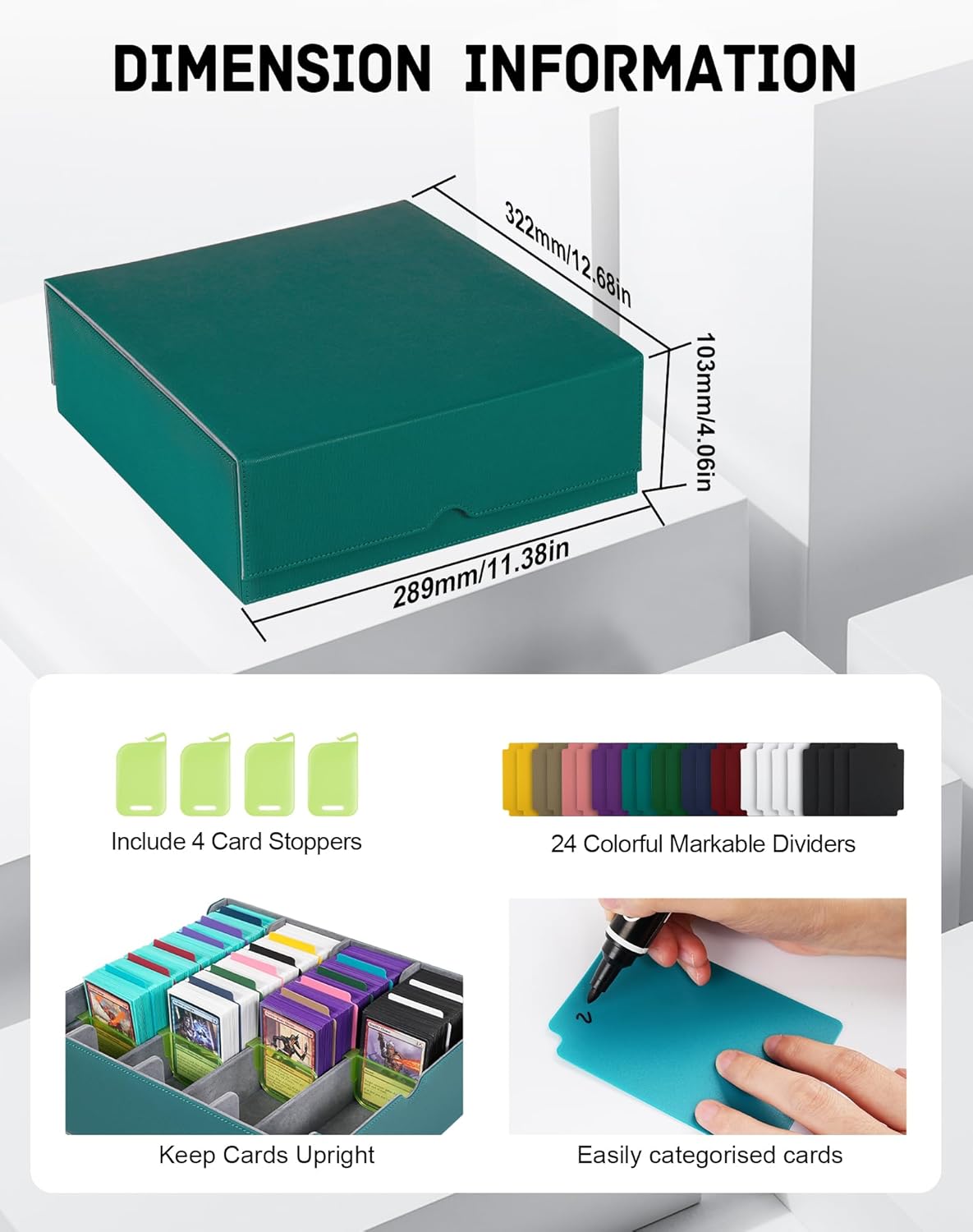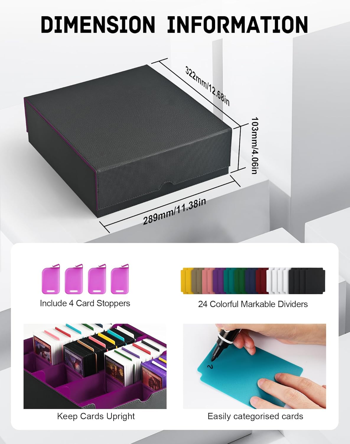 • Easy to Organize and Categorize: This deck box comes with 24 writable coloured dividers to easily organize and sort your cards. It is also equipped with 4 card stoppers so that cards will not fall apart even if the deck box is not full