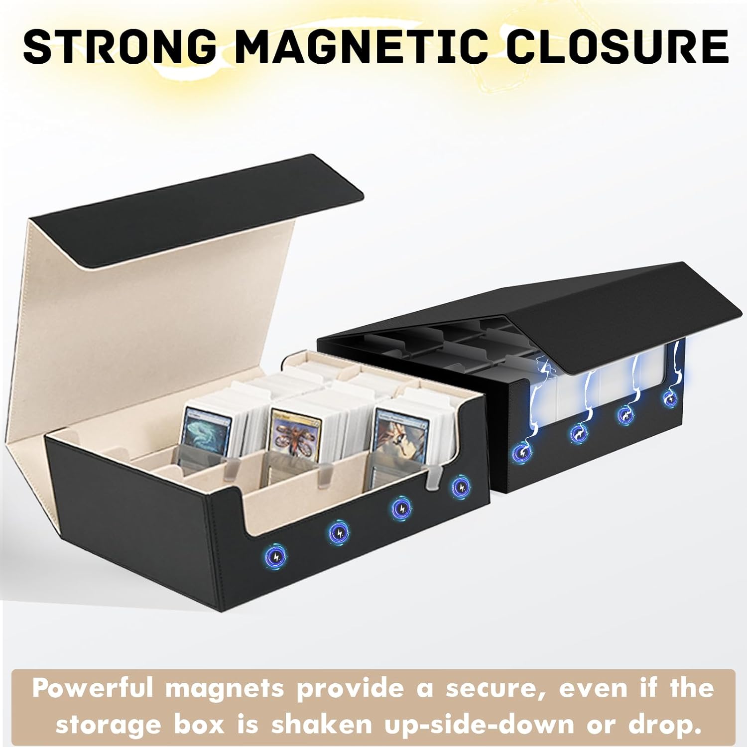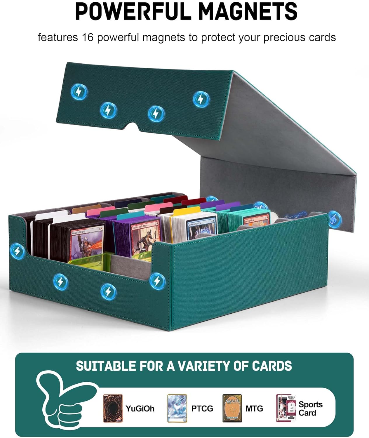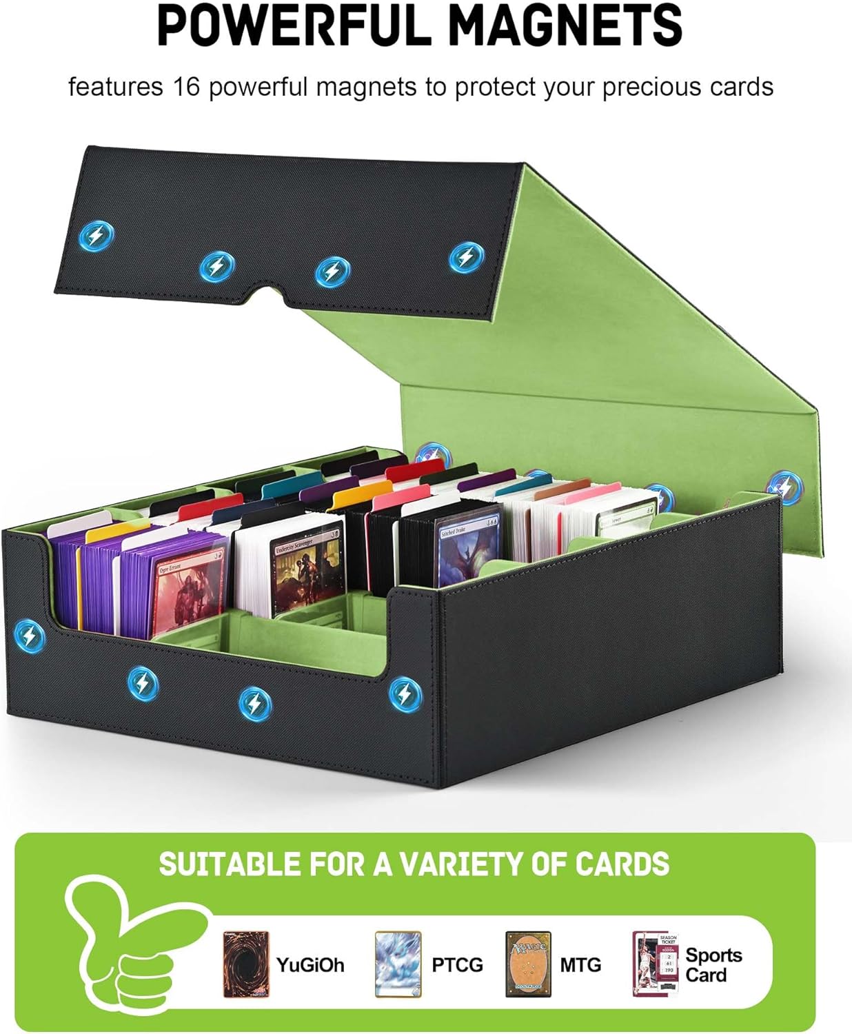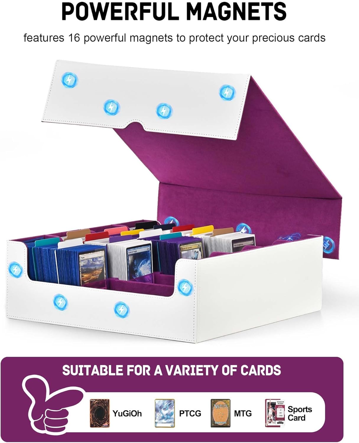 • Multi Use: Our trading card box is designed for gamers, perfect for organizing all kinds of game cards; for example, Magic the Gathering, Dragon Shield, YuGiOh!, Duel Masters, Sports Cards and many more collectible card games