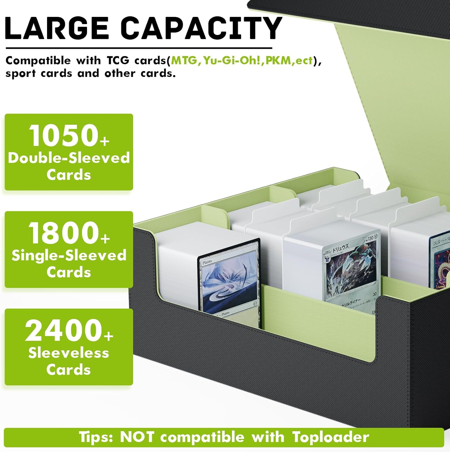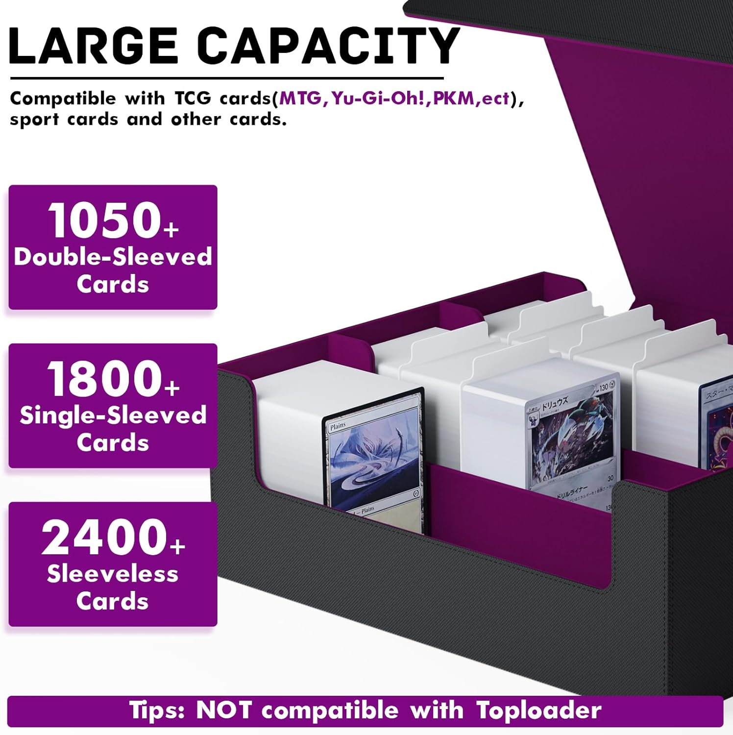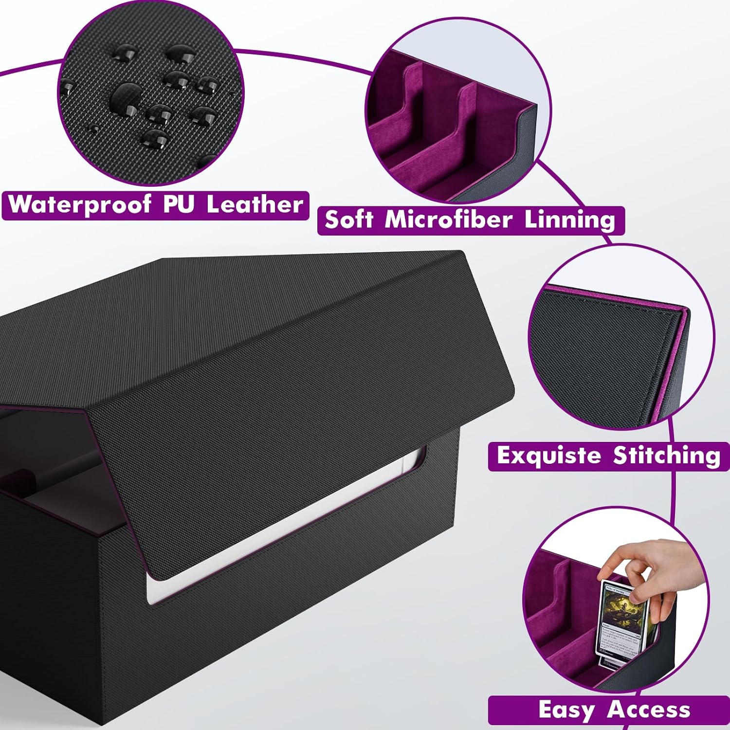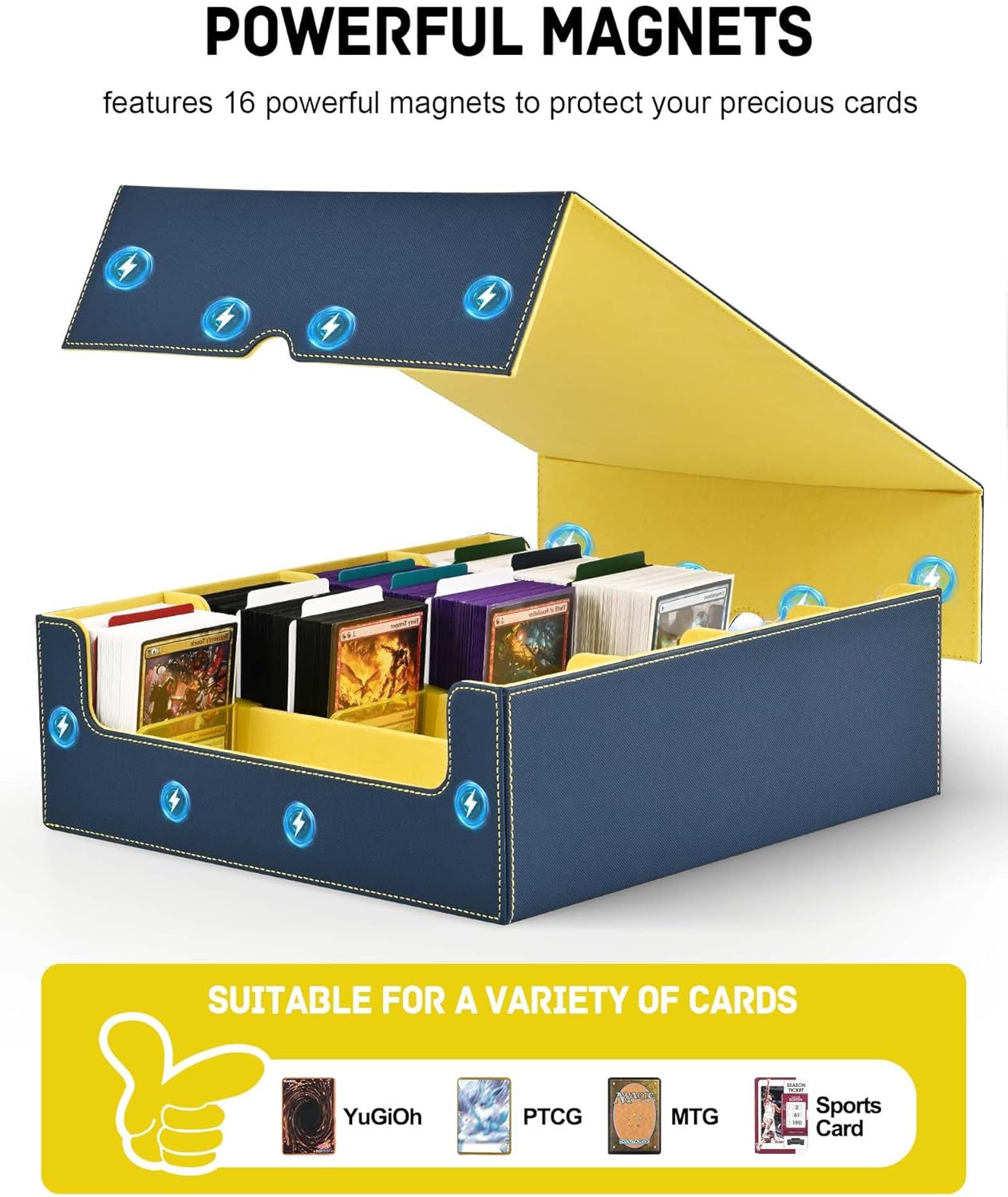 • Multi Use: Our trading card box is designed for gamers, perfect for organizing all kinds of game cards; for example, Magic the Gathering, Dragon Shield, YuGiOh!, Duel Masters, Sports Cards and many more collectible card games