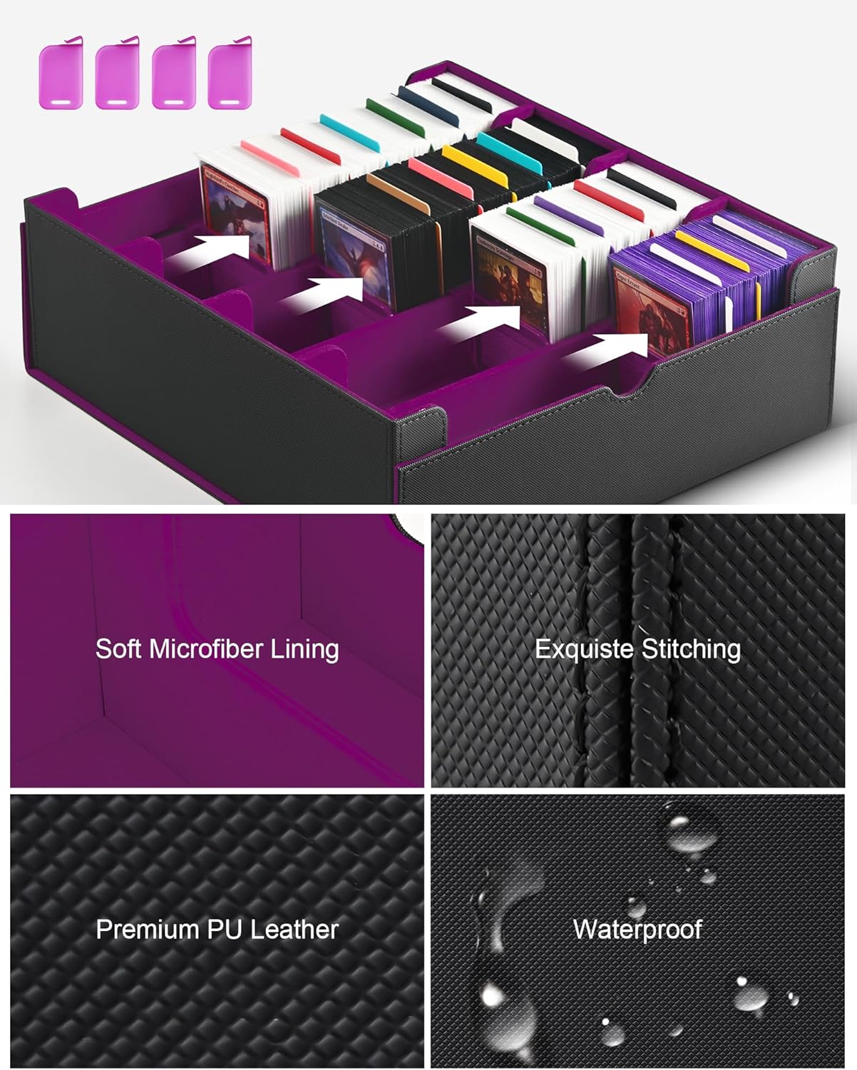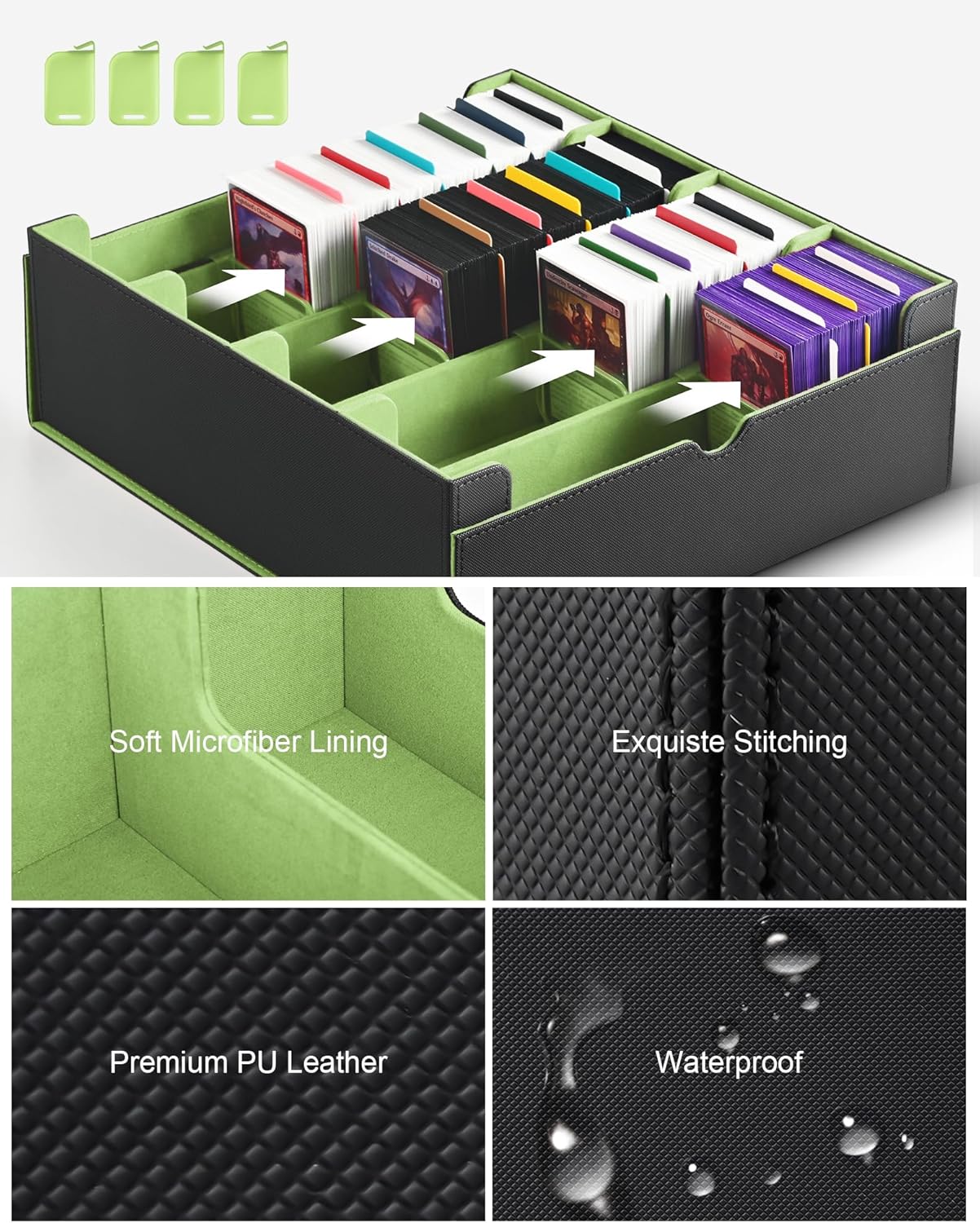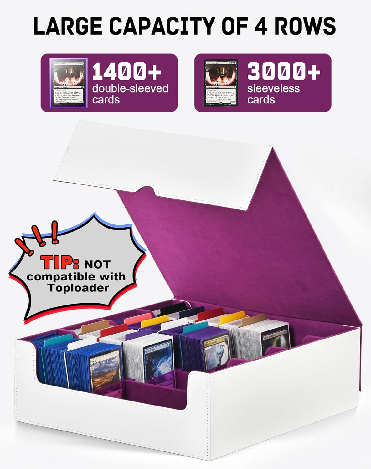 • High Capacity: This 4-row card deck box is large enough to store 1400+ double-sleeved cards or 3000+ sleeveless cards; Satisfying your storage needs in one go with its immense capacity