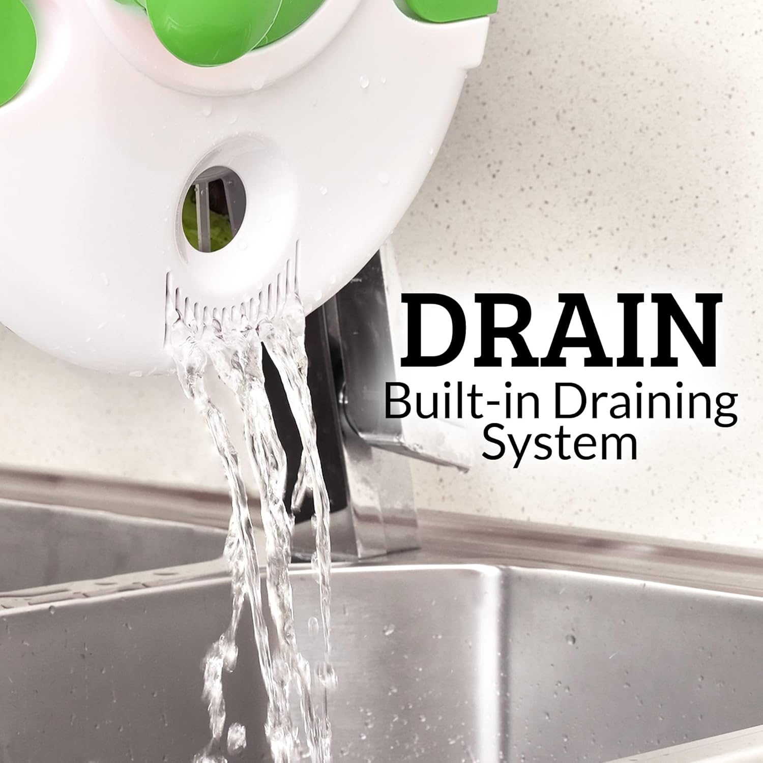 - Engineered For Your Convenience: Spinning, tossing & serving salad is now easier! Its crank-style rotary handle is comfortable to grasp, making it easy to spin the basket to full speed with just a couple of turns. The 2 built-in lid locks are secure so there’s no need to worry about all the contents pouring out when spinning away. Its built-in drainage system allows you to pour or extract water without removing the lid.