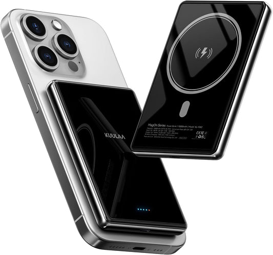 Kuulaa Magsafe Power Bank 10000mAh Magnetic Portable Charger for iPhone, PD 20W Fast Charging, USB-C In/Out, Battery Pack Power Bank for iPhone 16/15/14/13/12 & Magsafe Case, Mirror-finish Body, Black