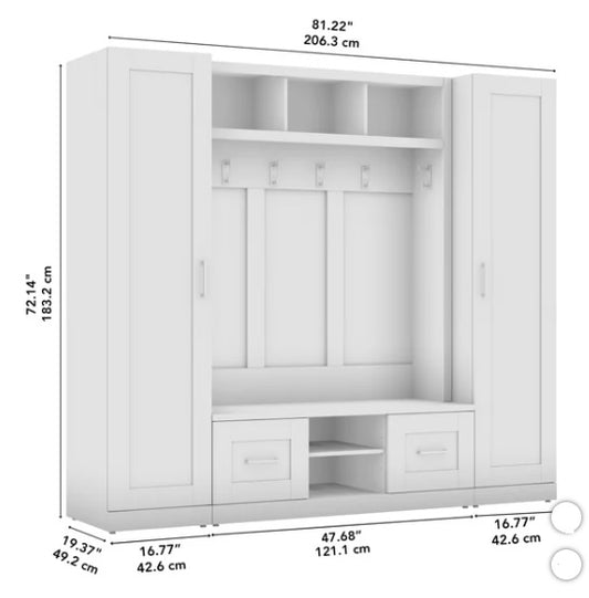 Bush Furniture Hampton Heights Hall Tree with Bench and Narrow Cabinets