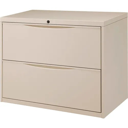 Interion® 2 Drawer Premium Lateral File Cabinet, Legal & Letter Size, 36"W x 18"D x 28"H, Putty