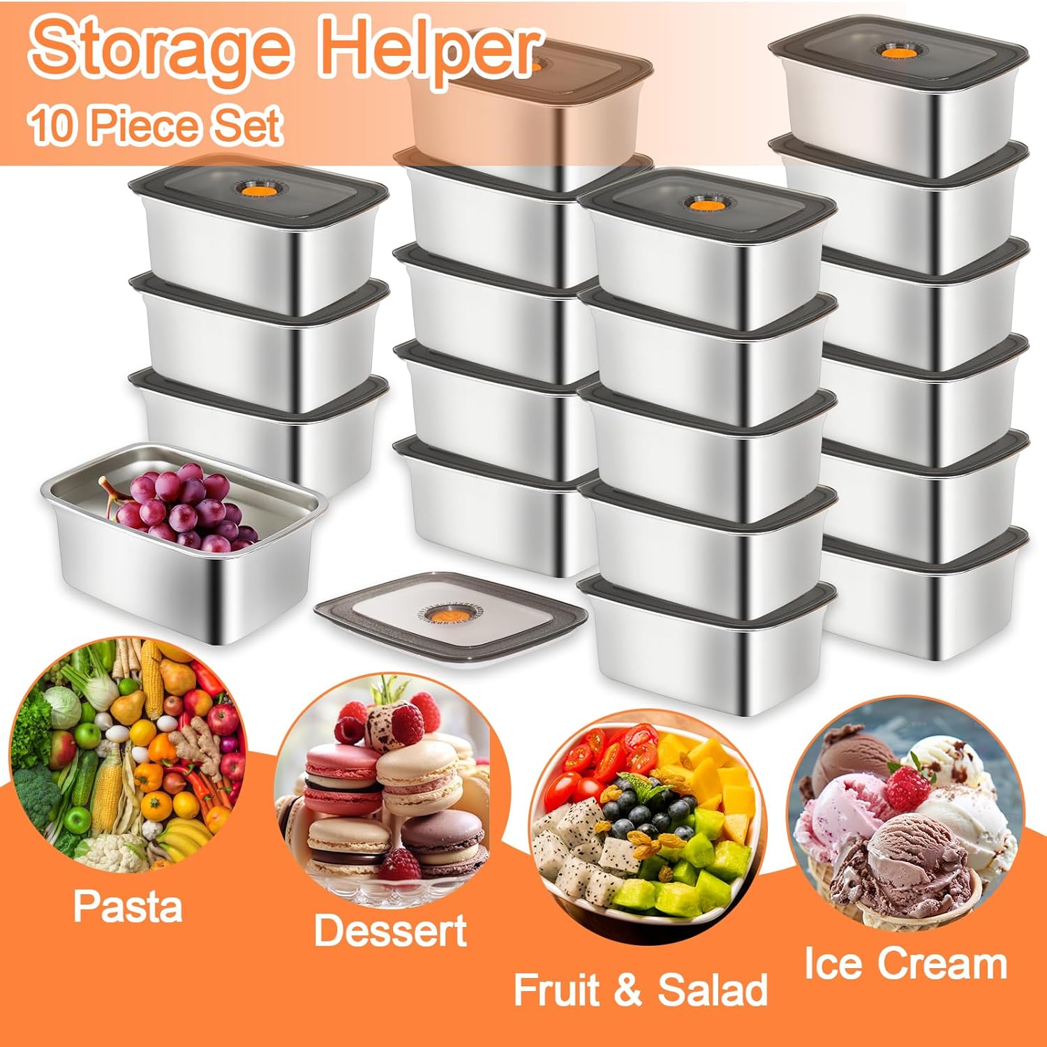 - Value Package: You will receive 10 stainless steel food containers with lids, the quantity is enough to meet your daily use and replacement needs. Perfect for storing or preserving food such as fruits, ice cream, salads, leftovers, sandwiches, bread, etc