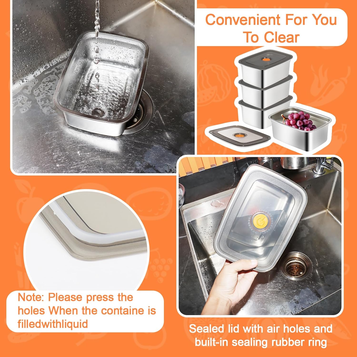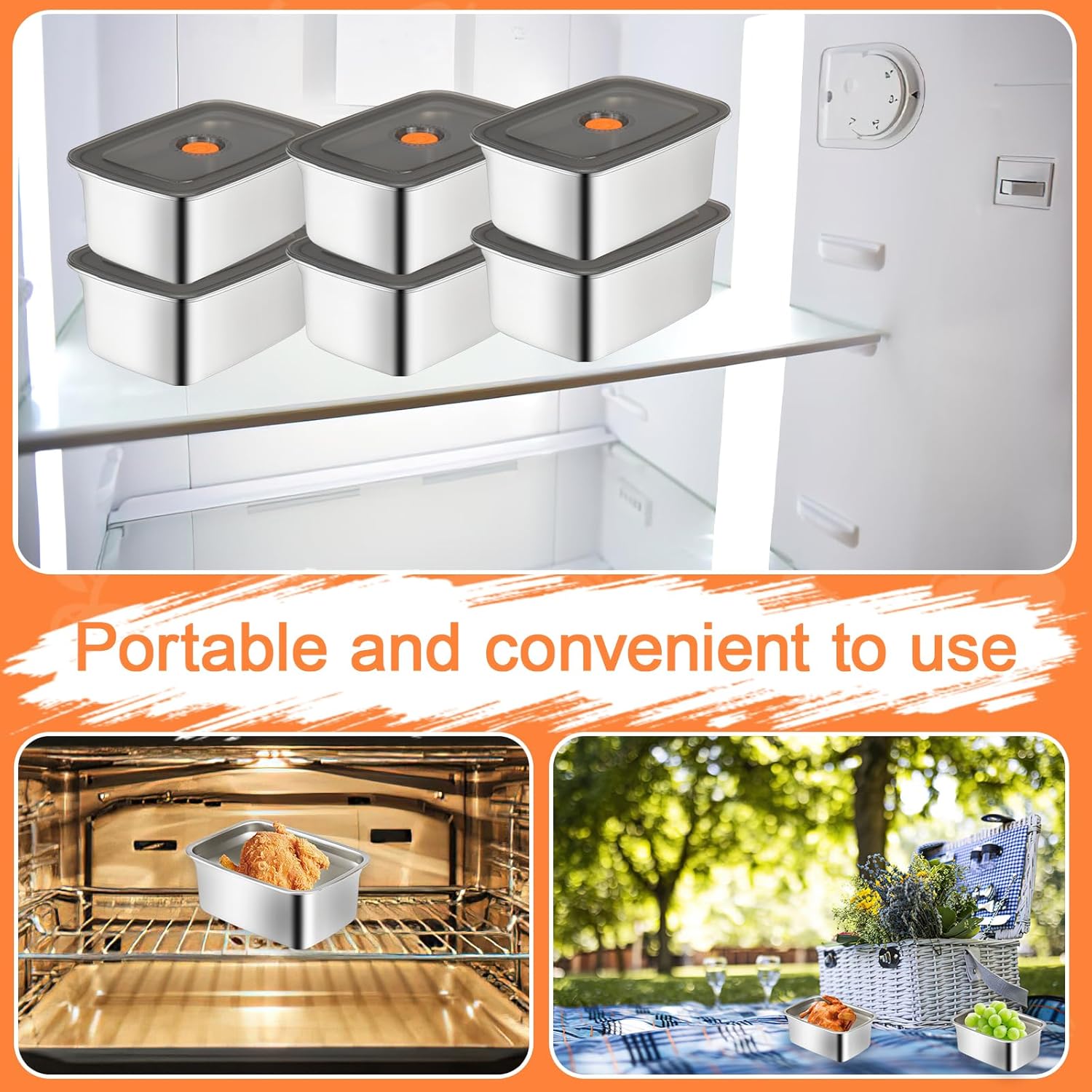 - Secure & Durable: This food storage box is made of high-quality stainless steel, which is corrosion-resistant and rust-proof, ensuring long-term safe use. Not only can it be put into the refrigerator, oven and microwave, it can also be cleaned in the dishwasher. Note: Take off the lid when putting it in the oven and microwave