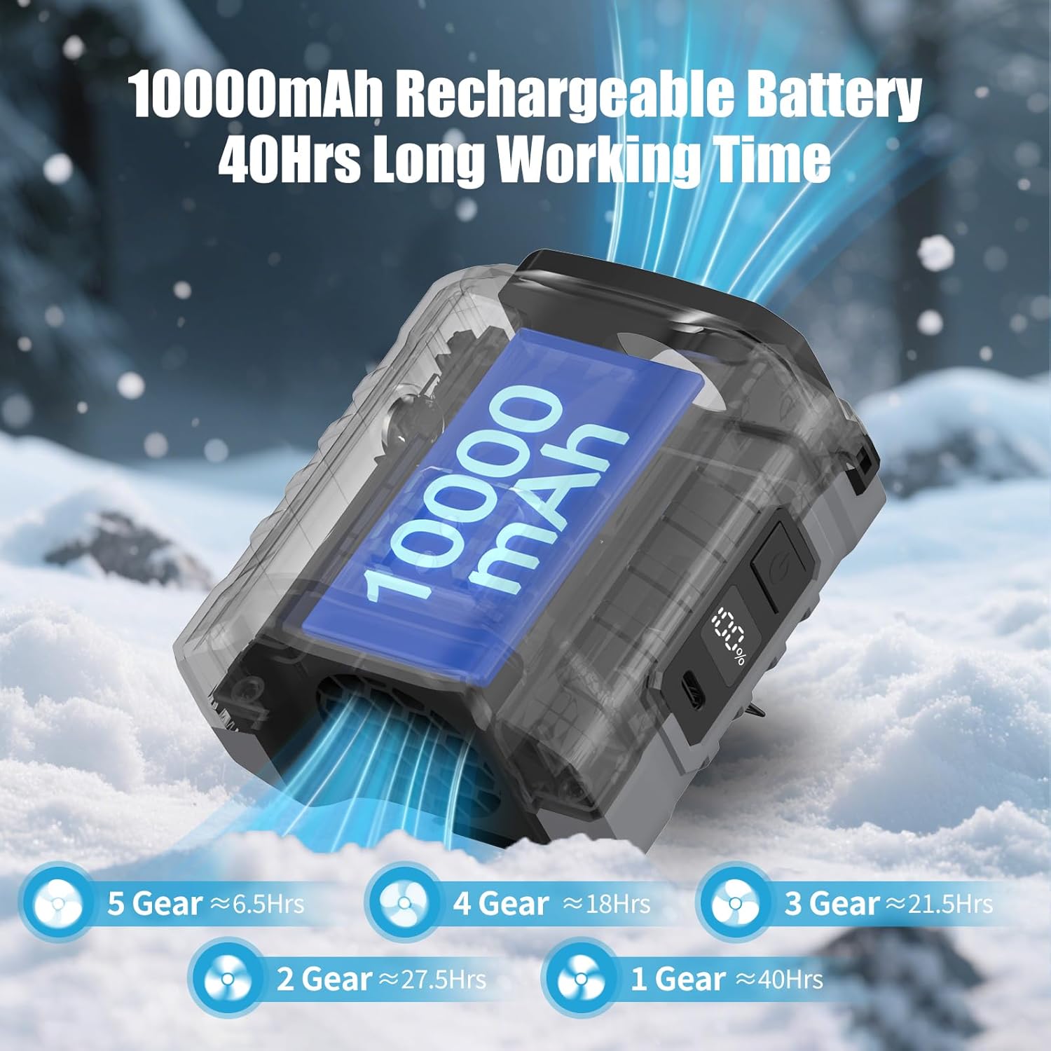 10000mAh Portable Waist Fan, Personal Fan with 5 Speeds, Clip on Wearable Belt Fan Rechargeable Battery Operated, Neck Fan Hanging, 40H Shirt Fan Cooling for Outdoor Travel Camping (Gray)