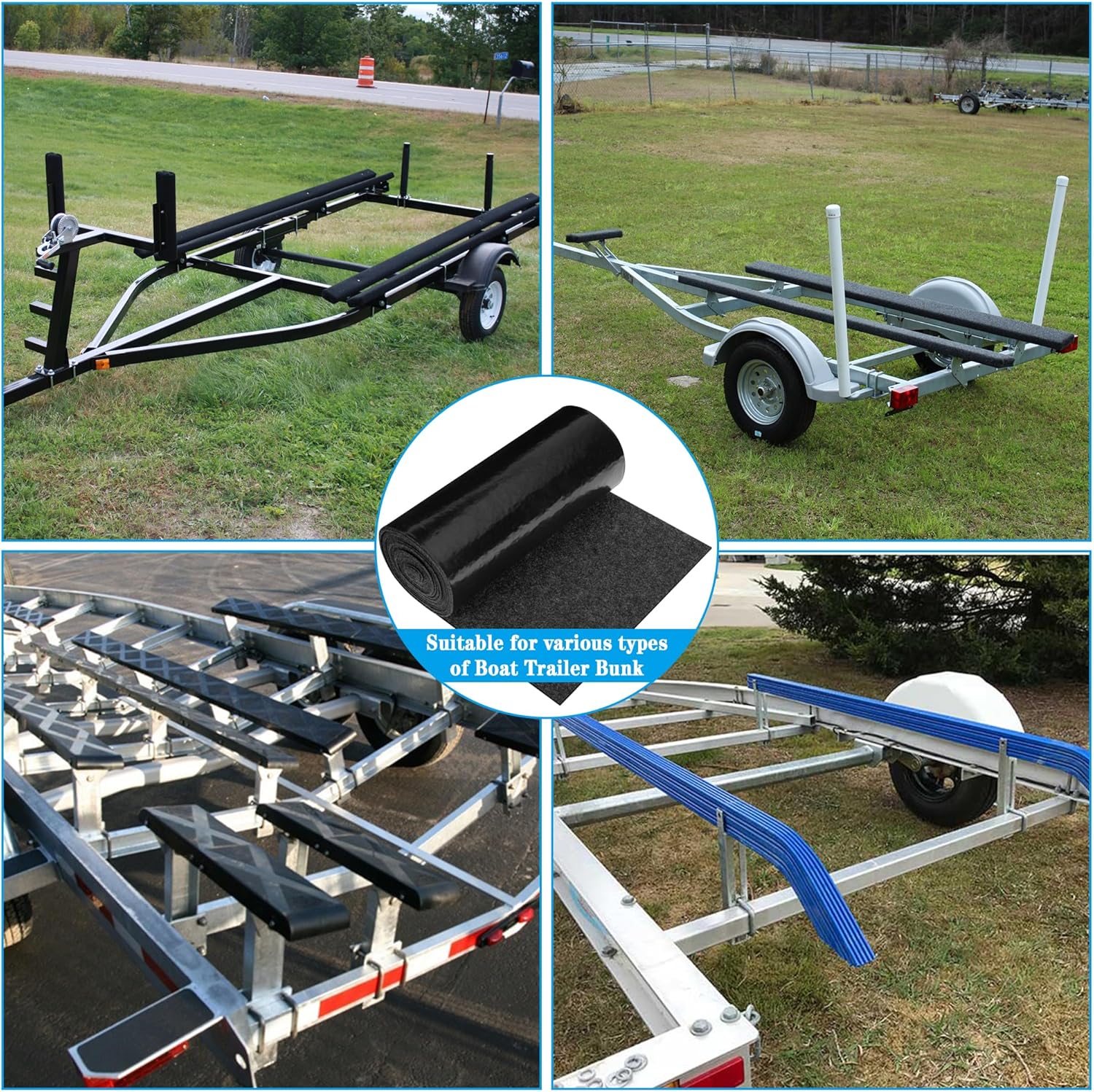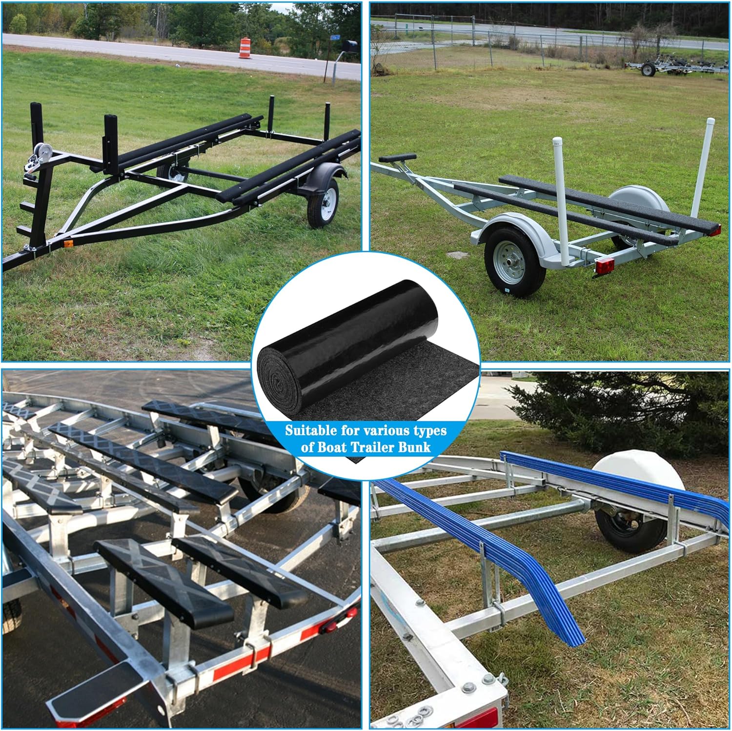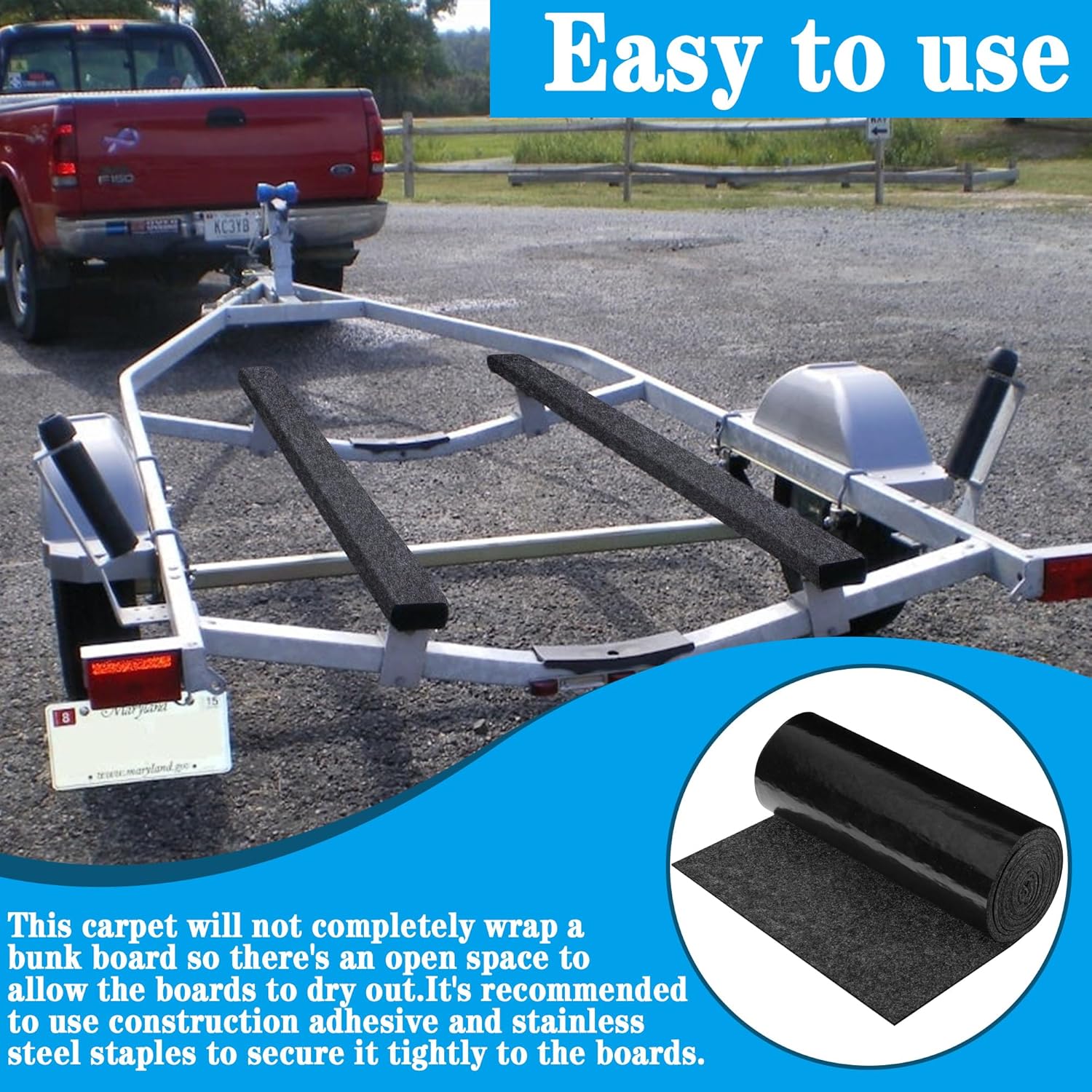 - Easy to Use: Simply unfold the carpet and lay it flat on the trailer bunk board. It is recommended to use glue or stapler to secure it to the board (glue and stapler are not included).