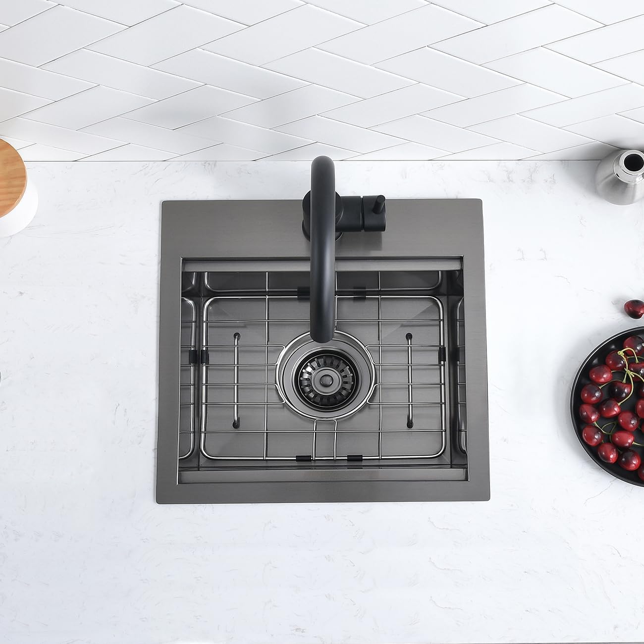 15 Black Stainless Steel Drop in Kitchen Bar Sink, Scamall 15X15X9 Inches Topmount Small Bar Sinks - 16 Gauge Matte Black Stainless Steel Workstation Kitchen Bar Sink SM021-1SBG