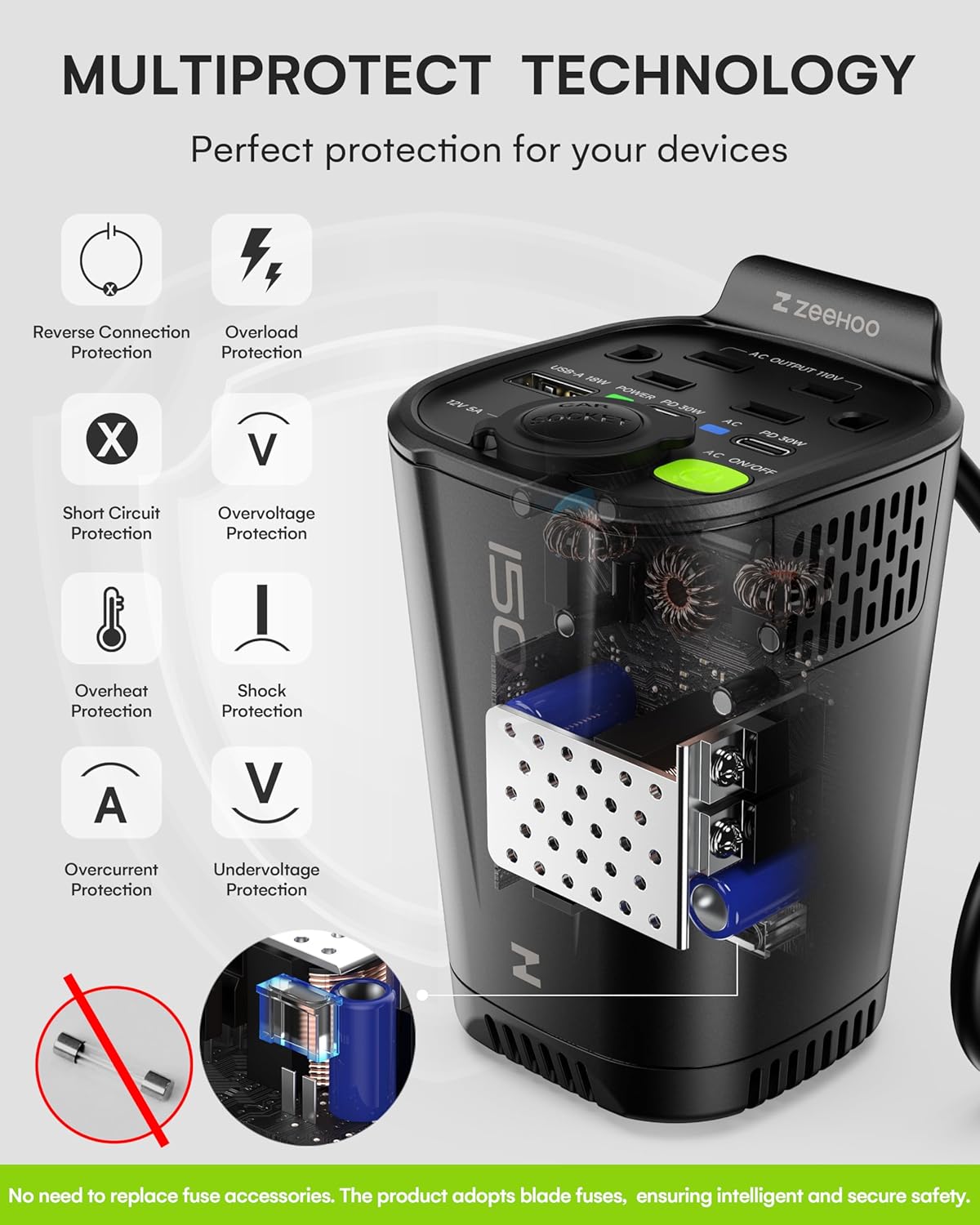- Efficient Power Conversion: Converts 12V DC from your car into 110V AC, providing a reliable power source for small appliances, electronic gadgets, and other power-hungry devices