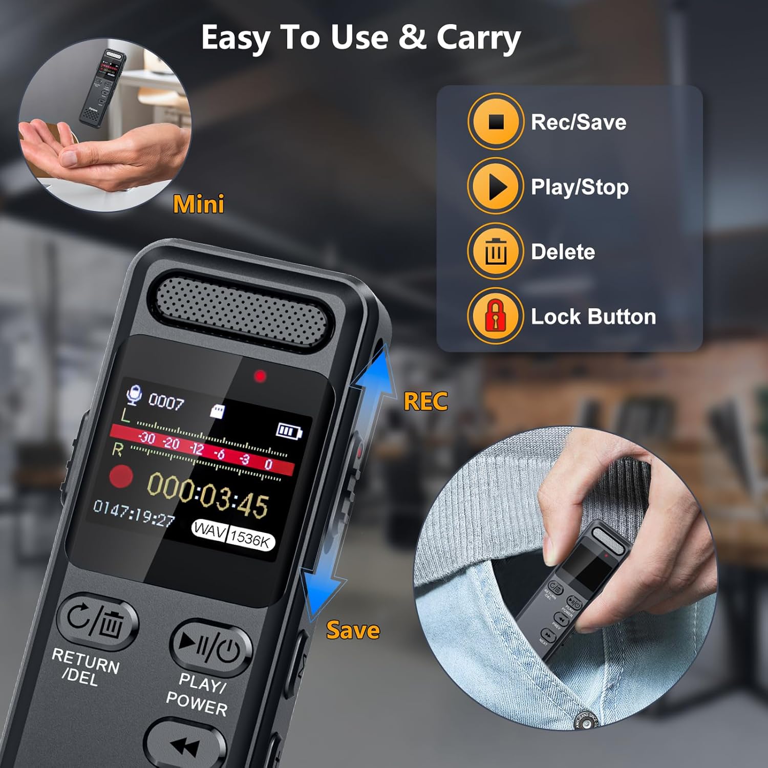 - 【One-Touch Recording & Secure Lock Function】Designed for ease of use, our tape recorder allows instant recording with a simple slide of the REC button, even when powered off. The exclusive Lock function prevents accidental touches, ensuring uninterrupted recording sessions. If reliability and user-friendliness are your priorities, this voice activated recorder is the perfect tool for your needs
