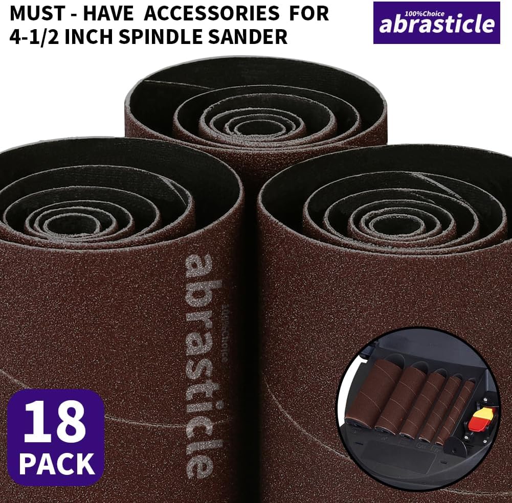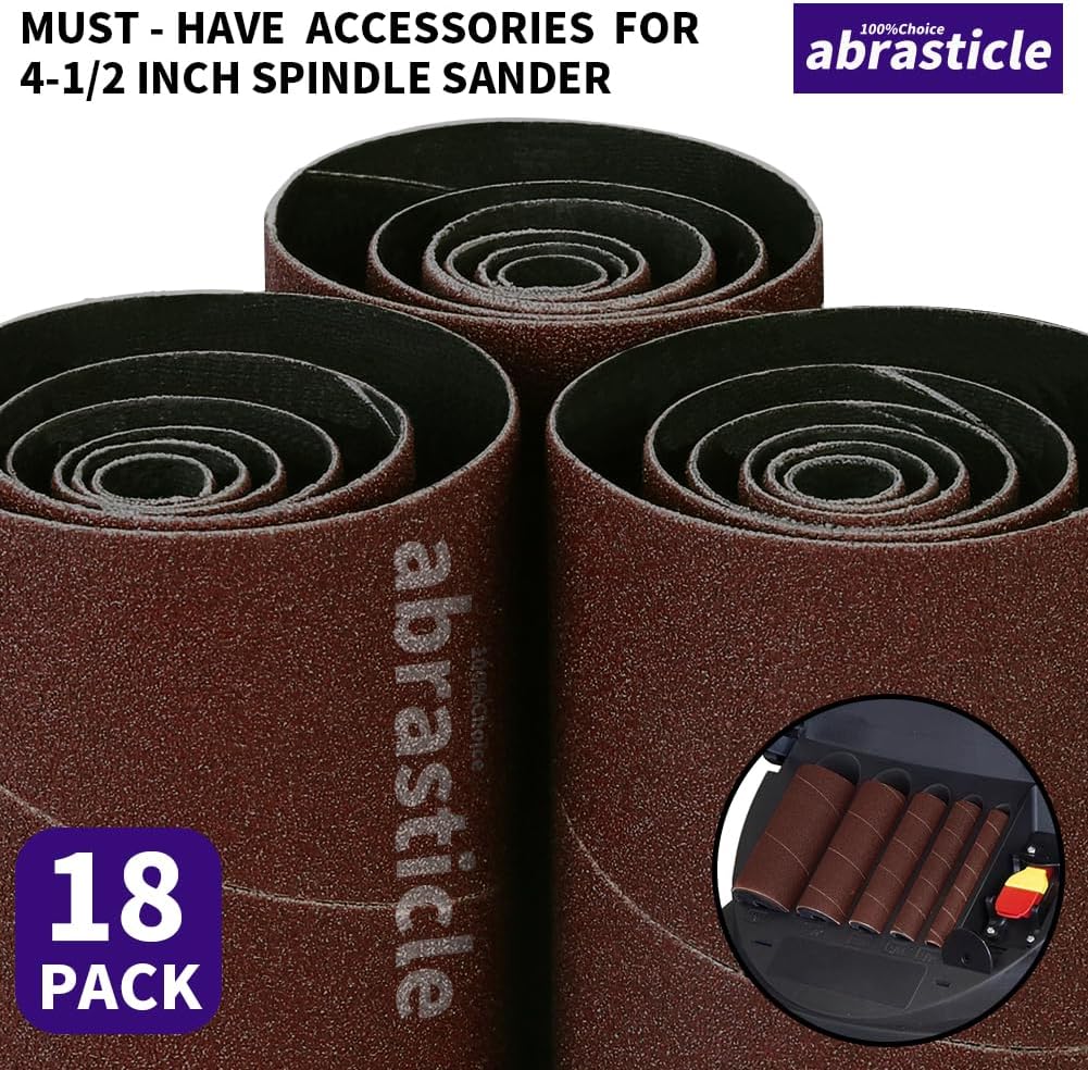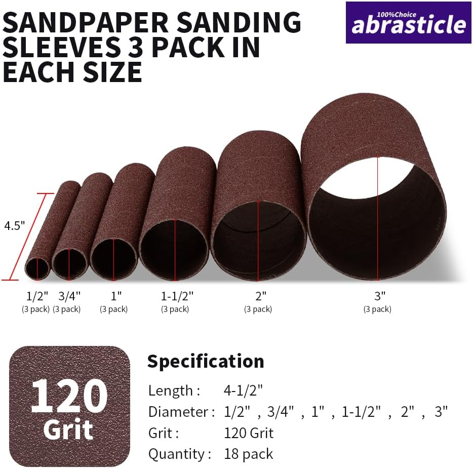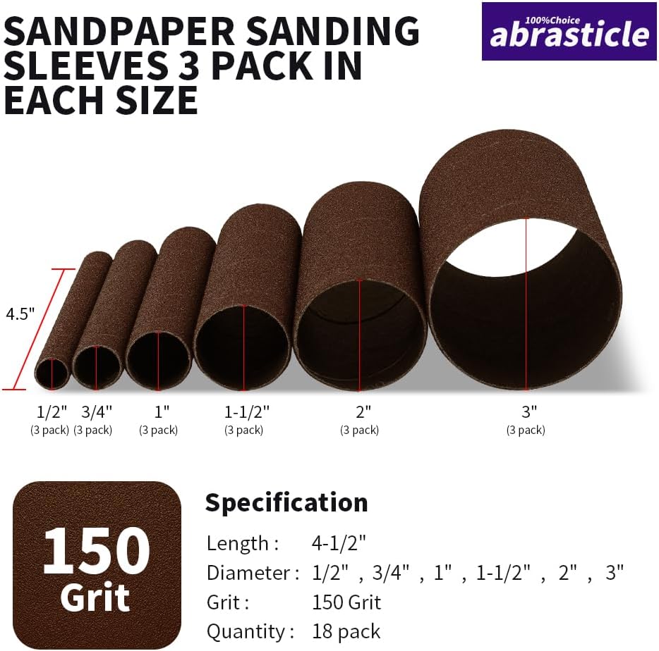 18 Pack Spindle Sander Sleeves, Sanding Sleeves for Oscillating Sander, 80 150 240 Assorted Grit Sandpaper, 4-1/2" Length, 1/2",3/4",1",1-1/2", 2", 3" Diameter