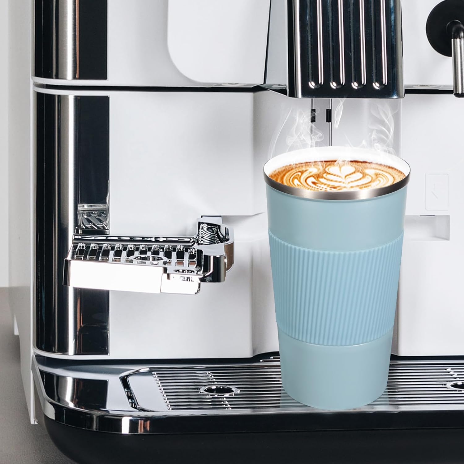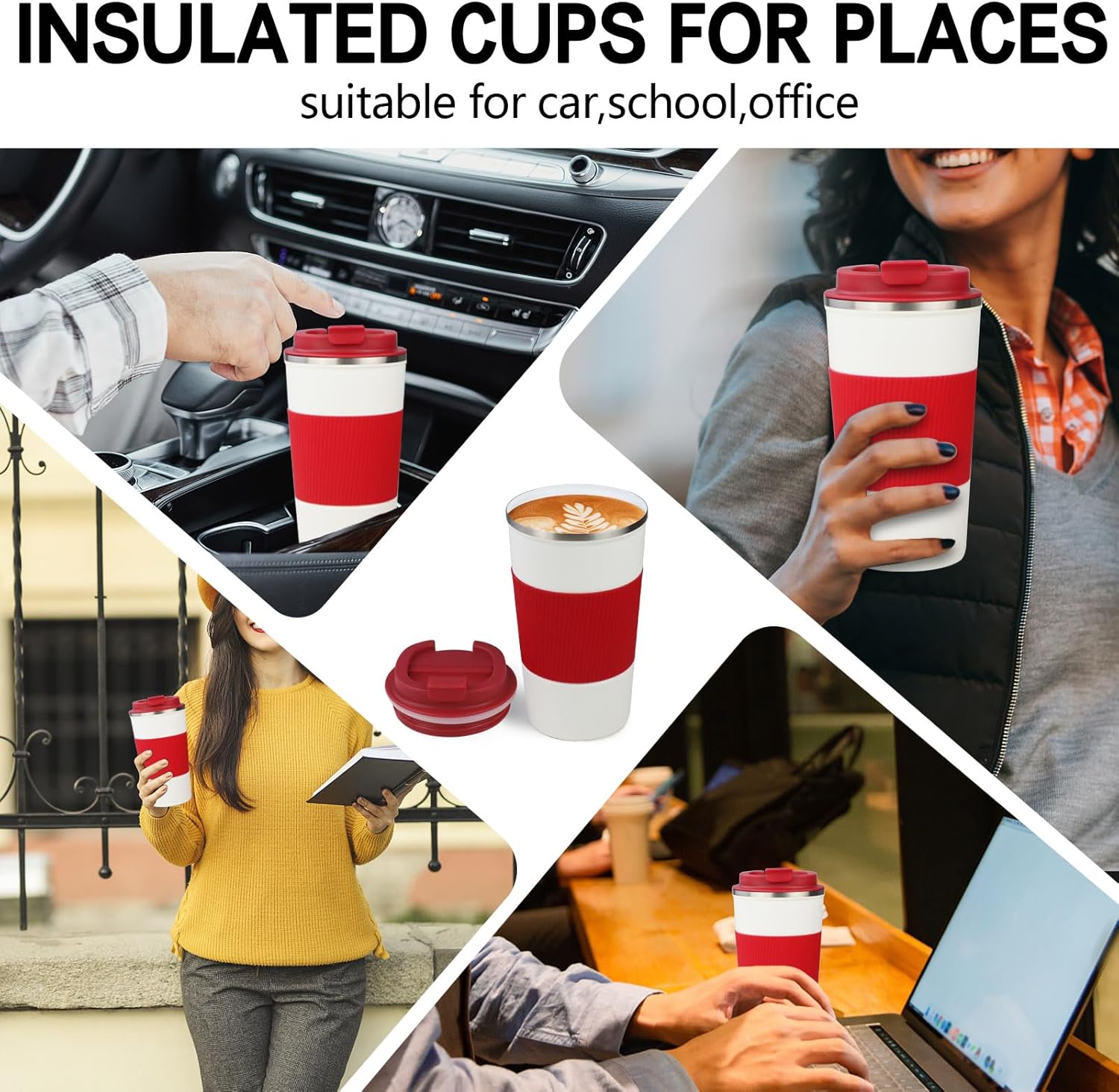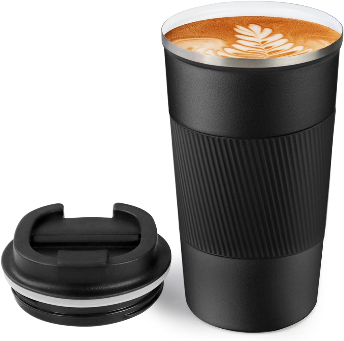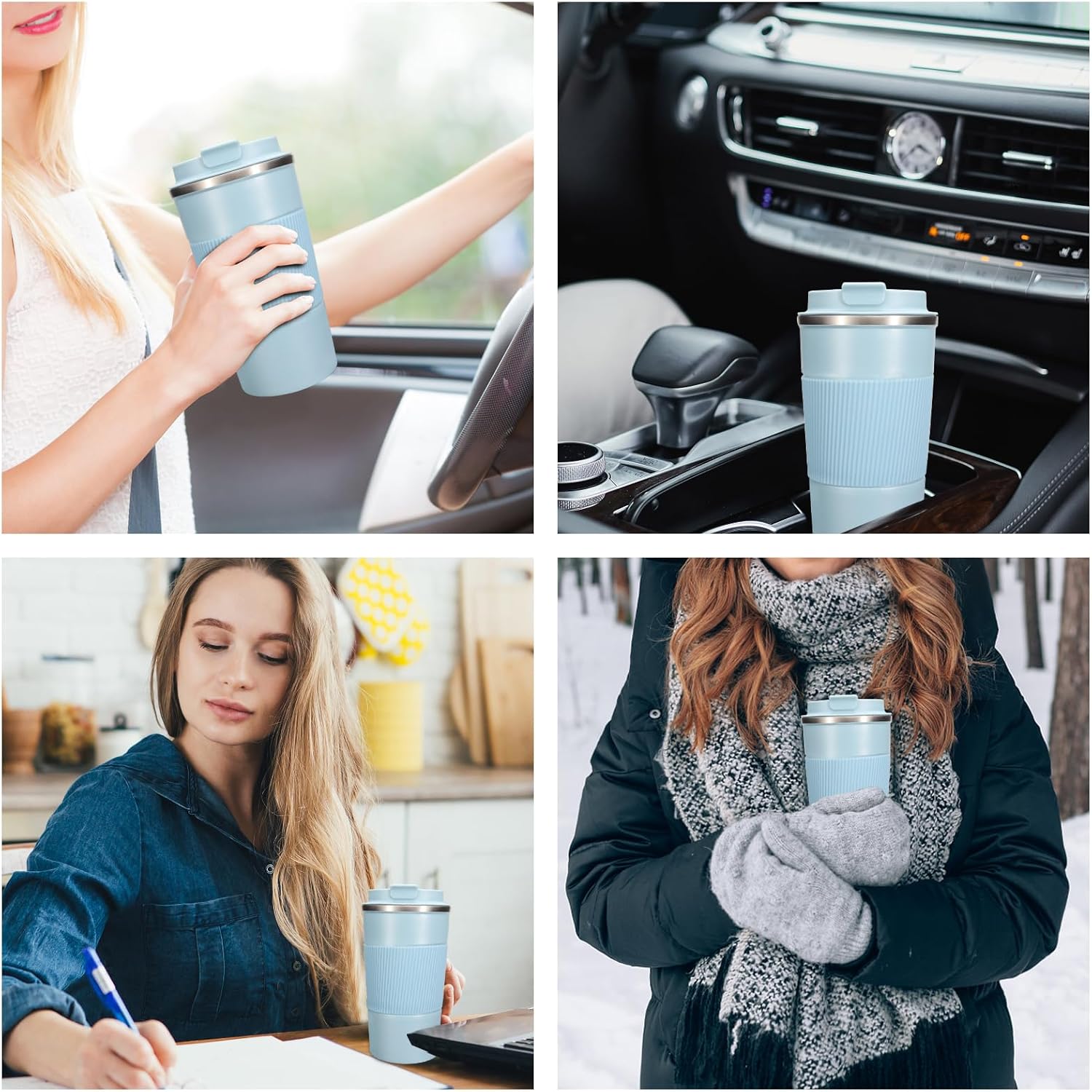 - 【Leak-proof, Non-slip Design】The cover of coffee travel cup has a silicone sealing ring, which has a good leak-proof effect. There is a small opening on the surface of the lid, which can be opened directly to drink and reduce spatter. Coffee cup is also equipped with silicone anti-slip sleeve, comfortable and anti-slip.