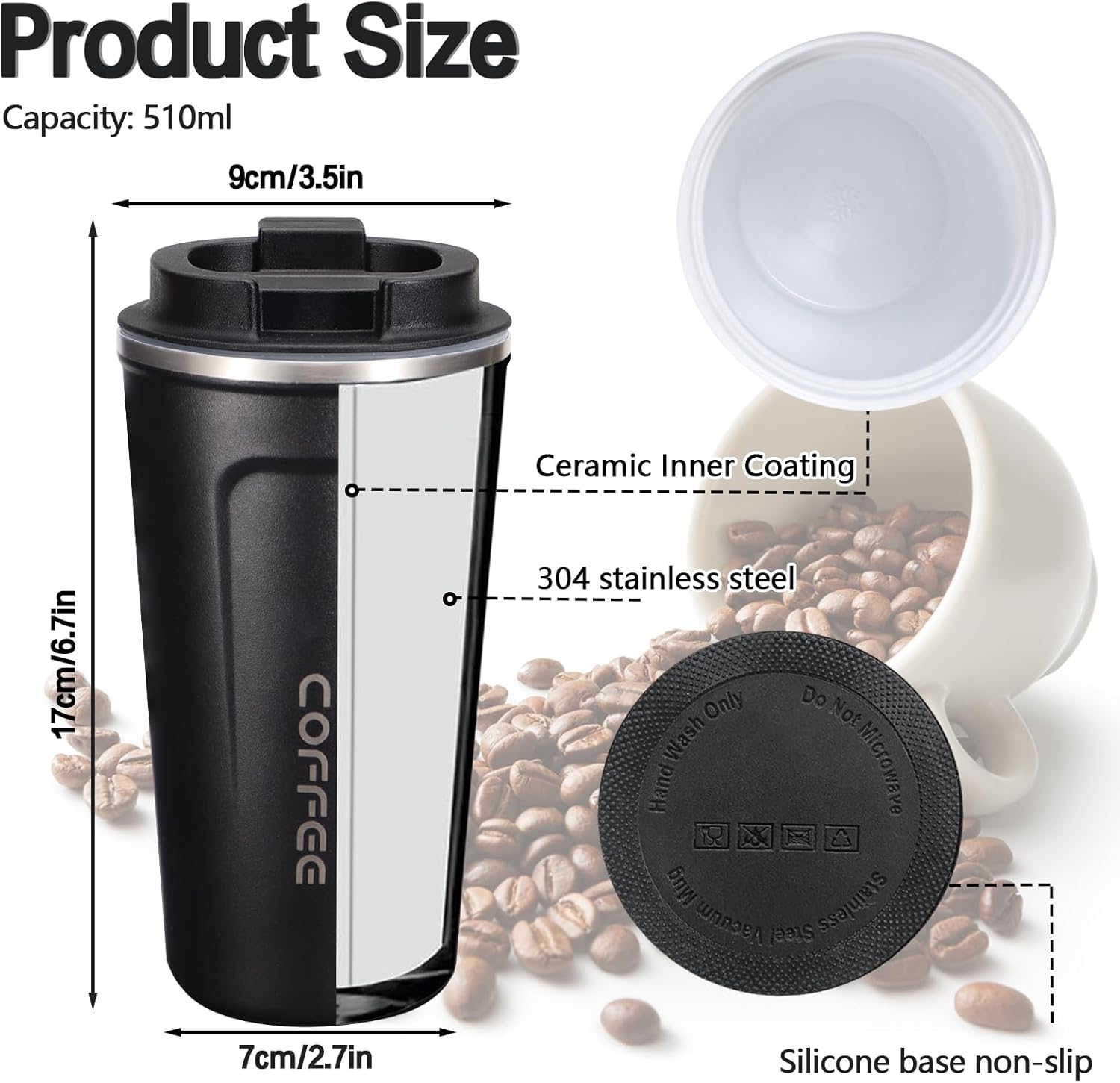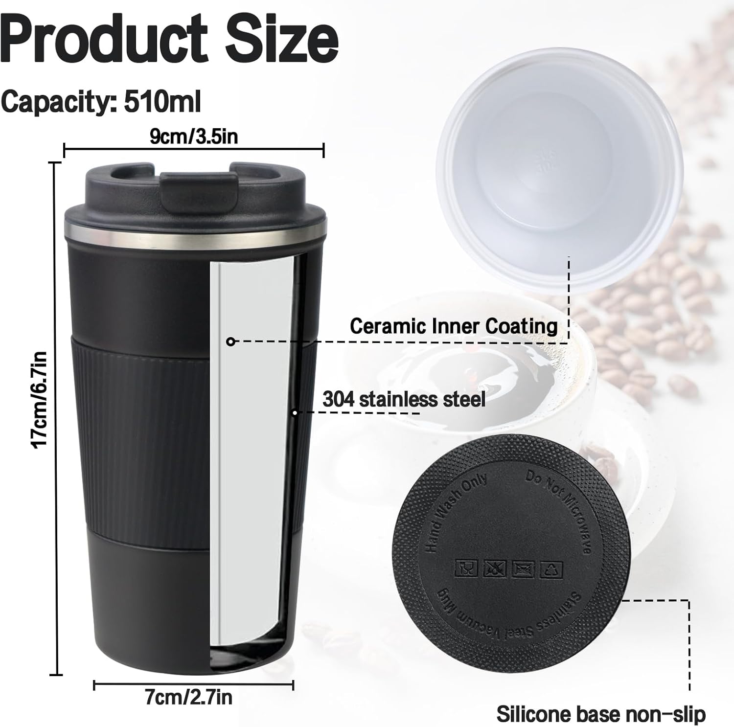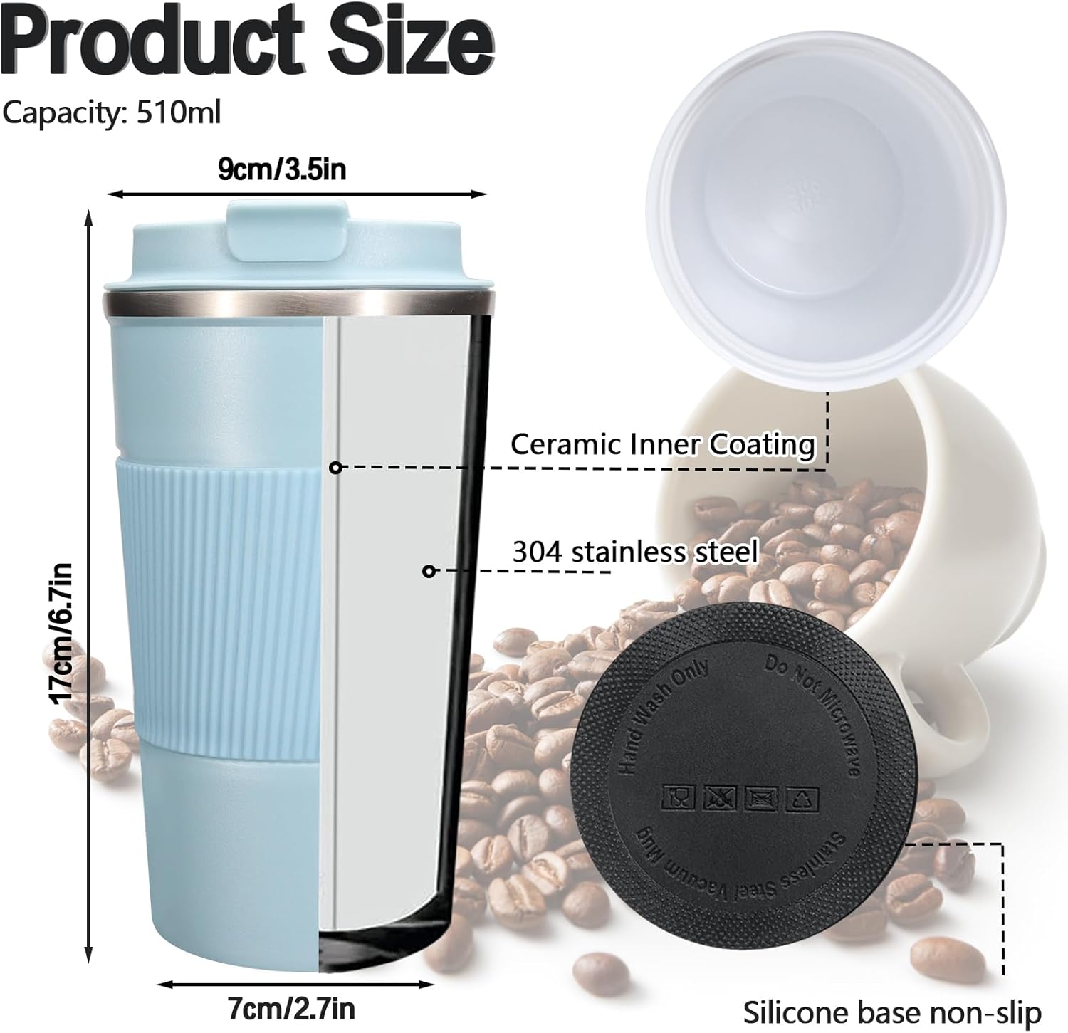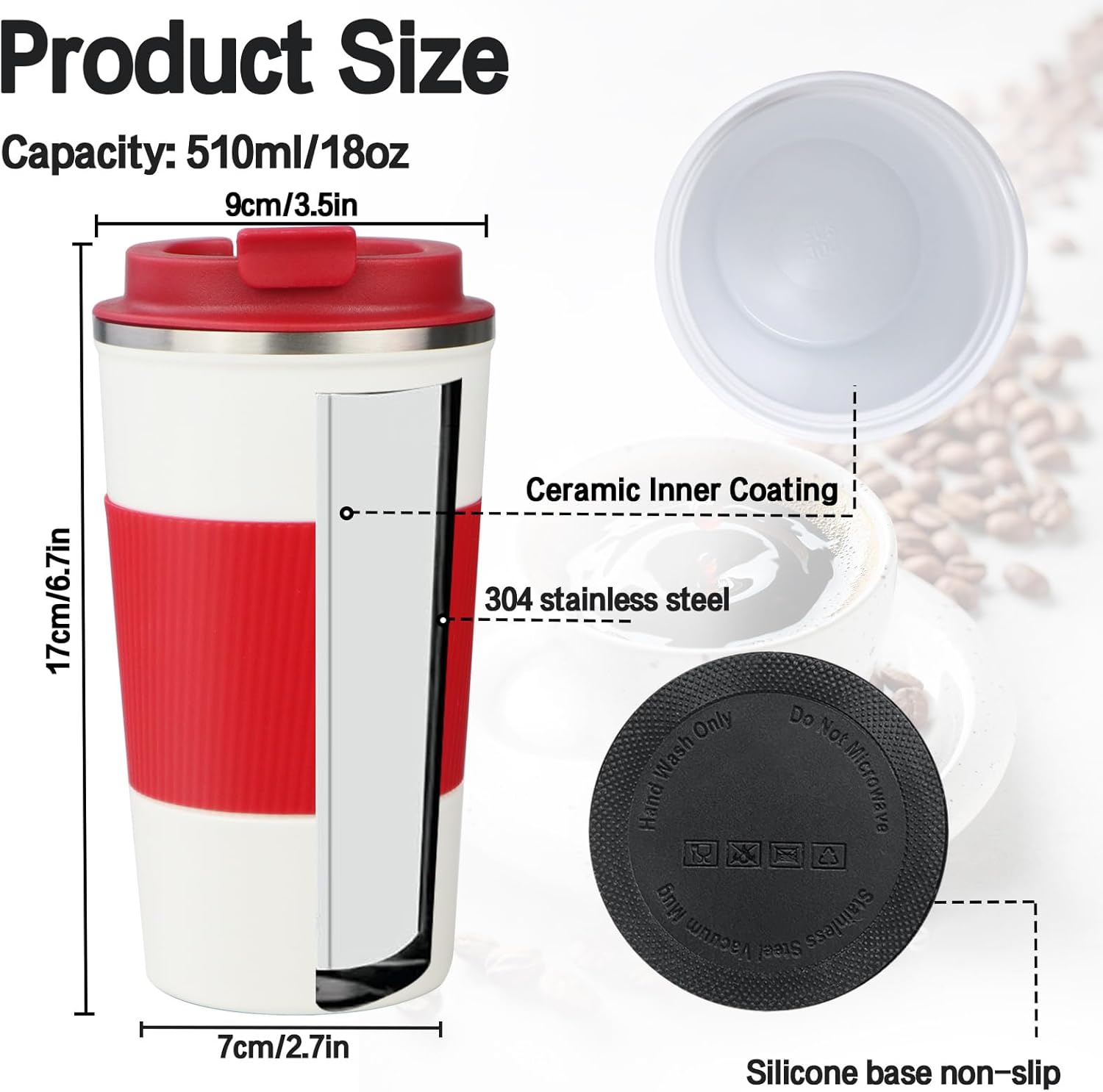 - 【Quality Material】Made with high-quality 304 ceramic liner and insulating silicone material, this coffee mug is resistant, sturdy and easy to clean. The mug cup with resistant insulated walls will keep your drink the temperature you want for hours. (Available many colors)