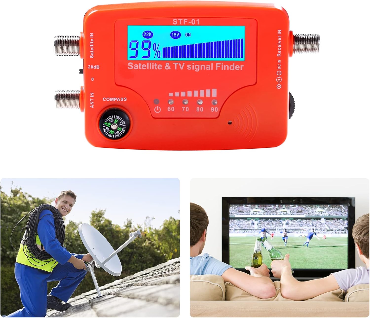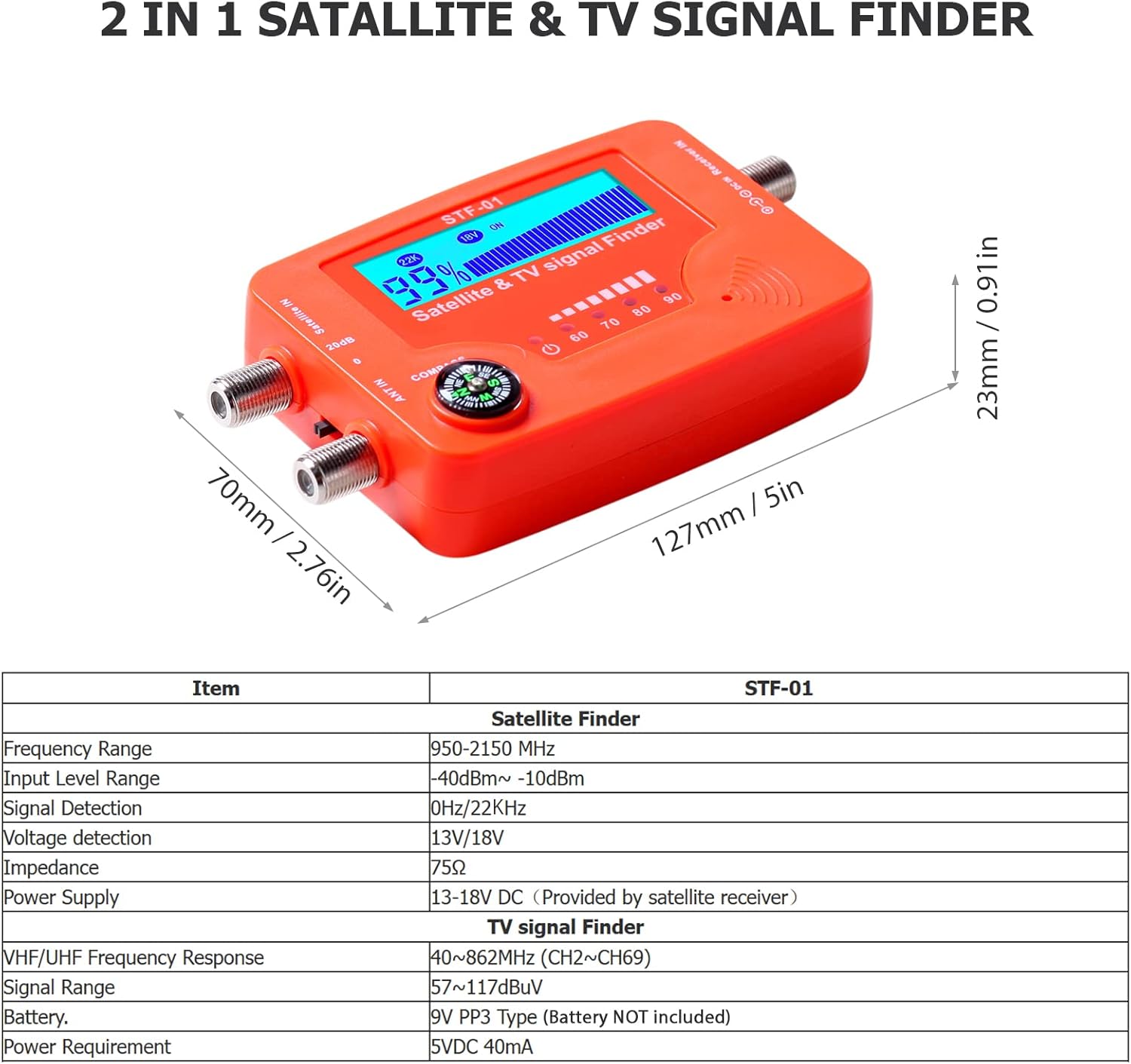 • 2 in 1 satellite and TV signal finder is c or controlled, making it very reliable and accurate. Compact and lightweight, easy to use.