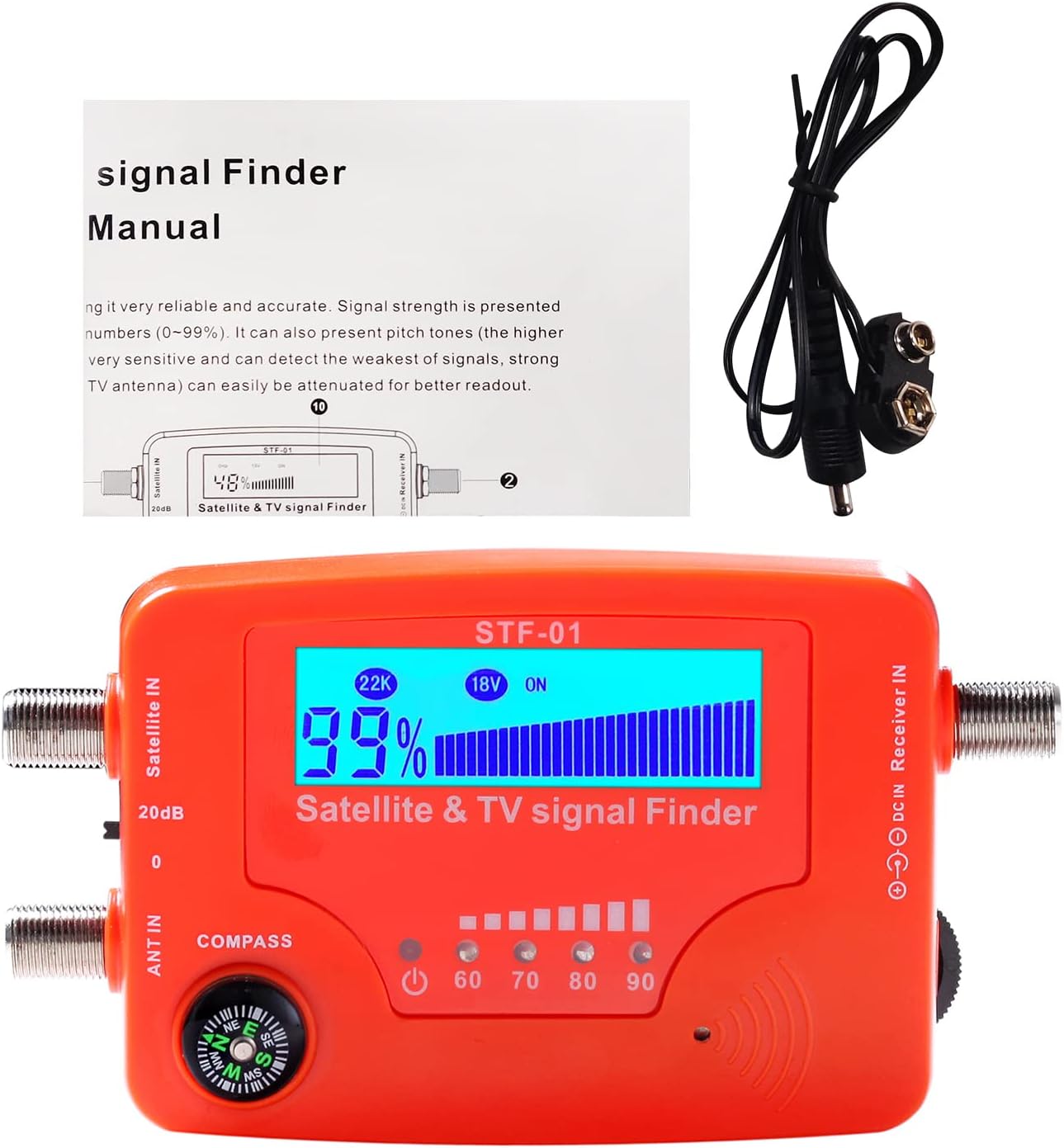 2 in 1 Satellite and TV Signal Finder LCD Digital Satellite Finder Portable TV an Signal Strength Meter Signal Finding Meter with Compass Alarm BuzzerPL17-B0CYBL4WTM