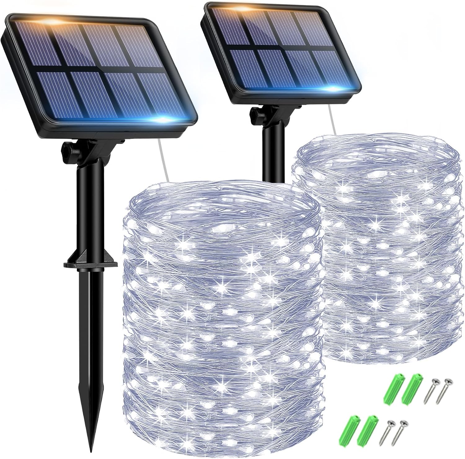 Purilite Select 2-Pack Solar Fairy String Lights – 300 LED, Warm White, 8 Modes, Waterproof