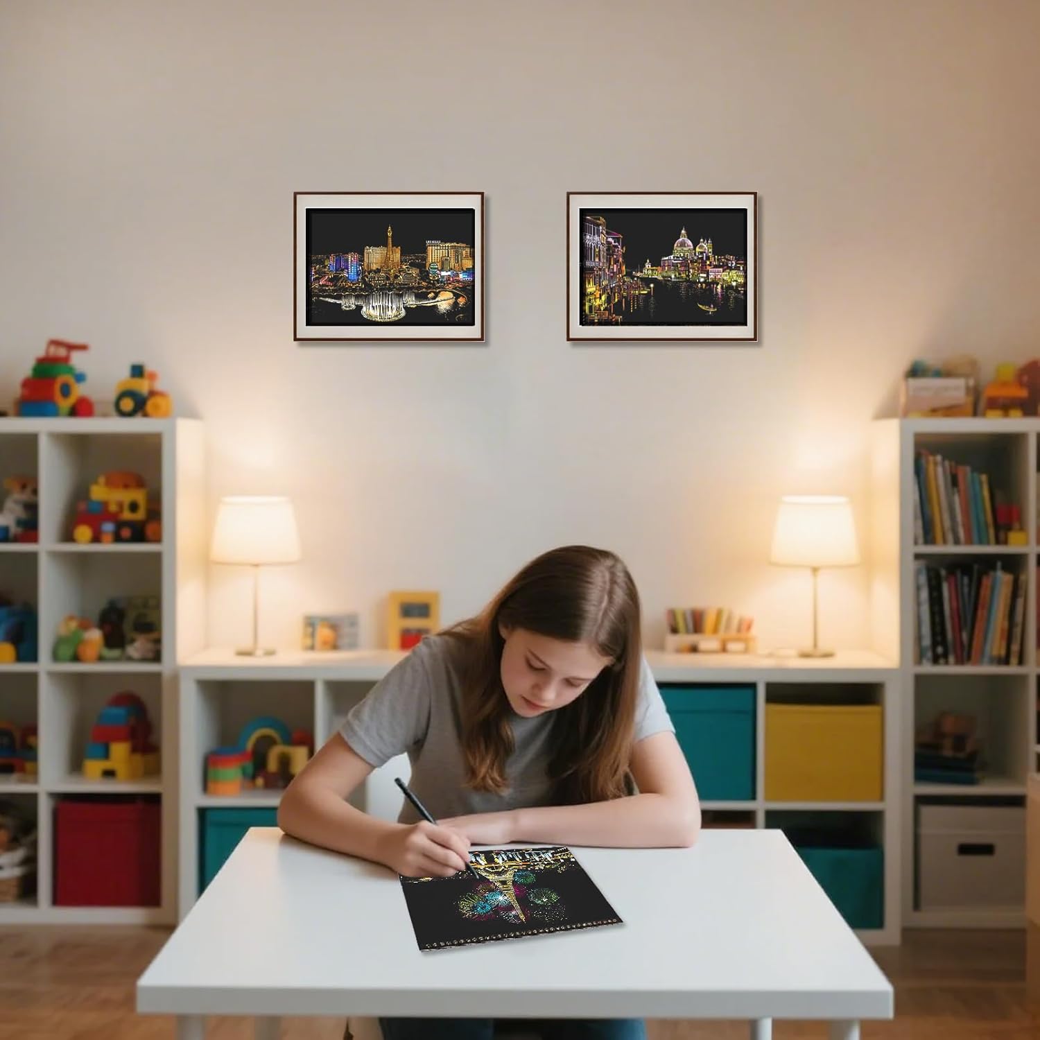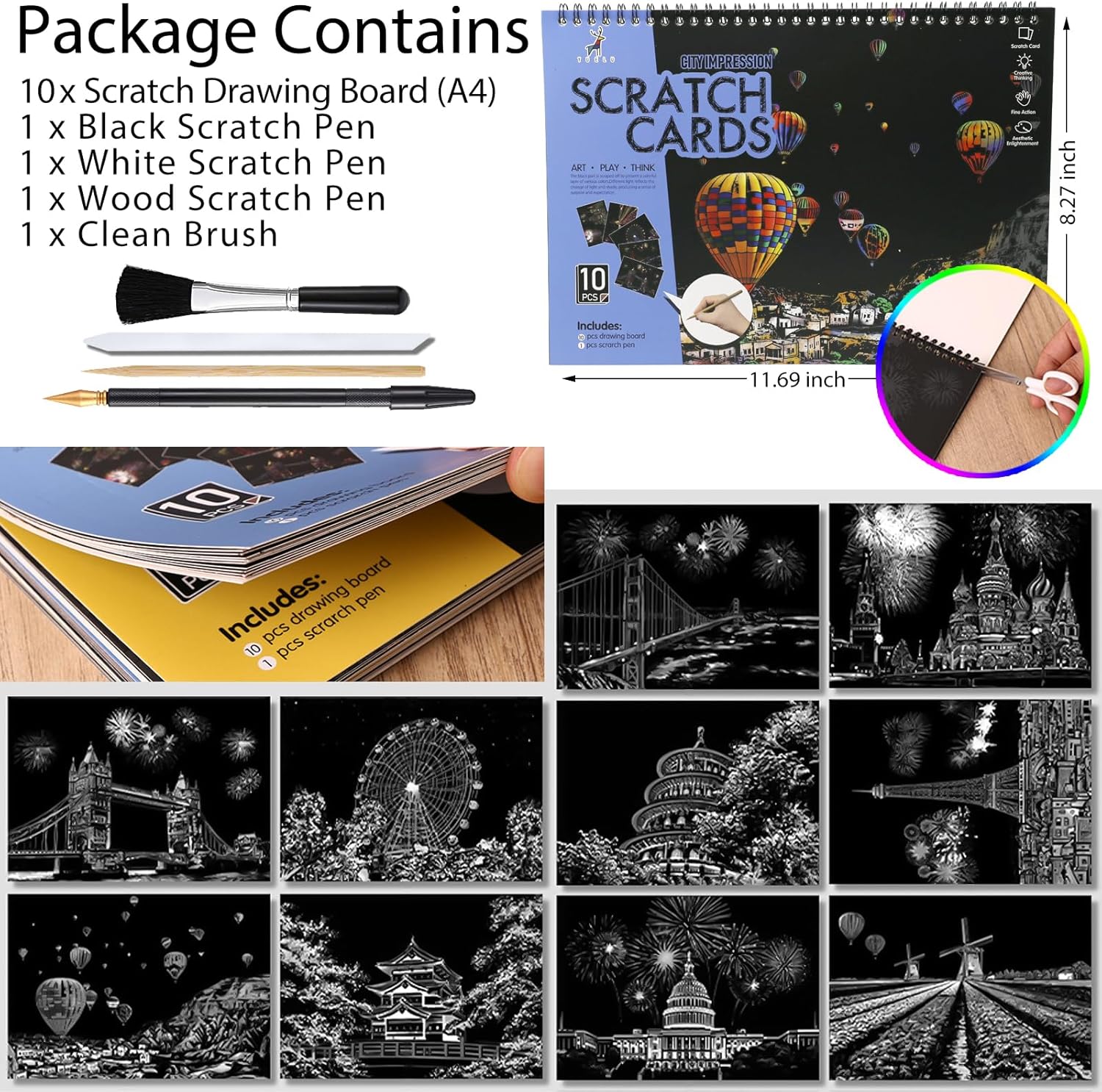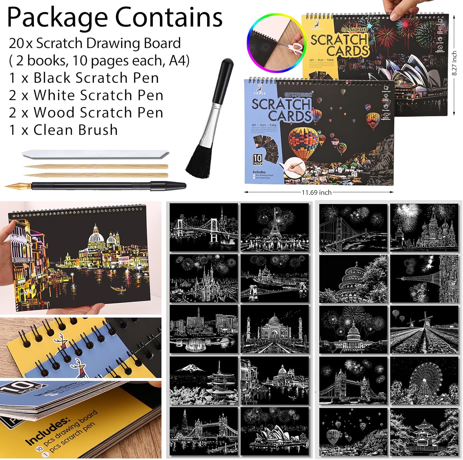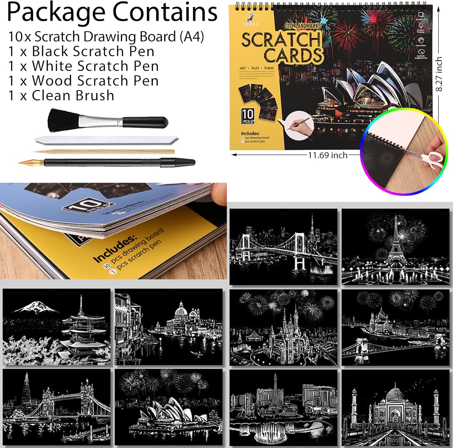 | Product Title | 20 PCS Cityscape Scratch Art Book – Rainbow Landmarks |