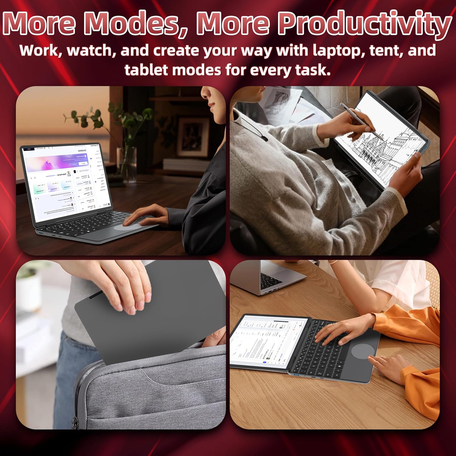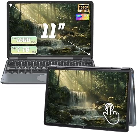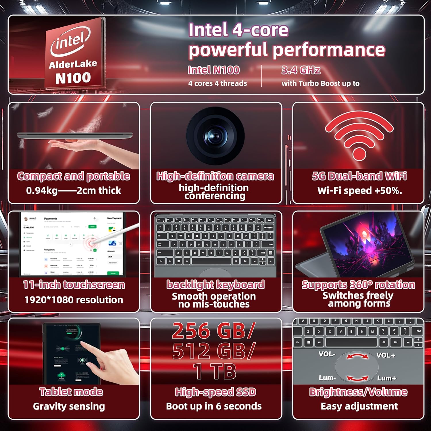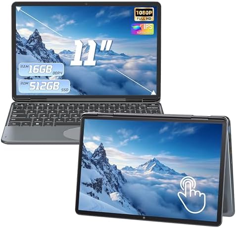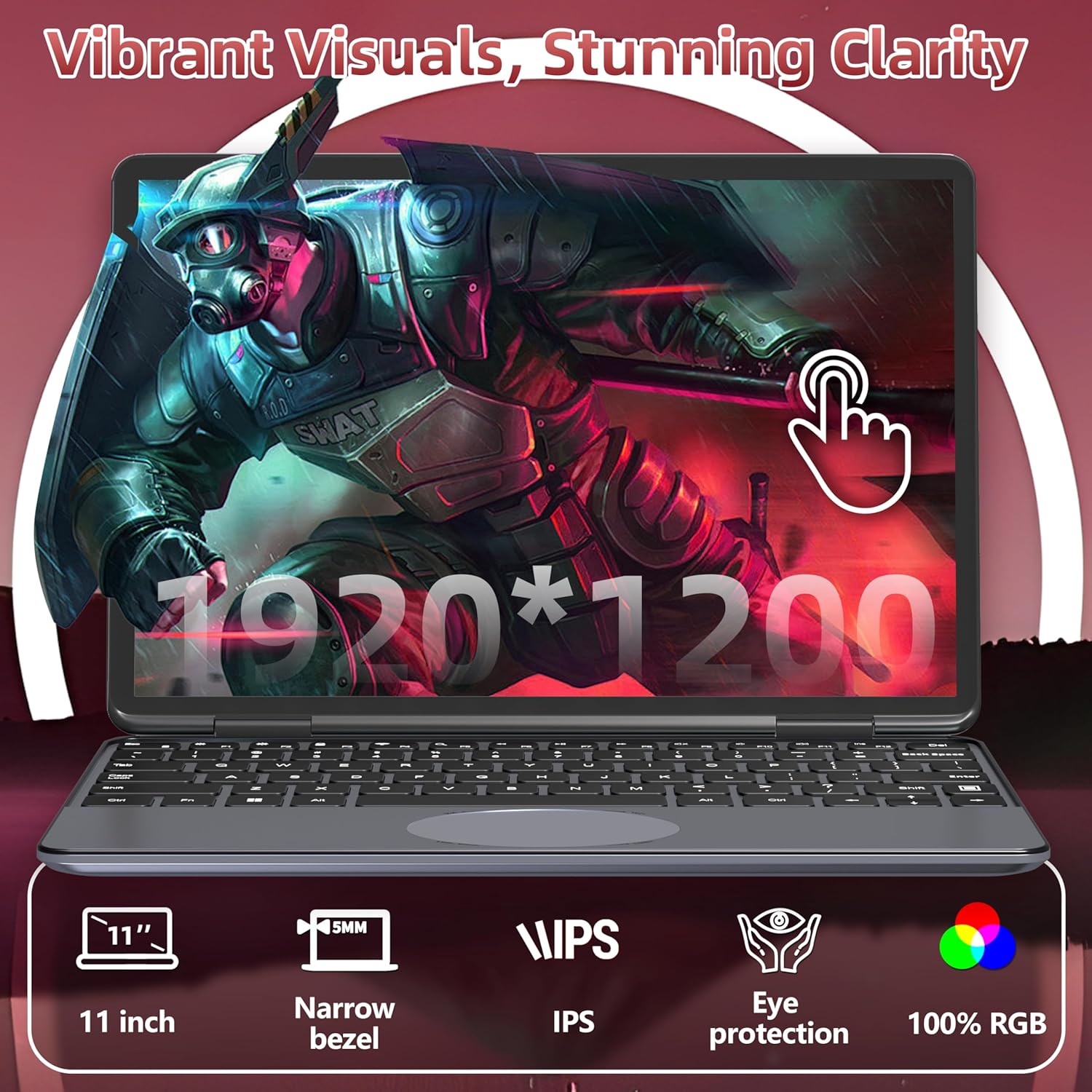 - ✨ [11" 360° Flip Touchscreen Display] Featuring an 11-inch Full HD IPS display with a 1920x1200 resolution and 100% sRGB color gamut, this laptop delivers vibrant, sharp visuals. Its 360° flip hinge enables versatile usage in laptop, tent, stand, and tablet modes, adapting to any work or entertainment environment.