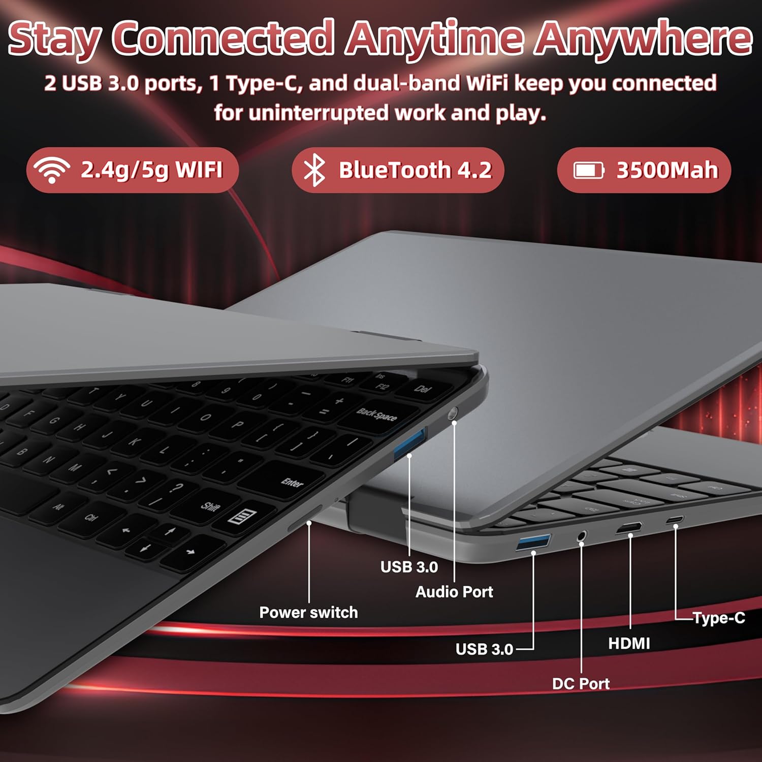 - 🔌 [Comprehensive Connectivity] Stay connected with dual USB 3.0 ports, a USB Type-C port, and a headphone jack. With dual-band WiFi (2.4G/5G) and Bluetooth, this device offers reliable wireless connections, ensuring seamless communication and data transfer on the go.